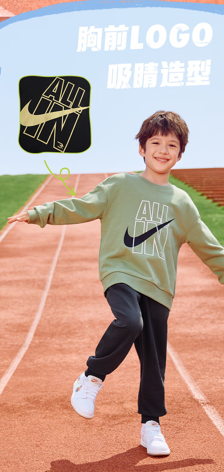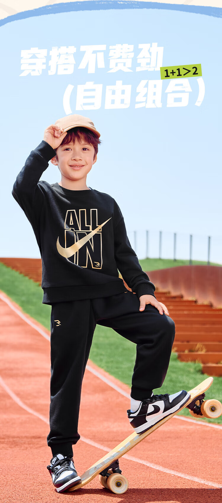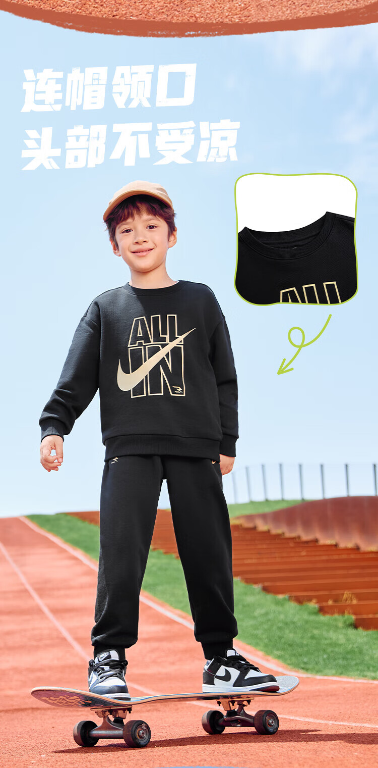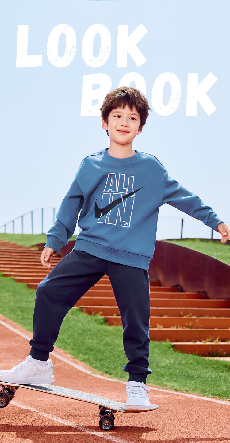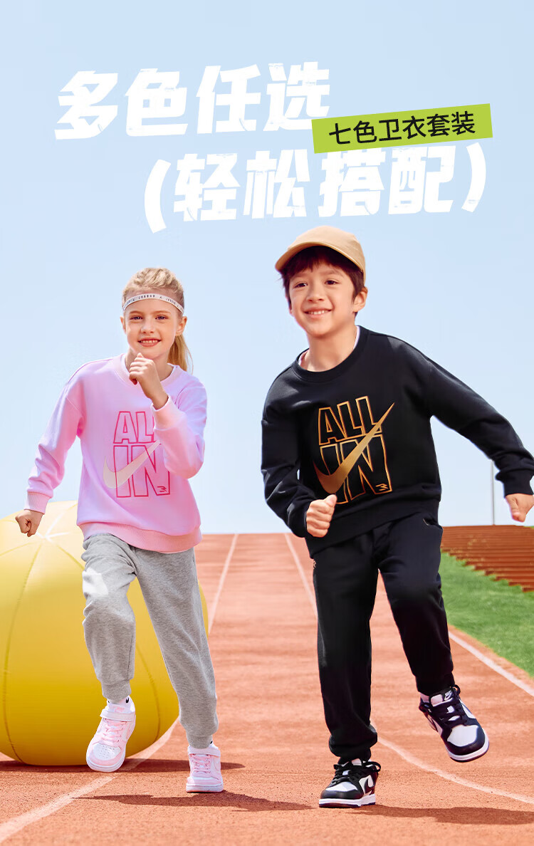 NIKE耐克男童套装加绒秋冬 2025新款女童运动两件套儿童加厚卫衣卫裤 蓝2201+黑【秋冬加绒款】 【高克重】 150 /M 【建议身高140-152cm】