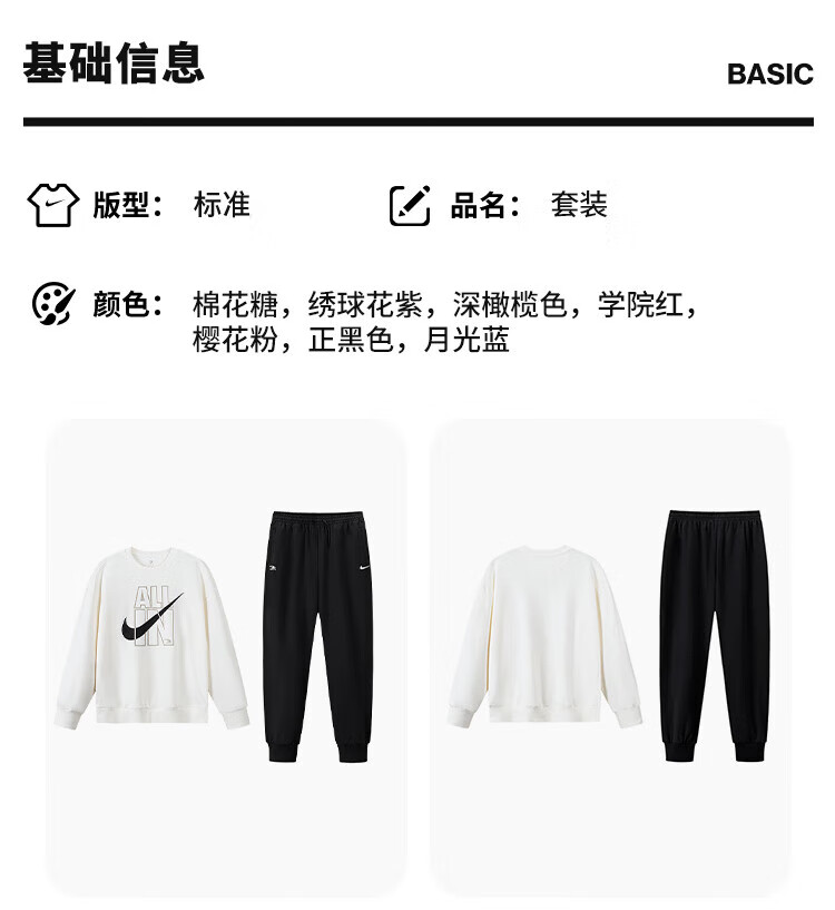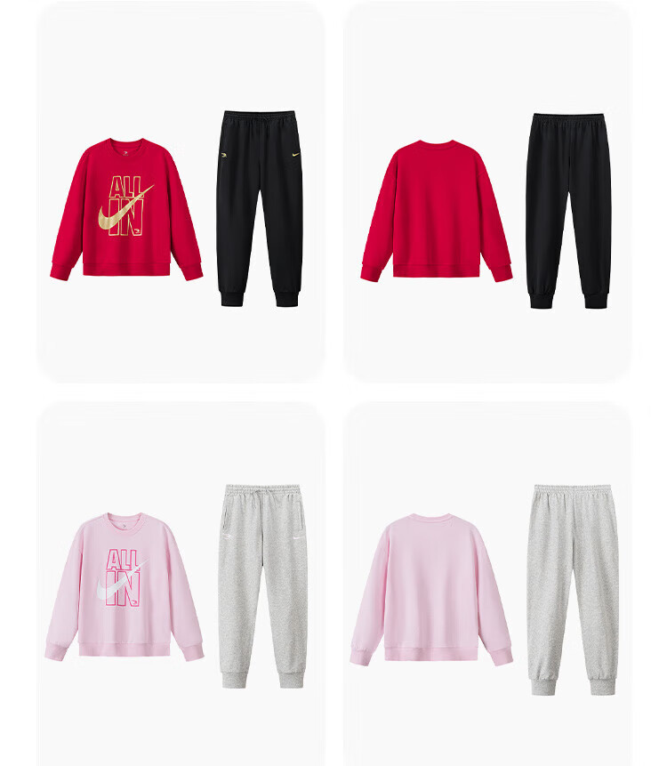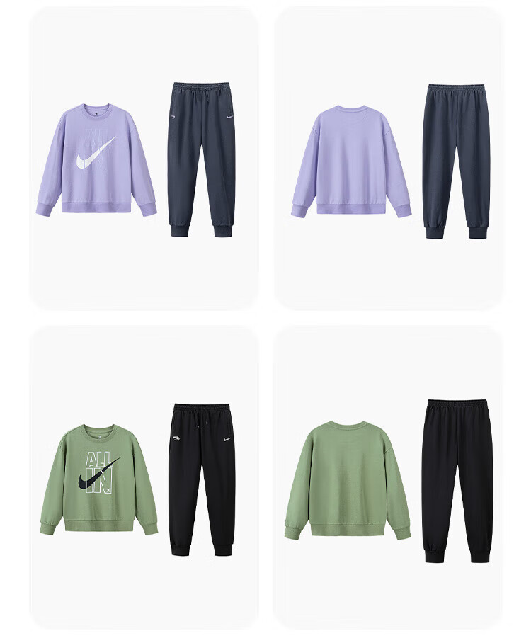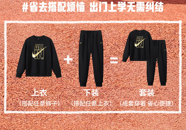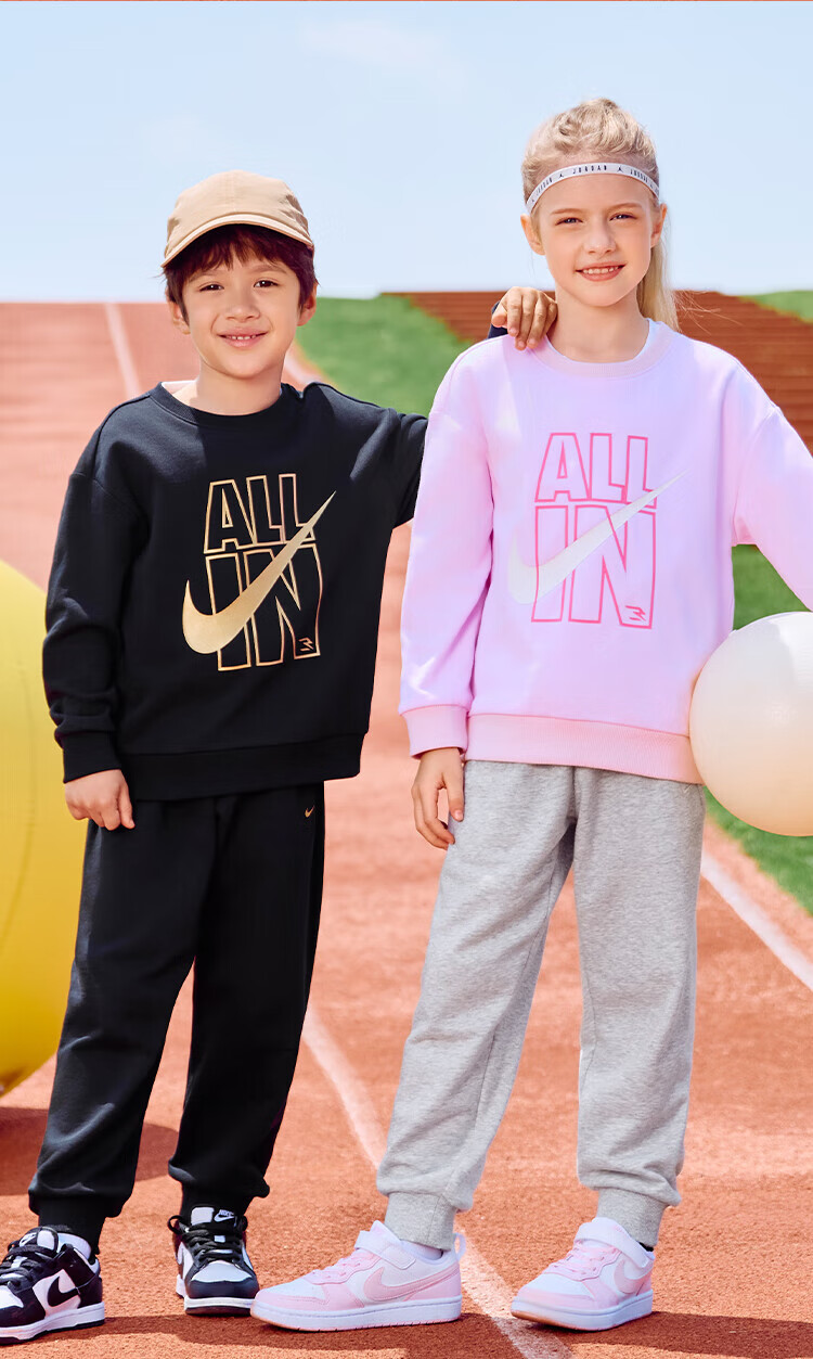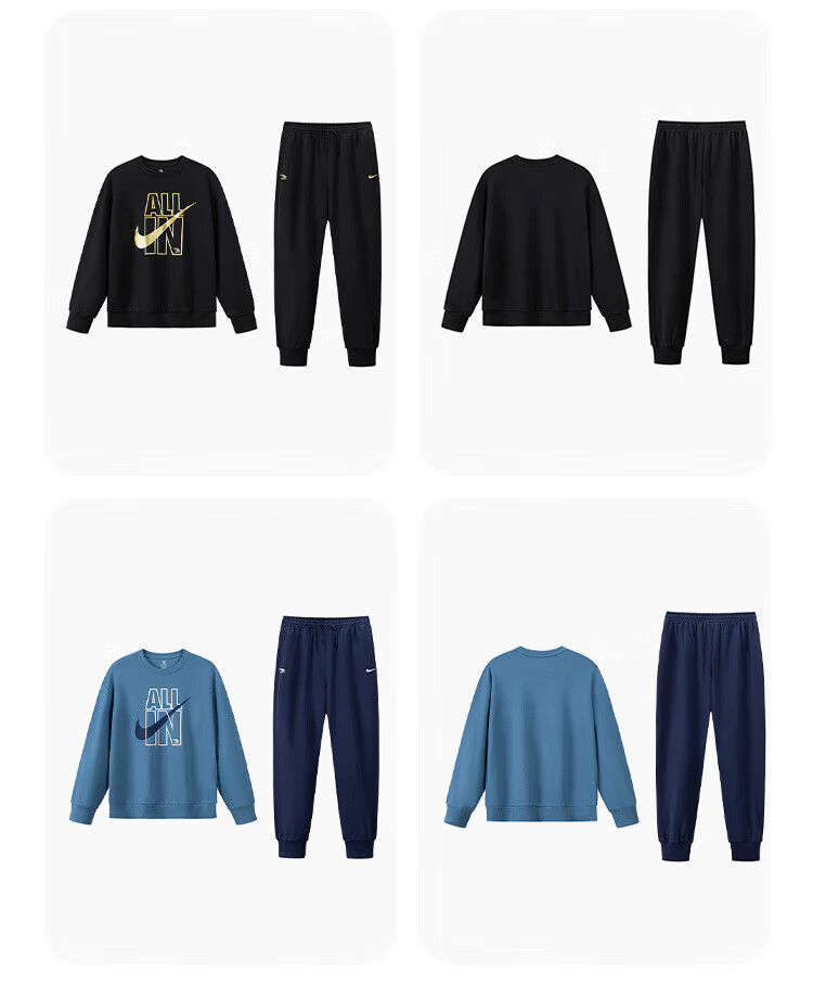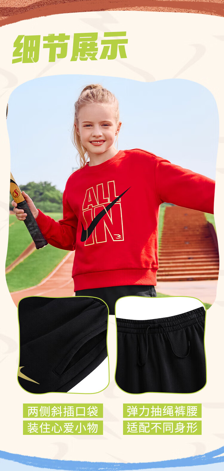 NIKE耐克男童套装加绒秋冬 2025新款女童运动两件套儿童加厚卫衣卫裤 蓝2201+黑【秋冬加绒款】 【高克重】 150 /M 【建议身高140-152cm】