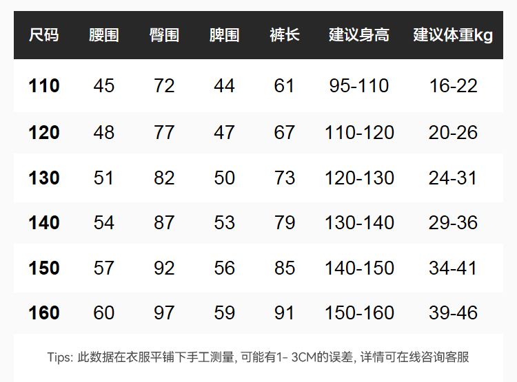 China (cm) 160-165/84-86 165-170 / 88-90 167-172 / 92-96 168-173 / 98-102 170-176 / 106-110