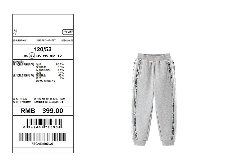 MiniPeace太平鸟童装冬新针织长裤FBGHE4E97 静谧灰 130