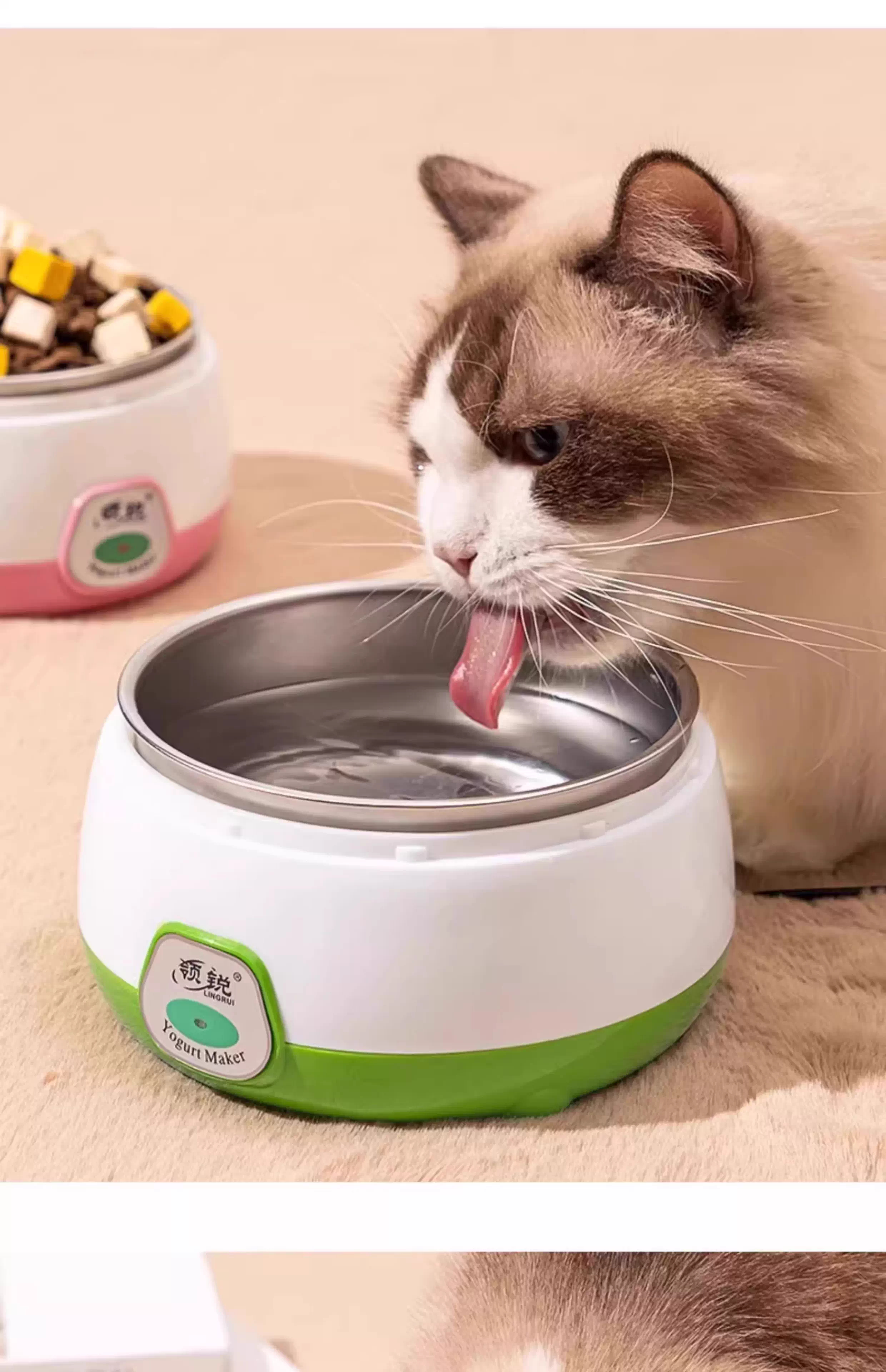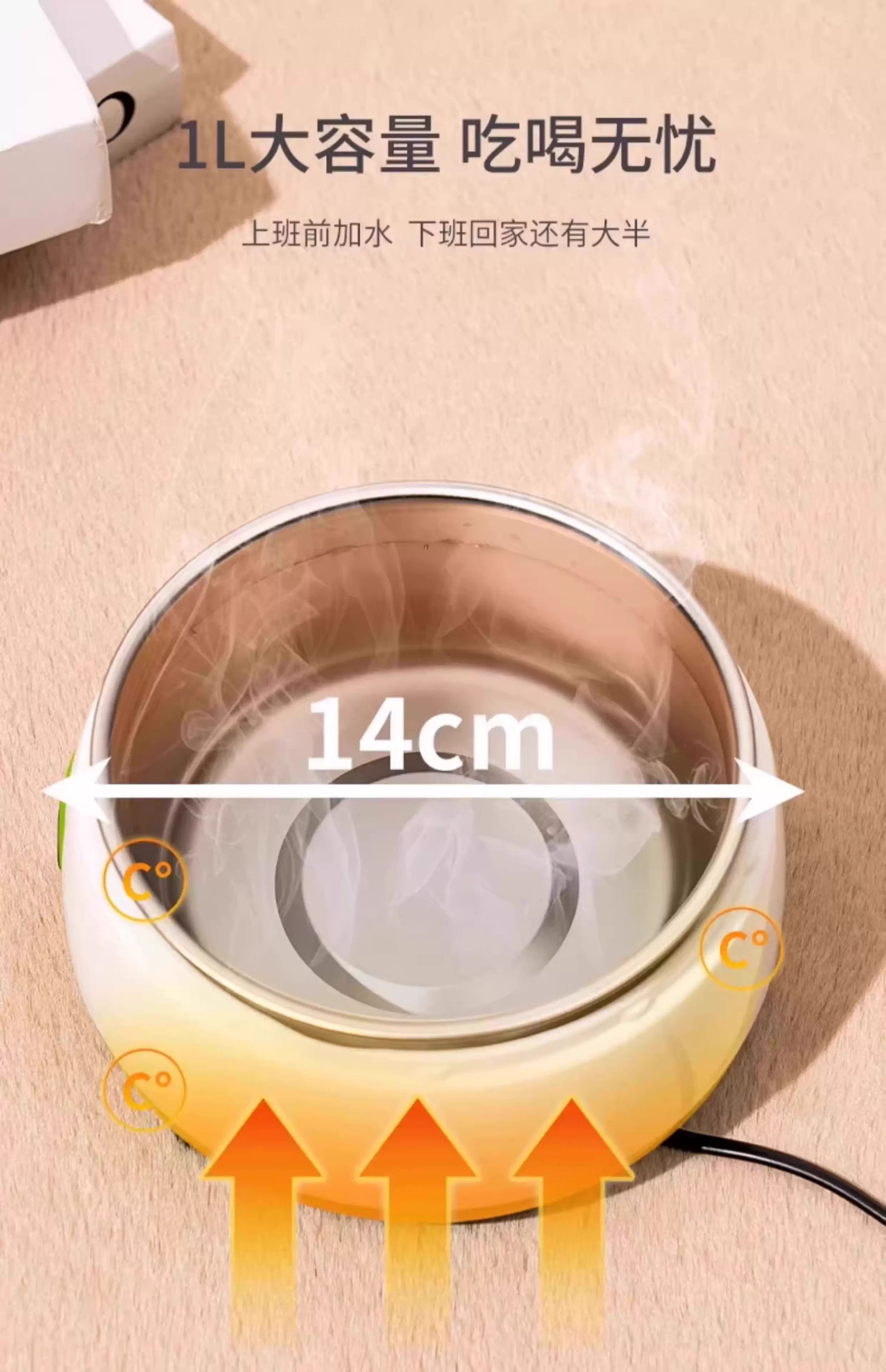 Tanbeiman Cat Constant Temperature Water Bowl Yogurt Machine Cat Drinking Water Constant Temperature Cat Bowl Heated Warm Water Bowl Drinking Machine Dog Constant Temperature Cat Water Bowl丨Fresh Green 1L Large Capacity丨Stainless Steel Liner丨Safe and Low Power Consumption