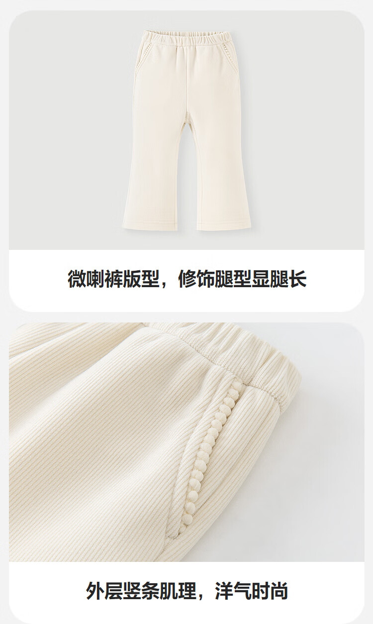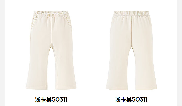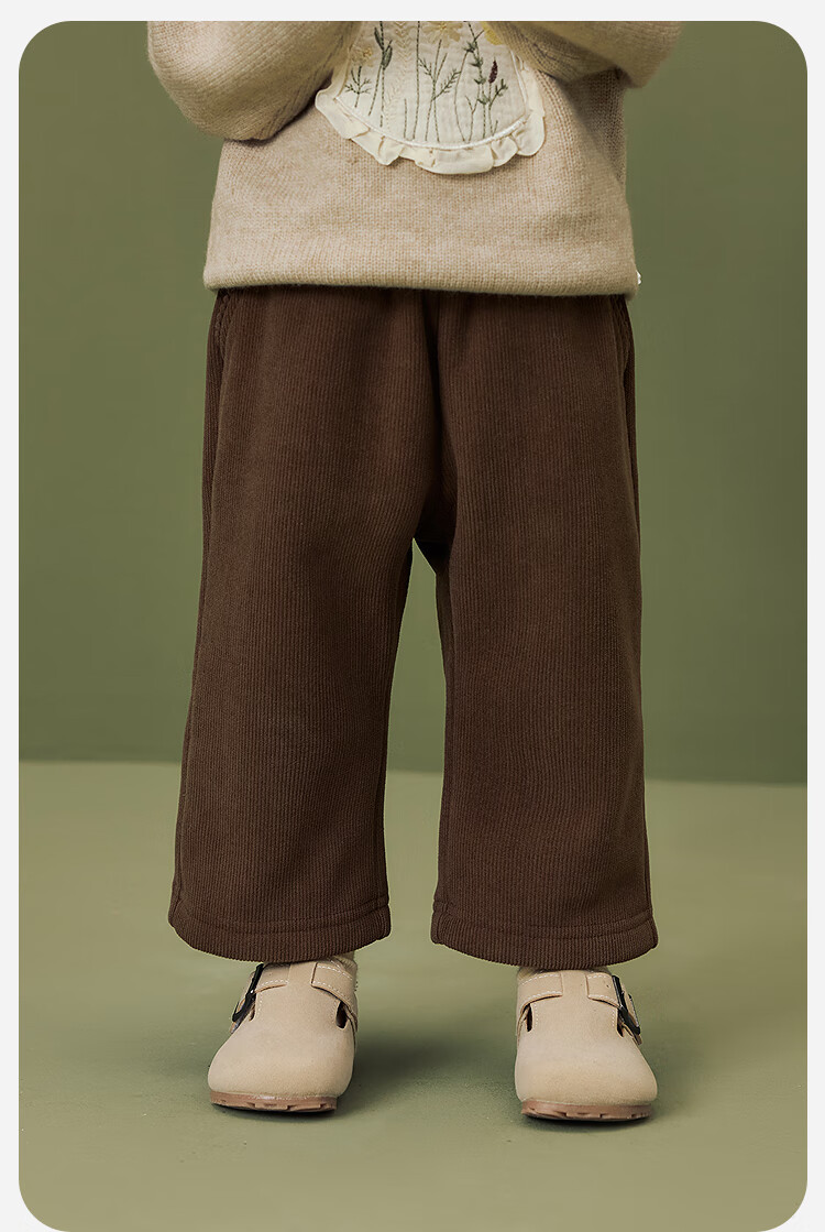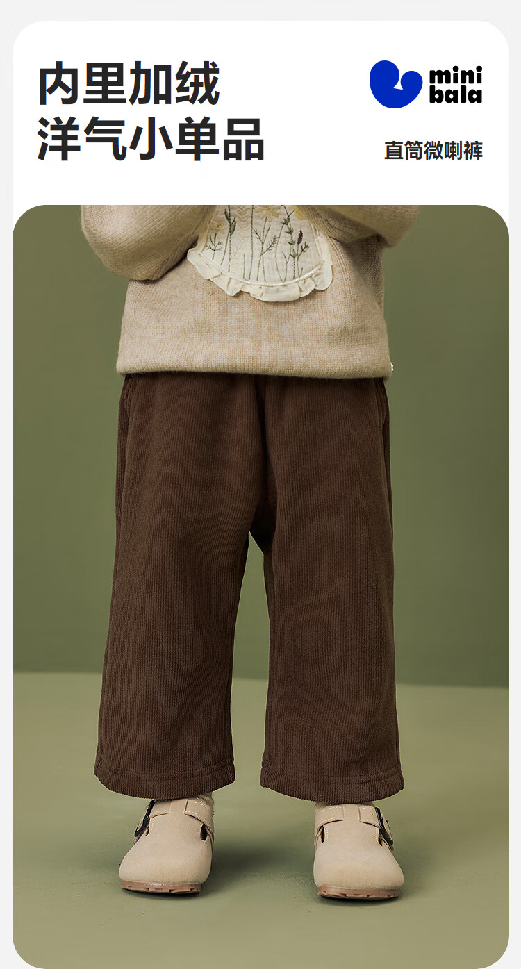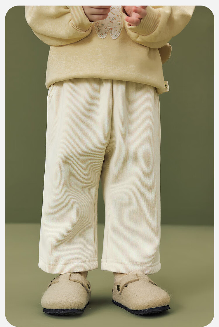 Minibala baby girl's trousers, skin-friendly and warm, velvet lined, straight-cut trousers, 2025 winter new style, light khaki 50311 100