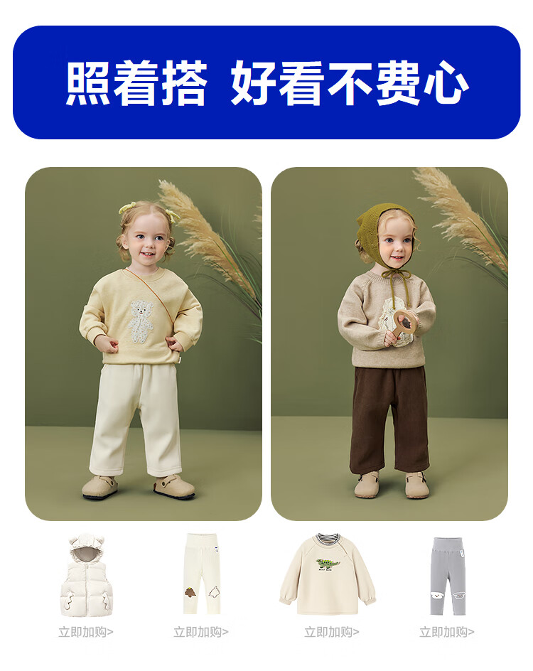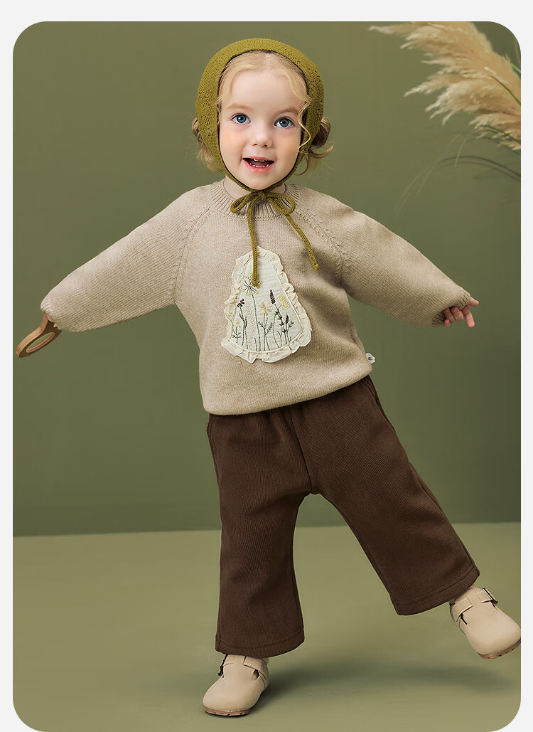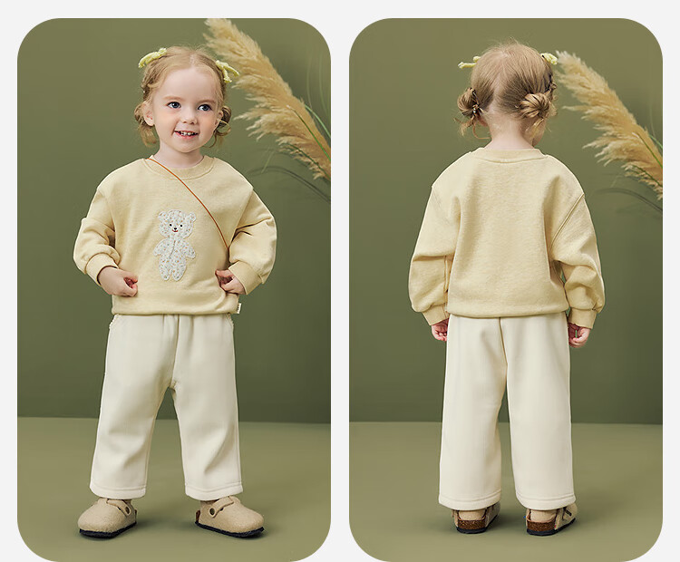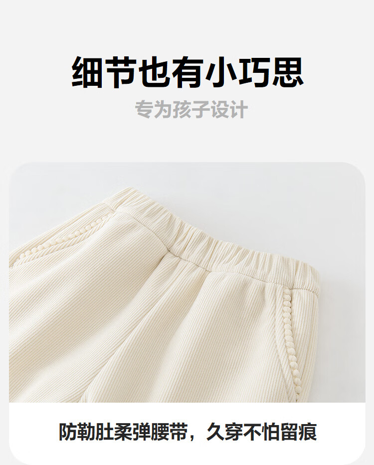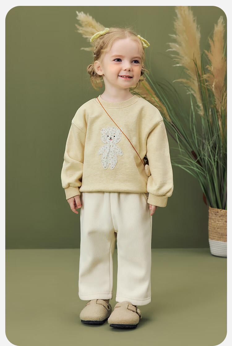 Minibala baby girl's trousers, skin-friendly and warm, velvet lined, straight-cut trousers, 2025 winter new style, light khaki 50311 100