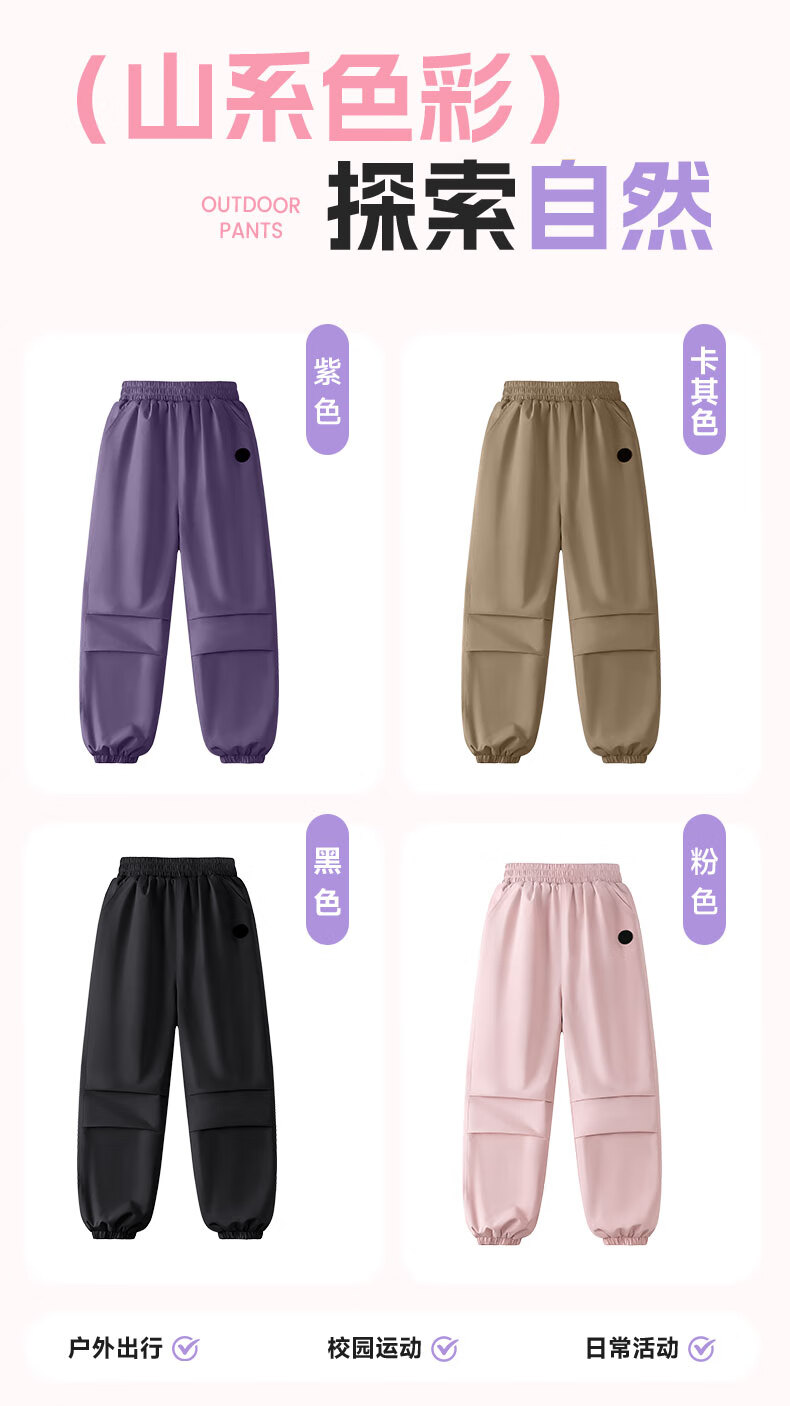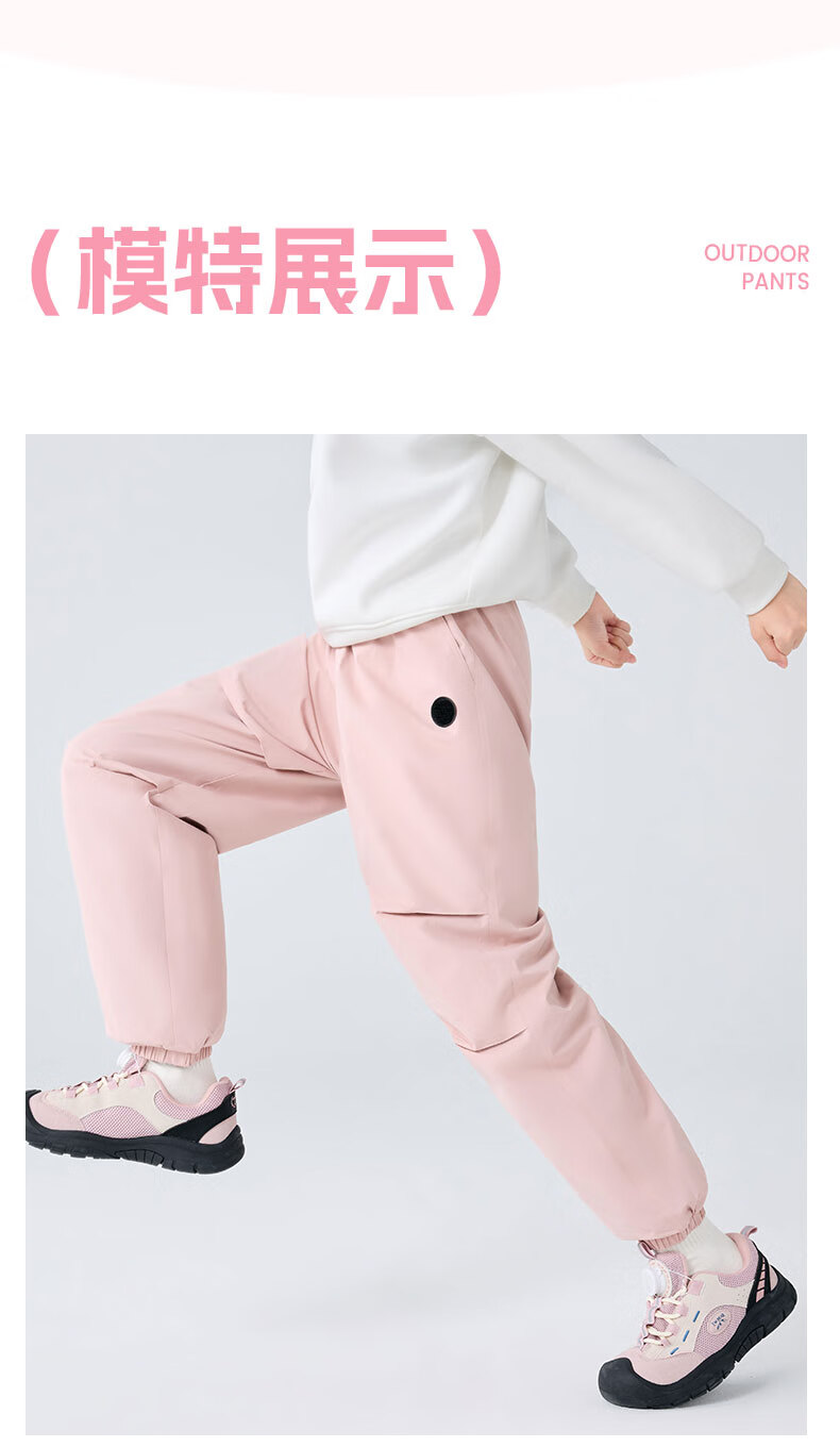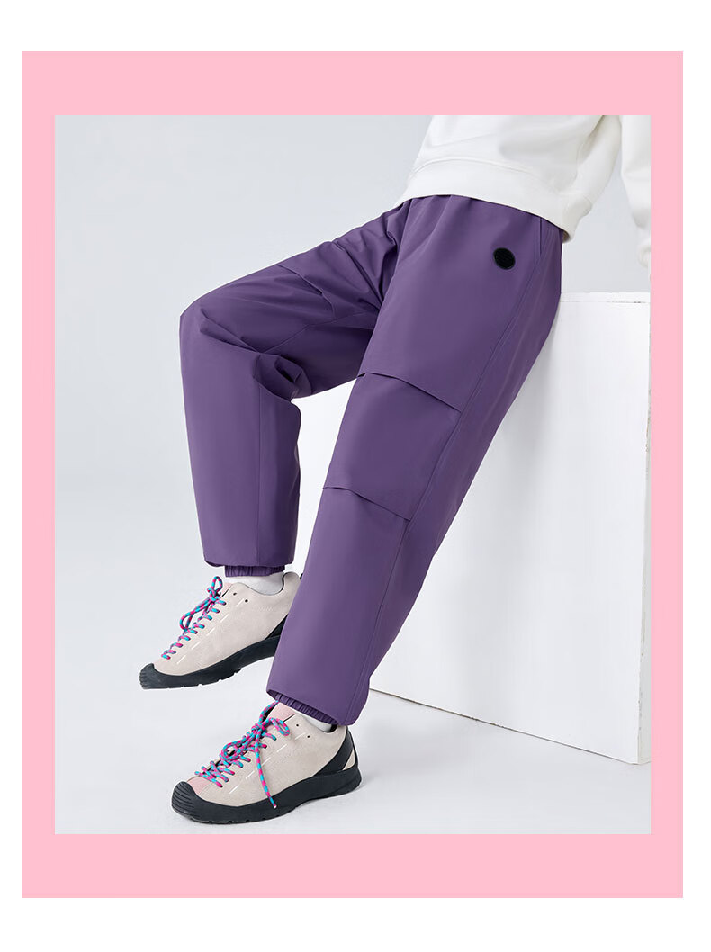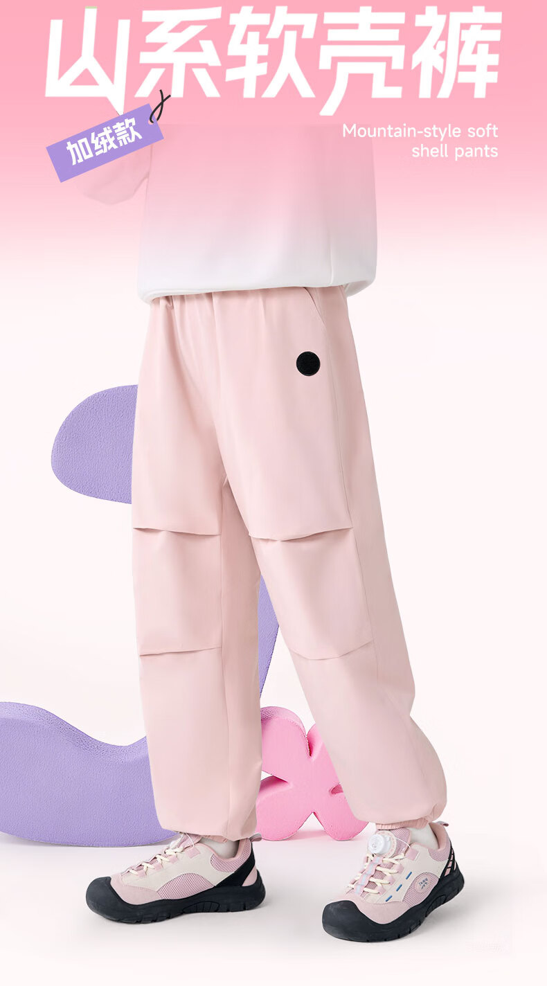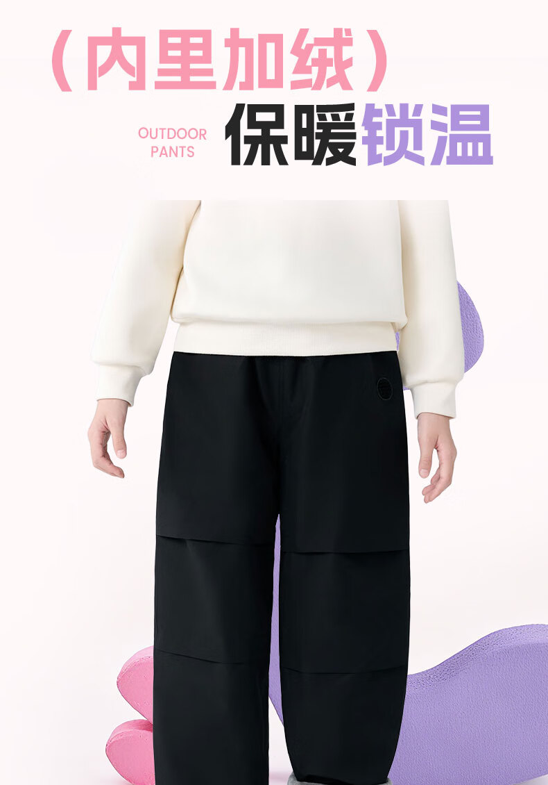 班尼路童装女童加绒裤子儿童工装裤秋冬户外一体绒休闲裤2025新款长裤 紫 140