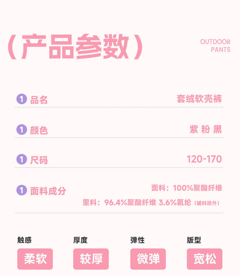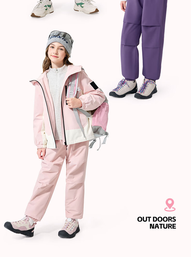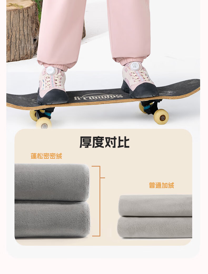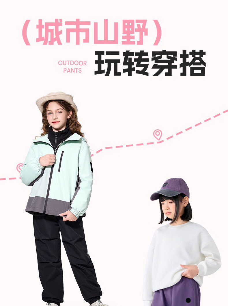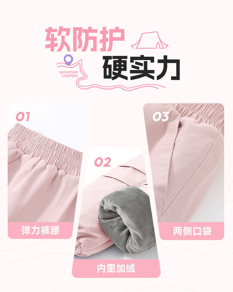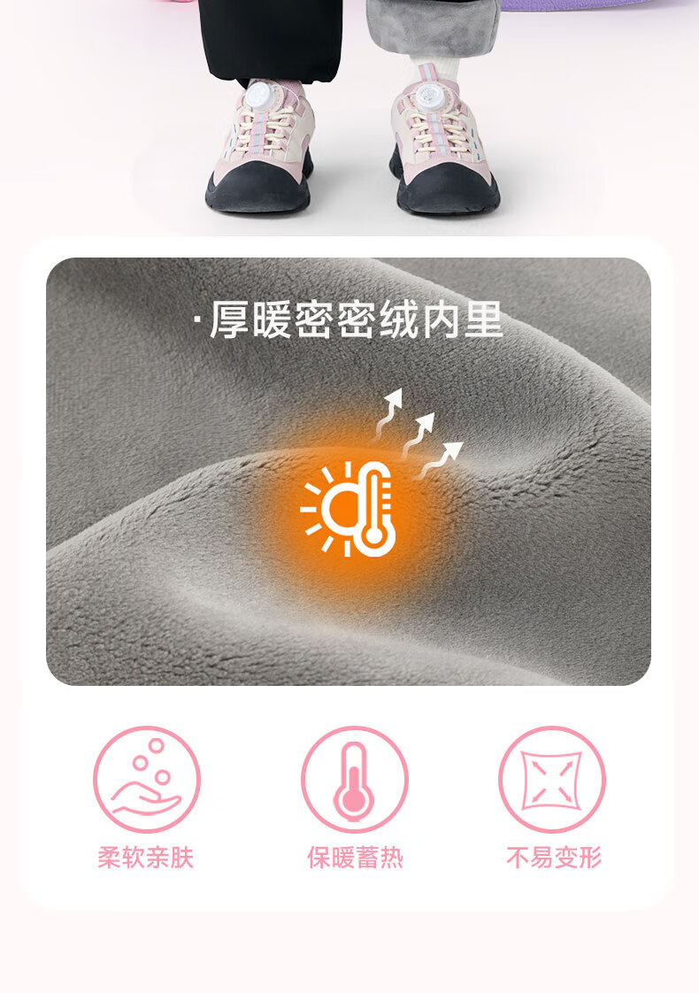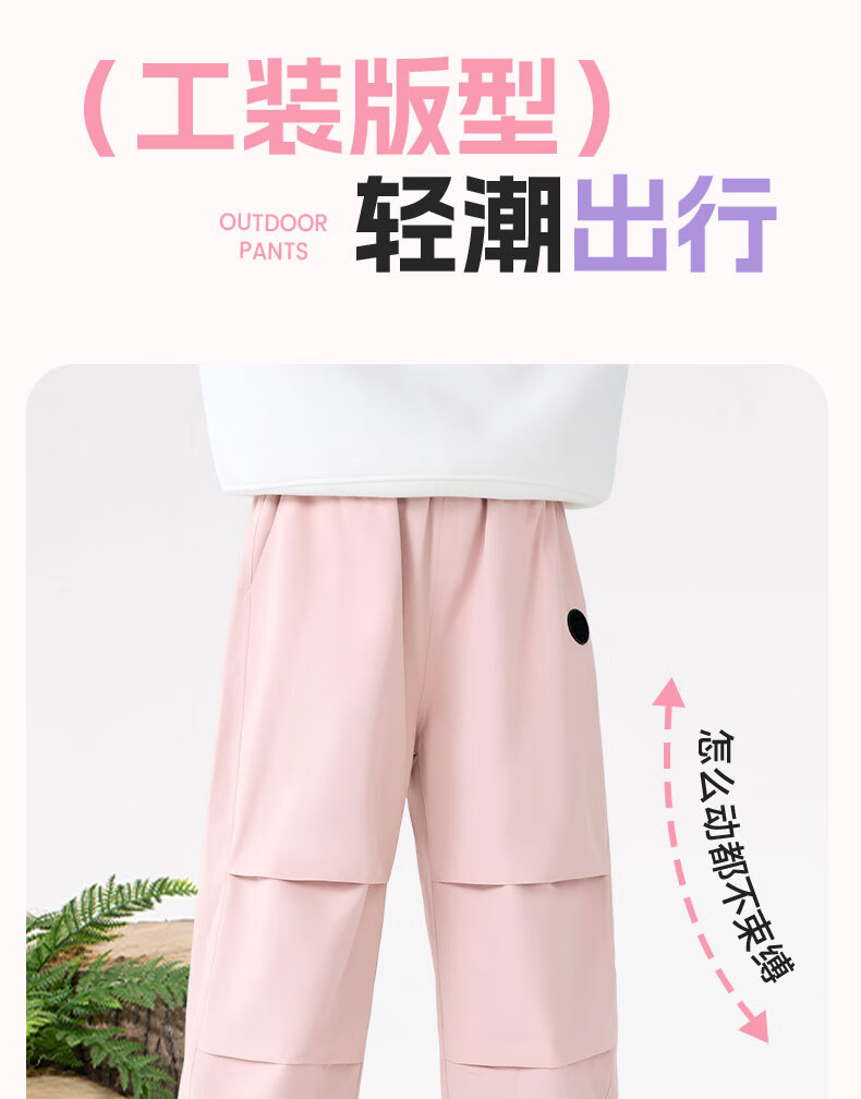 班尼路童装女童加绒裤子儿童工装裤秋冬户外一体绒休闲裤2025新款长裤 紫 140