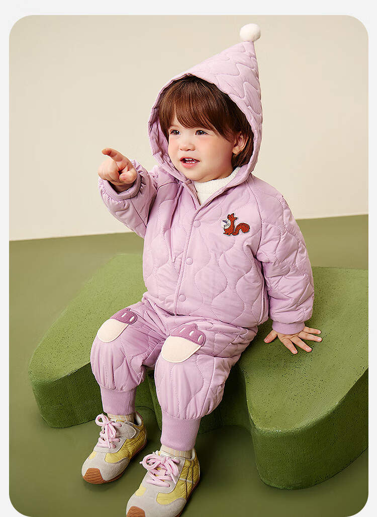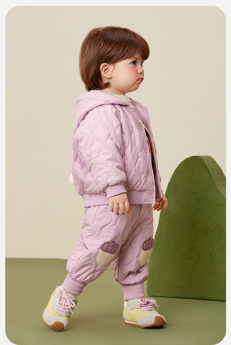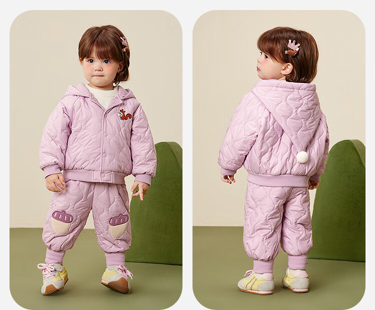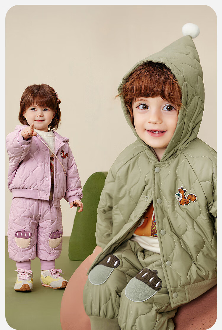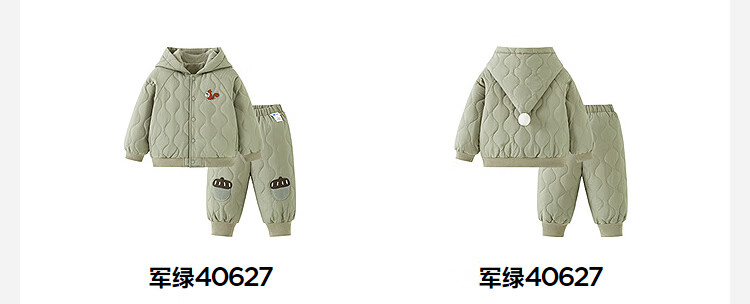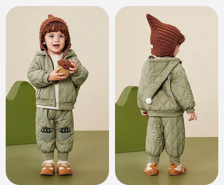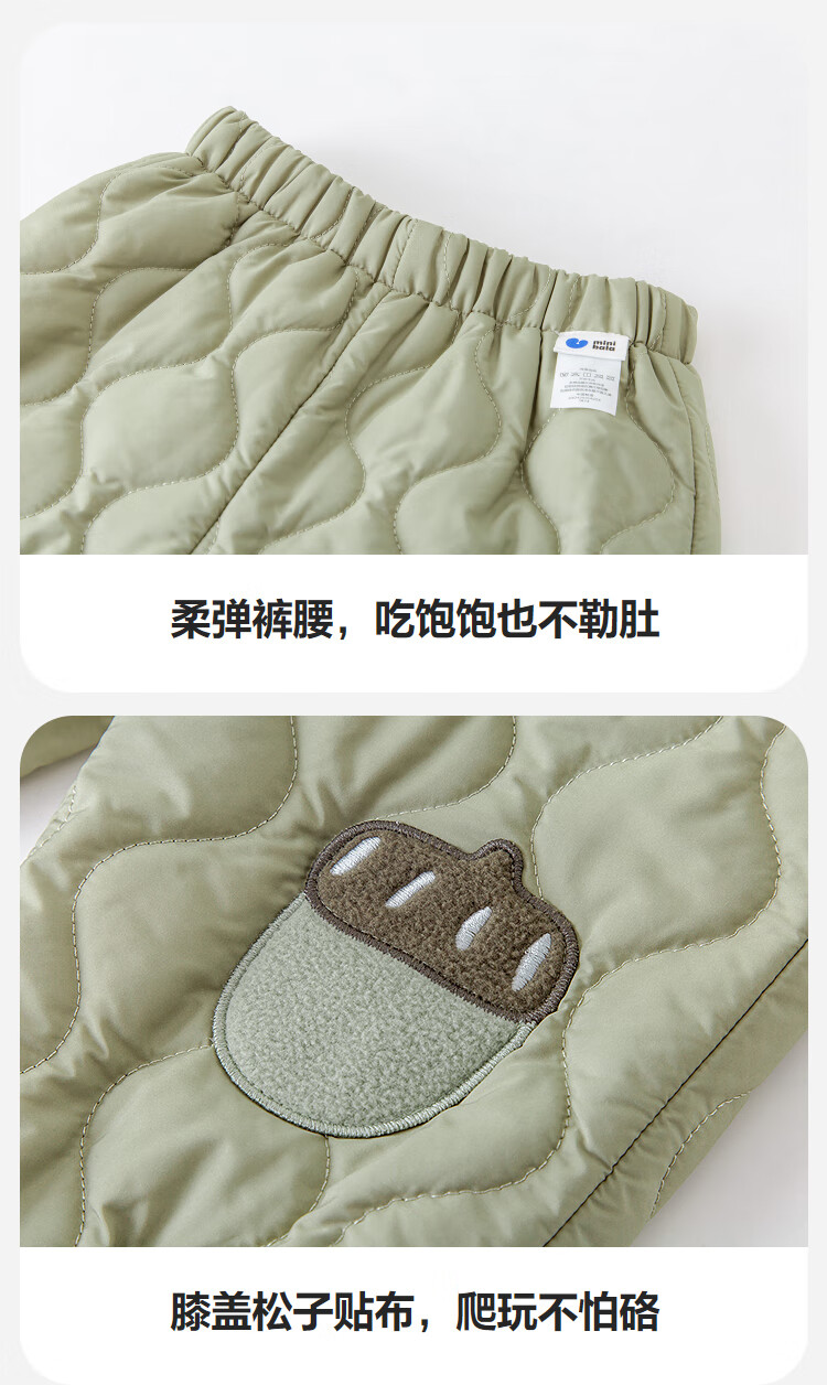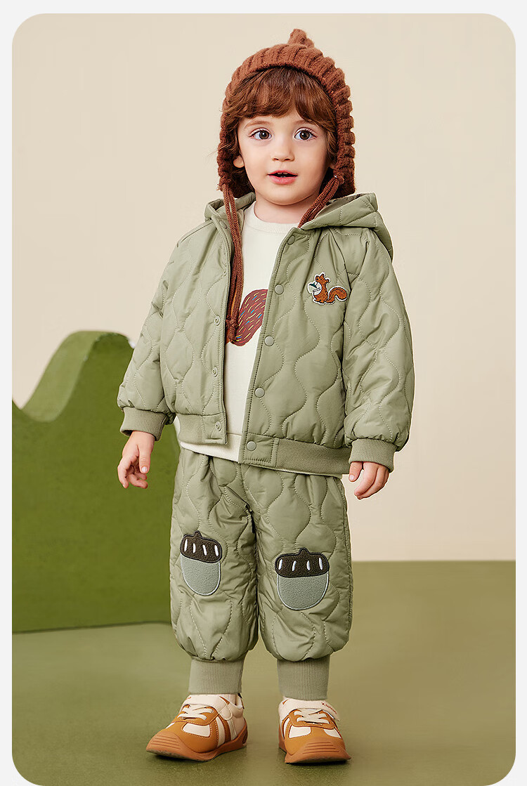 迷你巴拉(minibala)男女童长袖棉服套装儿童长裤可爱外套2025冬新品 军绿40627 80