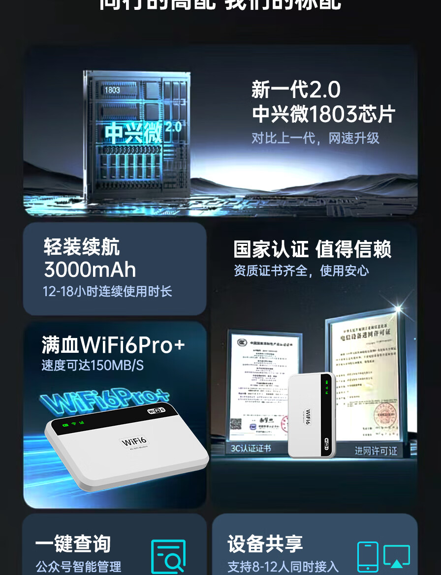 Feijing wifi portátil de tres redes de alta velocidad5g2025 nuevo tráfico ilimitado móvil inalámbrico wif7 red de banda ancha acceso a Internet portátil enrutador de tres redes punto de acceso para automóvil recomendación insignia 9.9 / 1500G / WIFI6 dieciséis núcleos