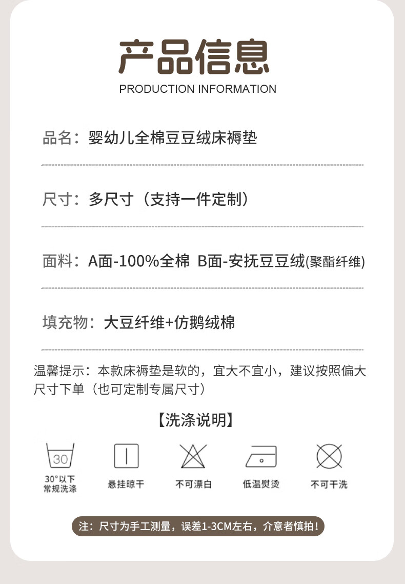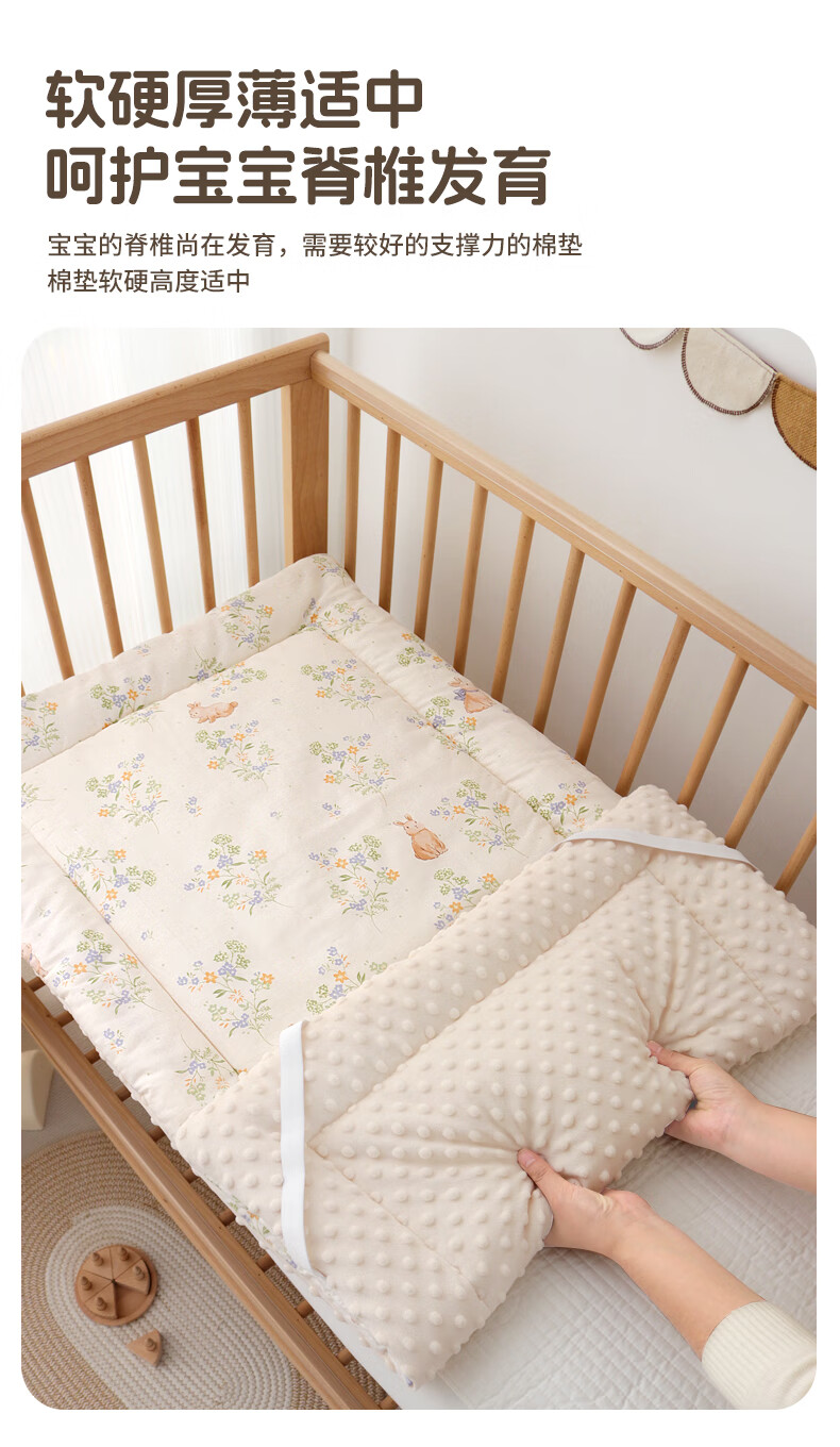 婴儿床垫a类母婴级儿童幼儿园专用垫被新生儿尿布台垫子宝宝褥子 花间小兔【可水洗-四季通用】 80*40cm