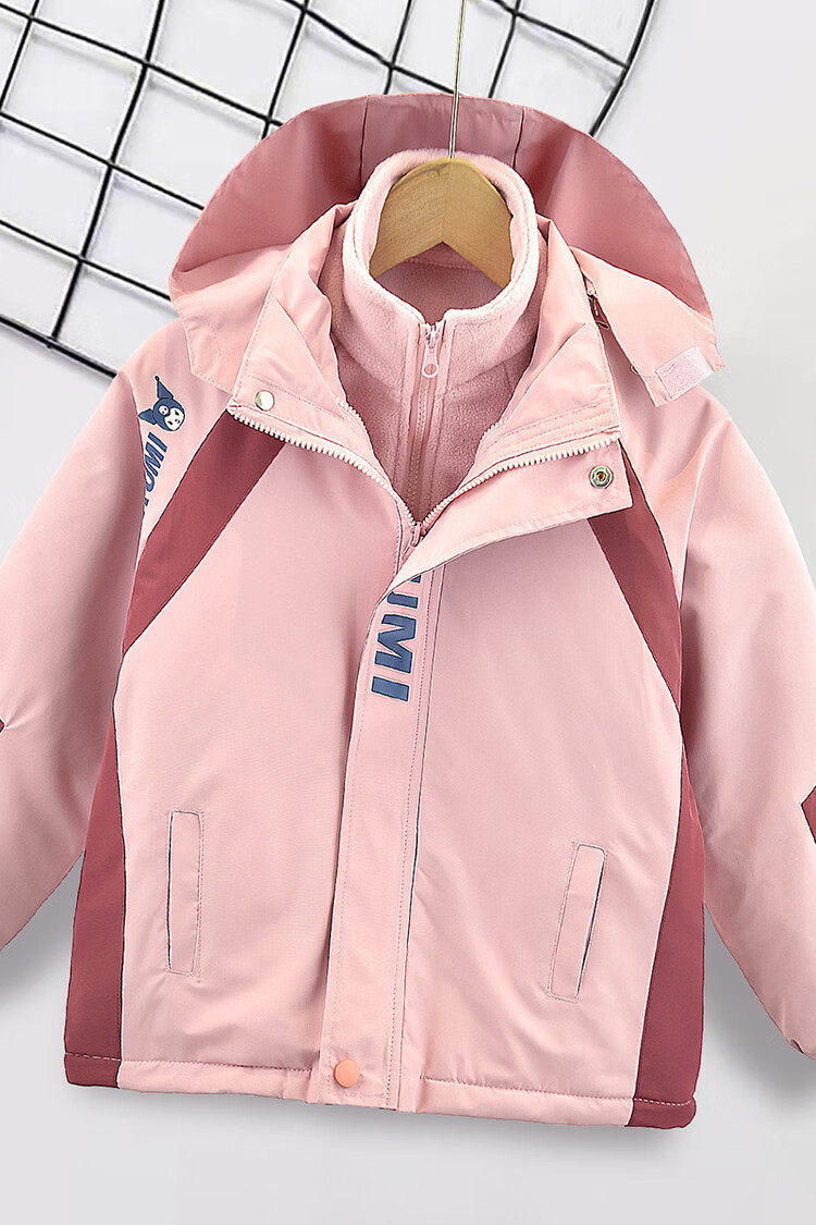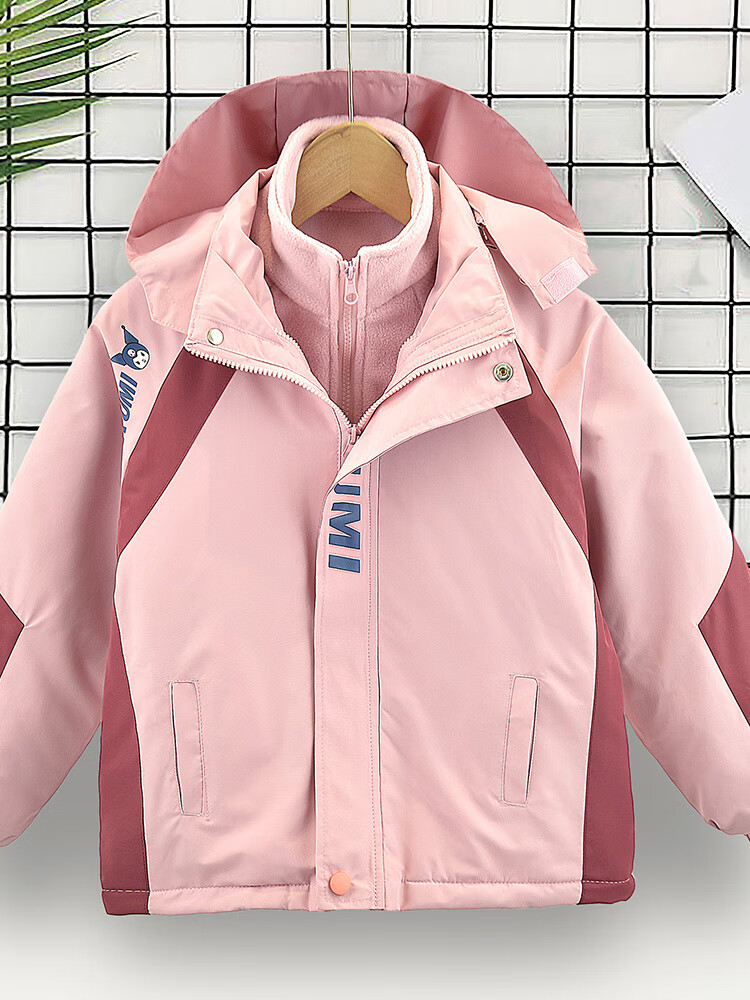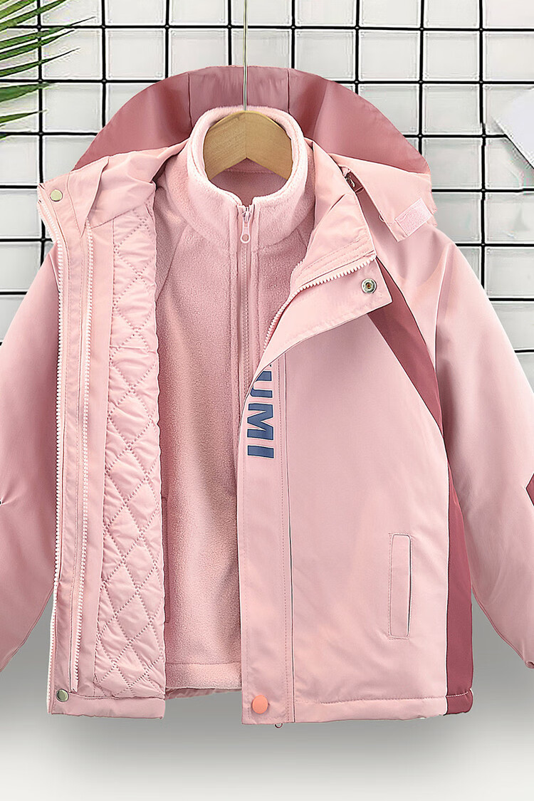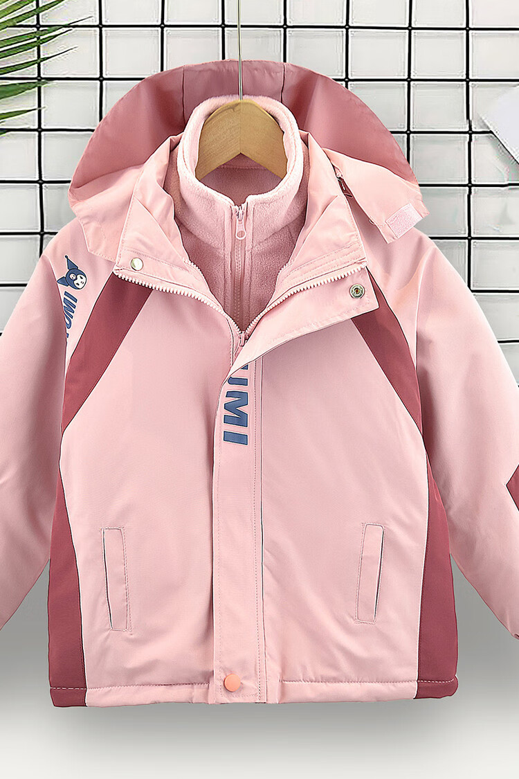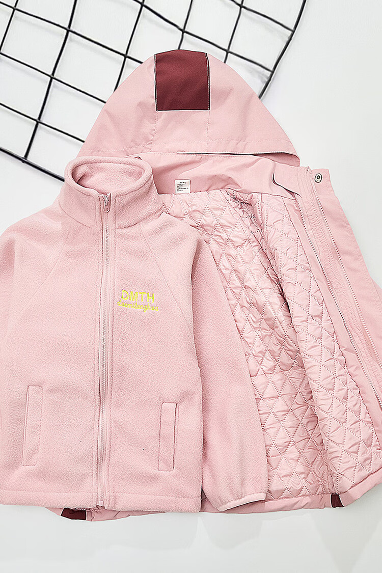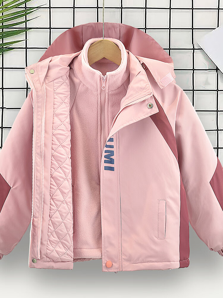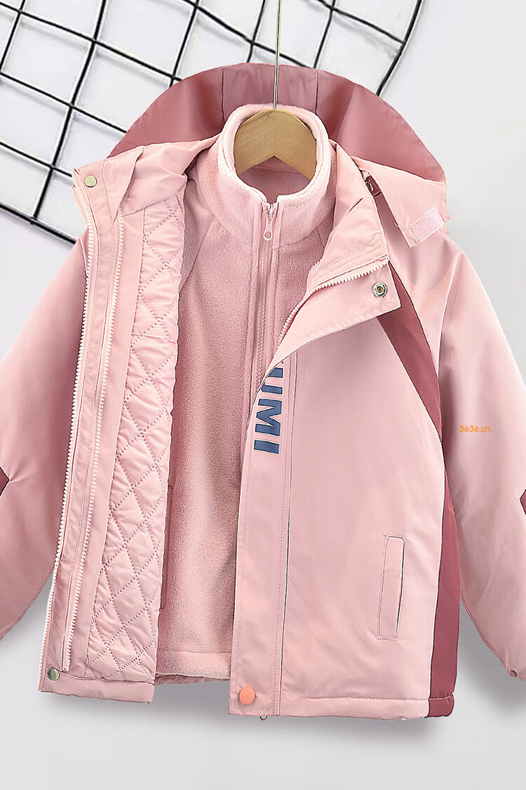 雅鹿童装儿童冲锋衣三合一可拆卸男女童外套秋冬季夹棉两件套登山风衣 粉色 180 cm
