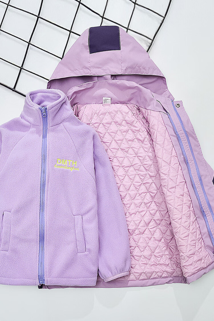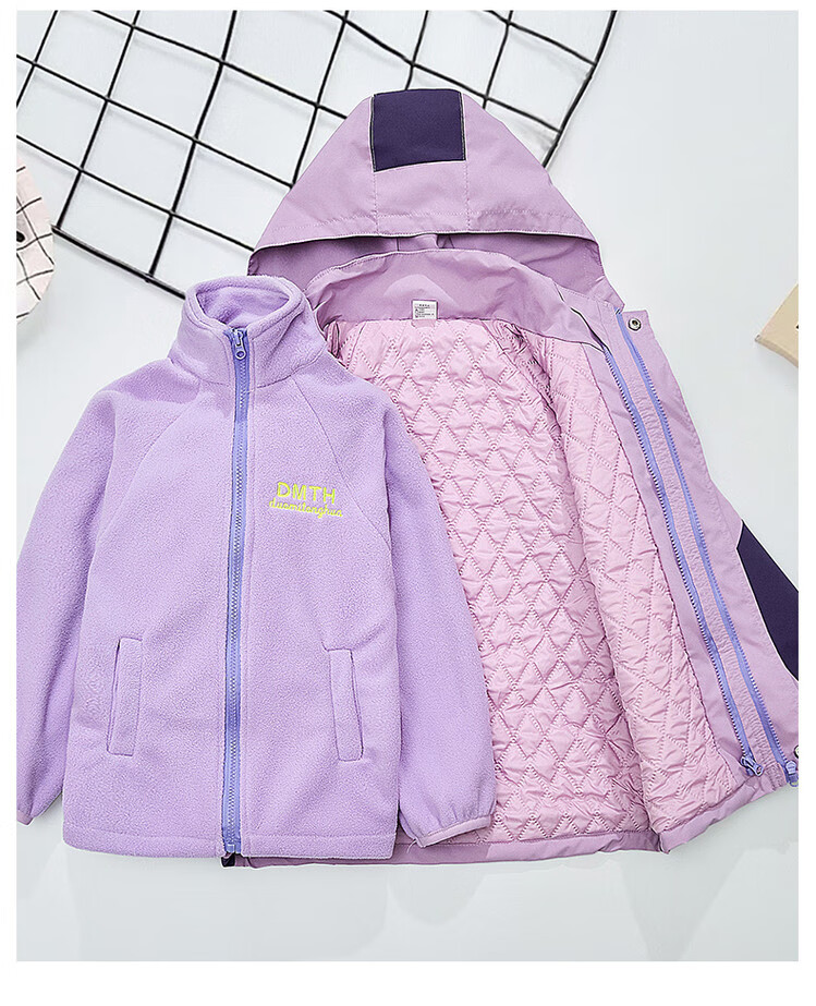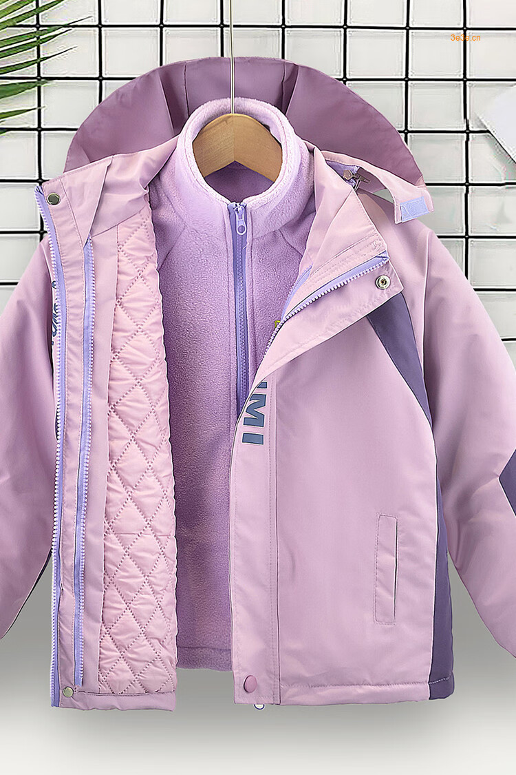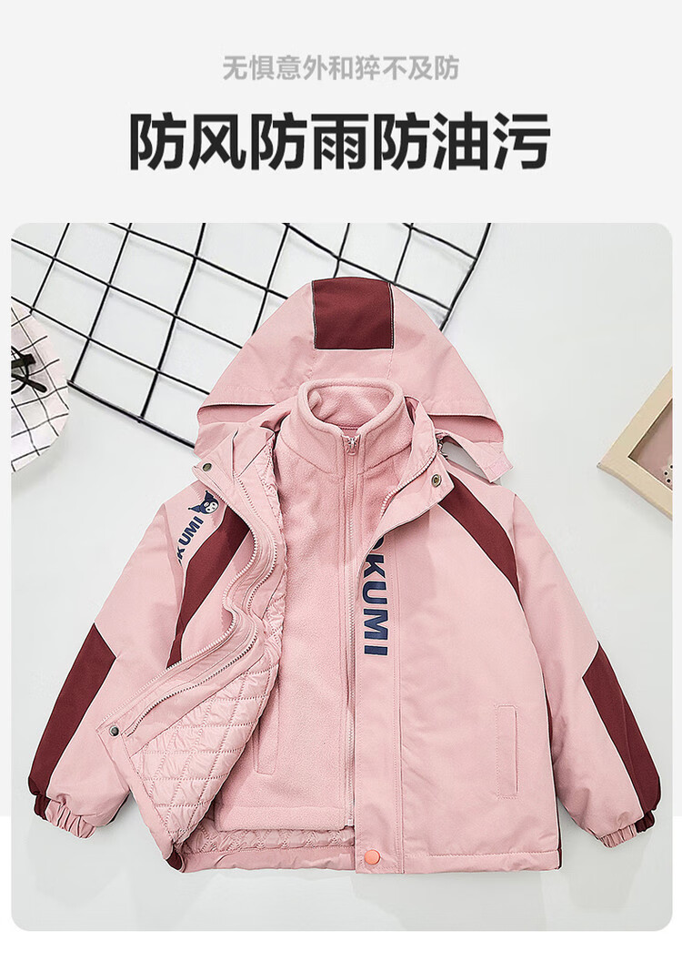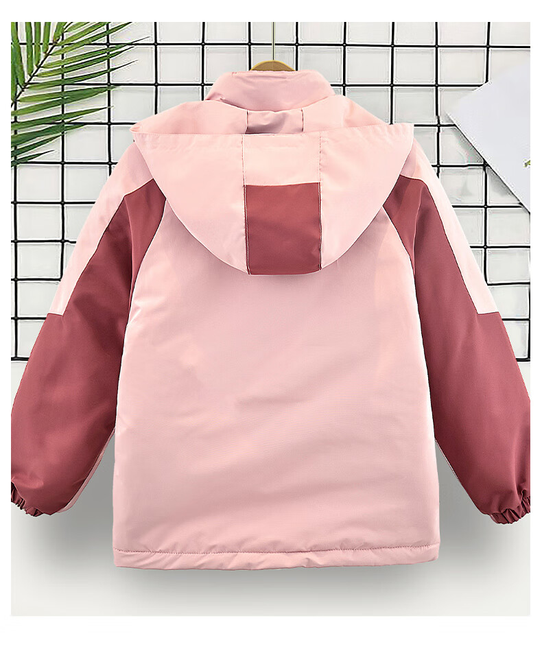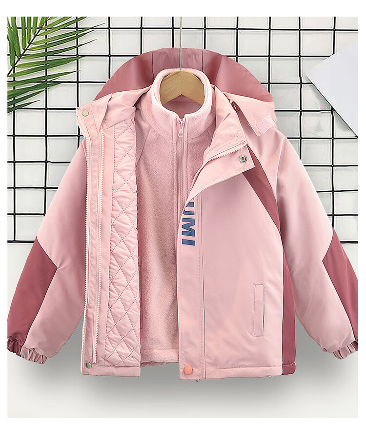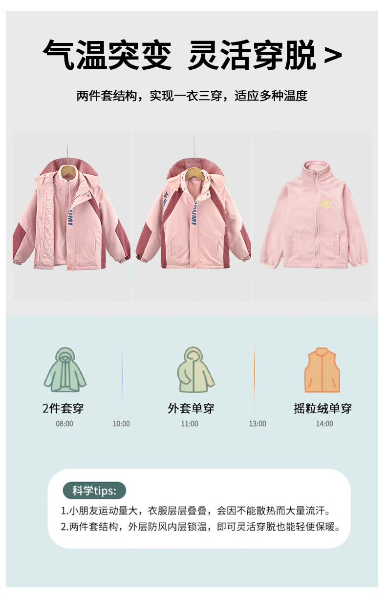 雅鹿童装儿童冲锋衣三合一可拆卸男女童外套秋冬季夹棉两件套登山风衣 粉色 180 cm