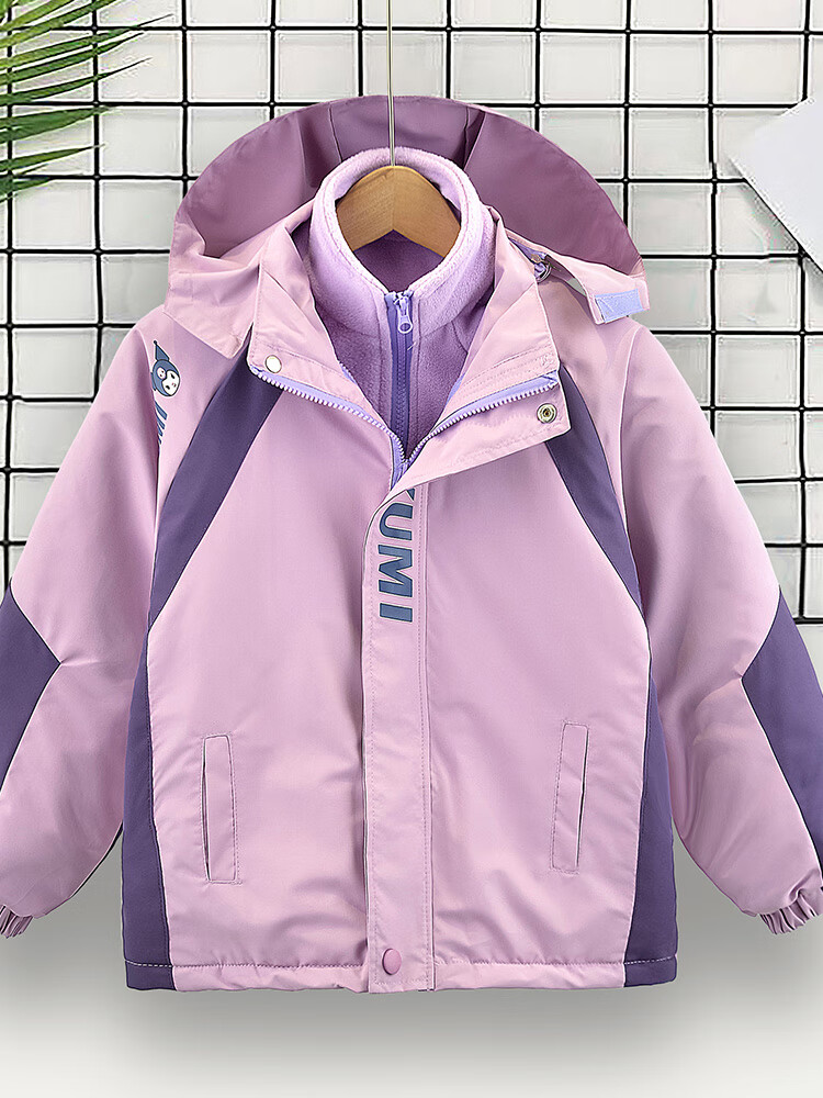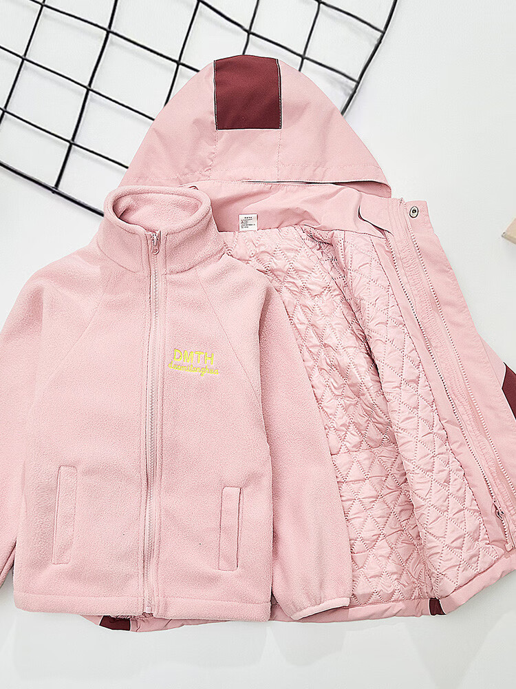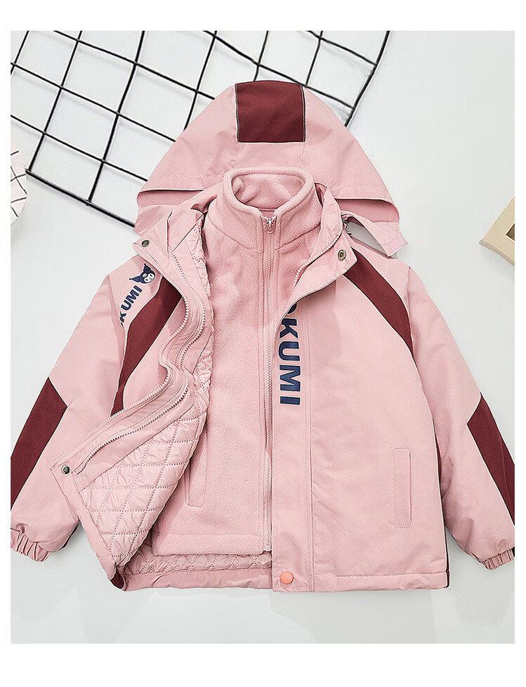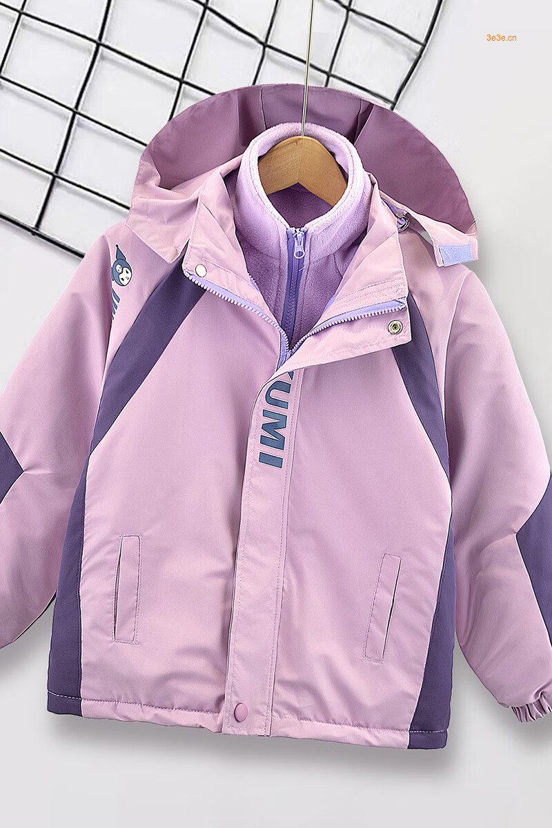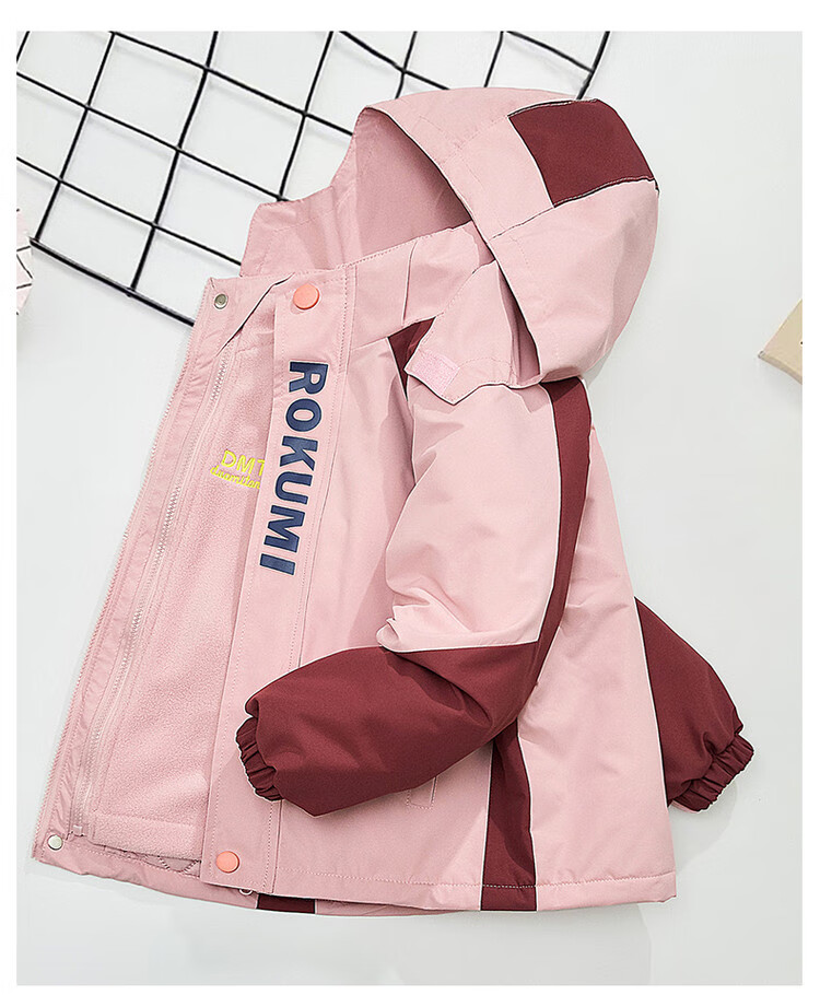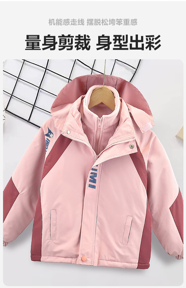 雅鹿童装儿童冲锋衣三合一可拆卸男女童外套秋冬季夹棉两件套登山风衣 粉色 180 cm