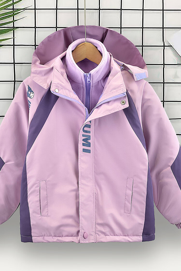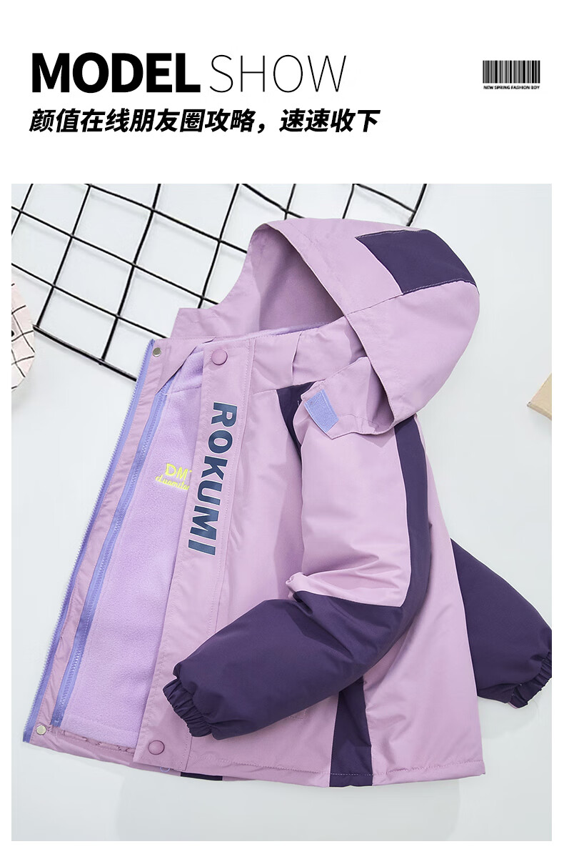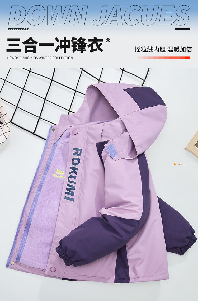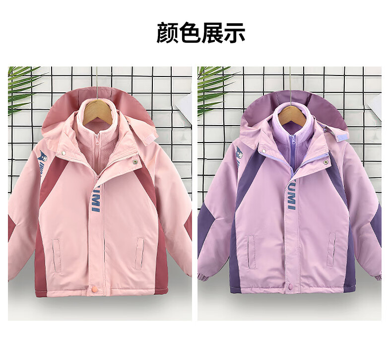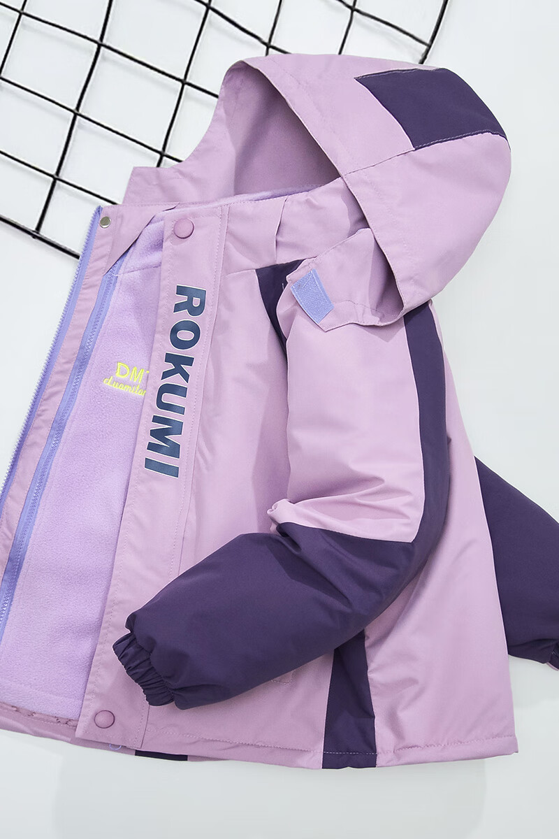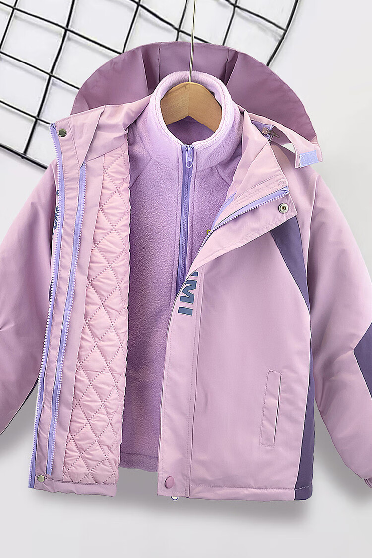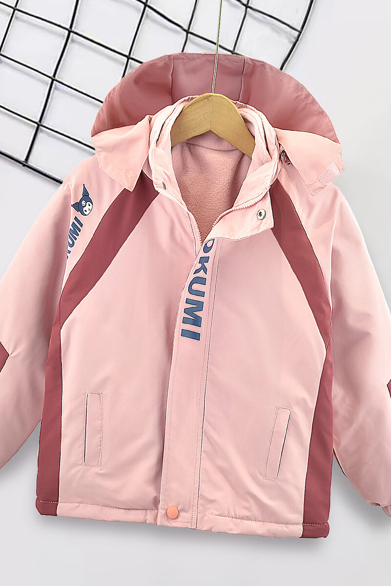雅鹿童装儿童冲锋衣三合一可拆卸男女童外套秋冬季夹棉两件套登山风衣 粉色 180 cm