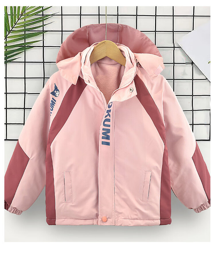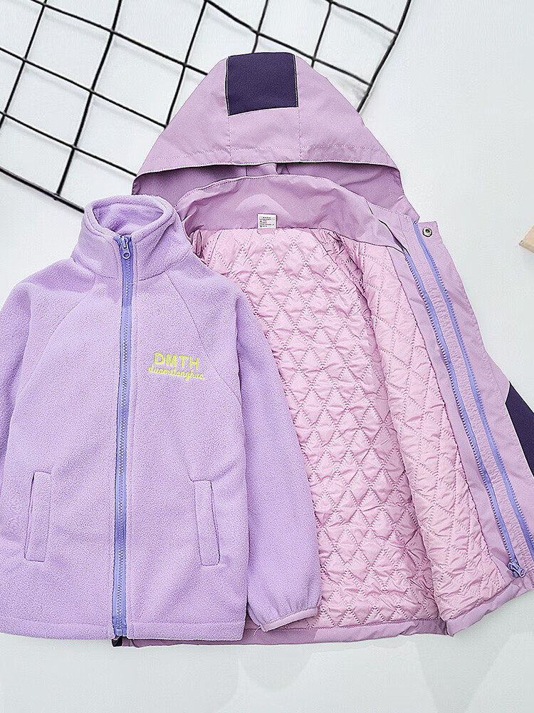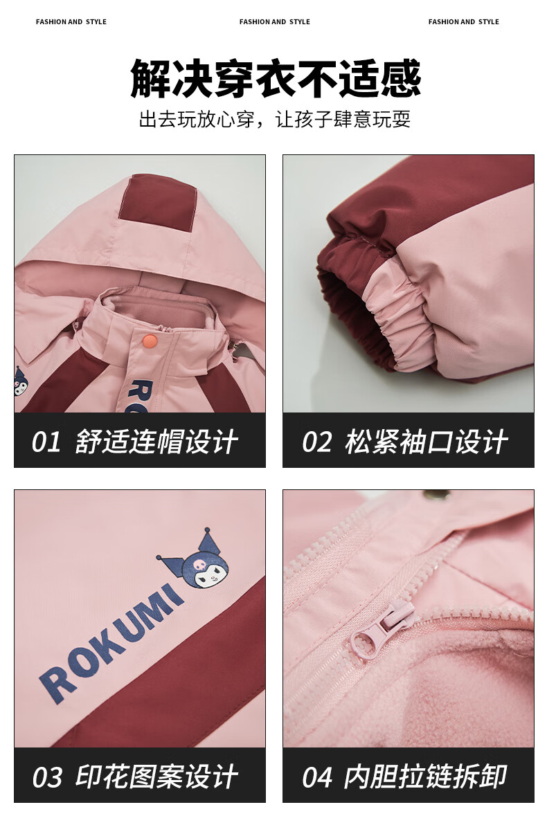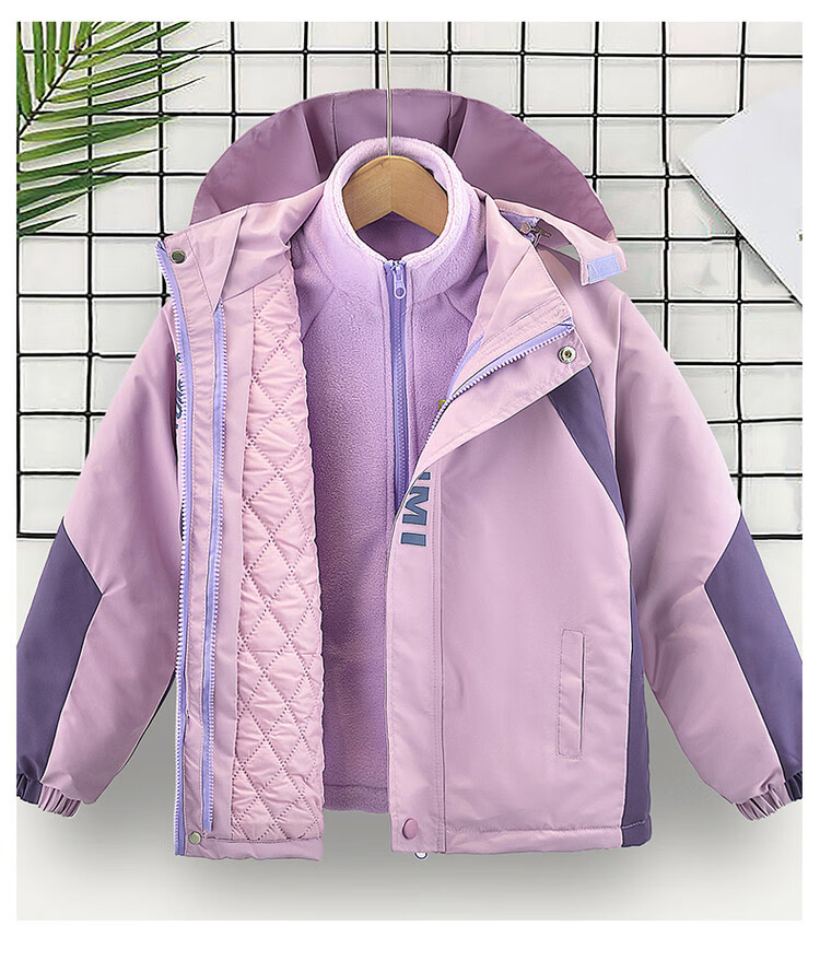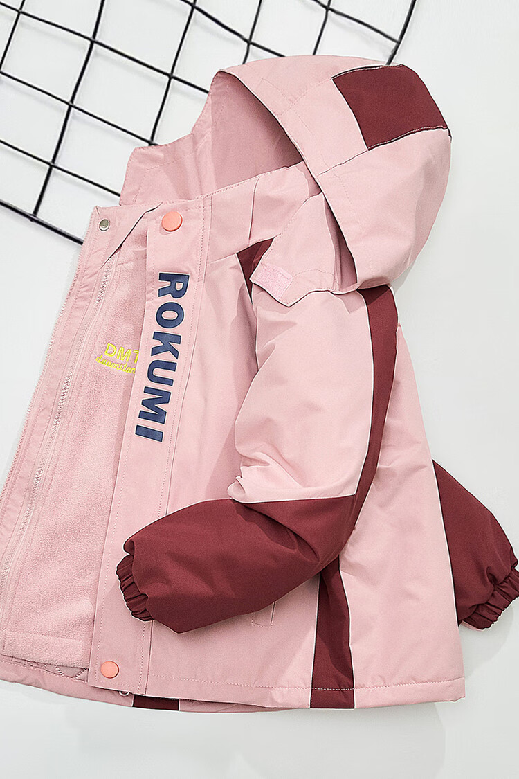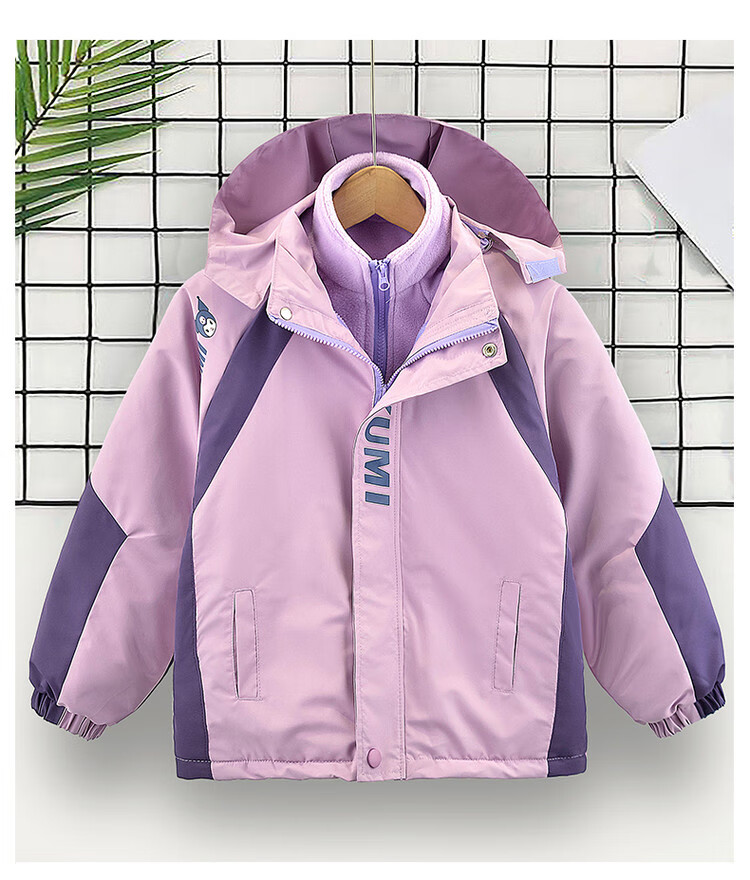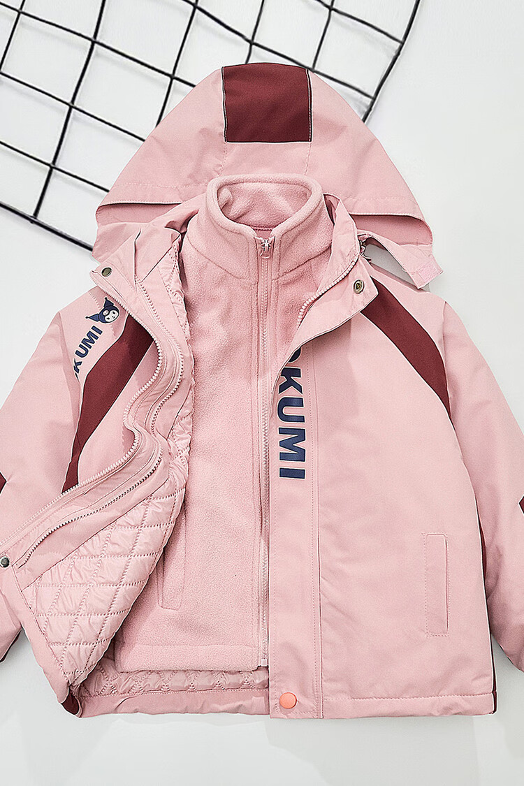 雅鹿童装儿童冲锋衣三合一可拆卸男女童外套秋冬季夹棉两件套登山风衣 粉色 180 cm