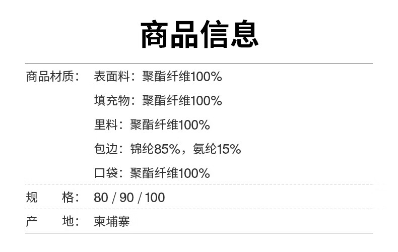 China (cm) 165 / 88-90 170 / 96-98 175 / 108-110 180 / 118-122 185 / 126-130