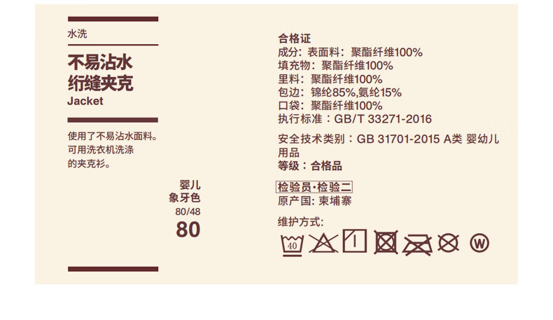 无印良品(MUJI)婴童水洗不易沾水绗缝夹克儿童外套男童女童25年秋冬童装 象牙色 100 /56A