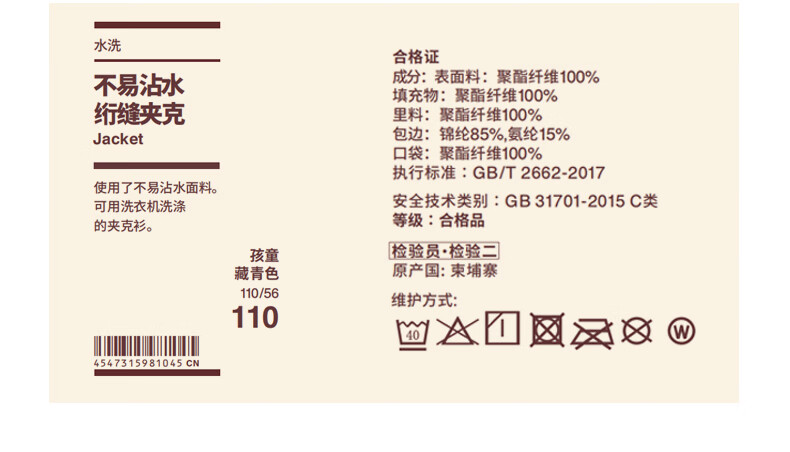 MUJI ältere Kinder waschbare, wasserabweisende Steppjacke, Kindermantel, Jungen und Mädchen 25. Herbst und Winter Kinderbekleidung neues Produkt, Elfenbein 150/76A