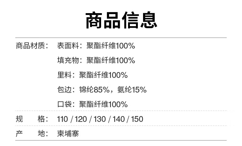 China (cm) 165 / 88-90 170 / 96-98 175 / 108-110 180 / 118-122 185 / 126-130