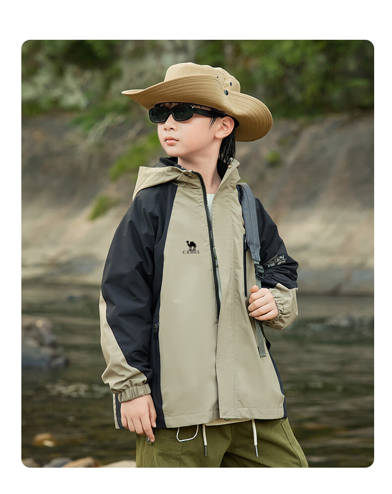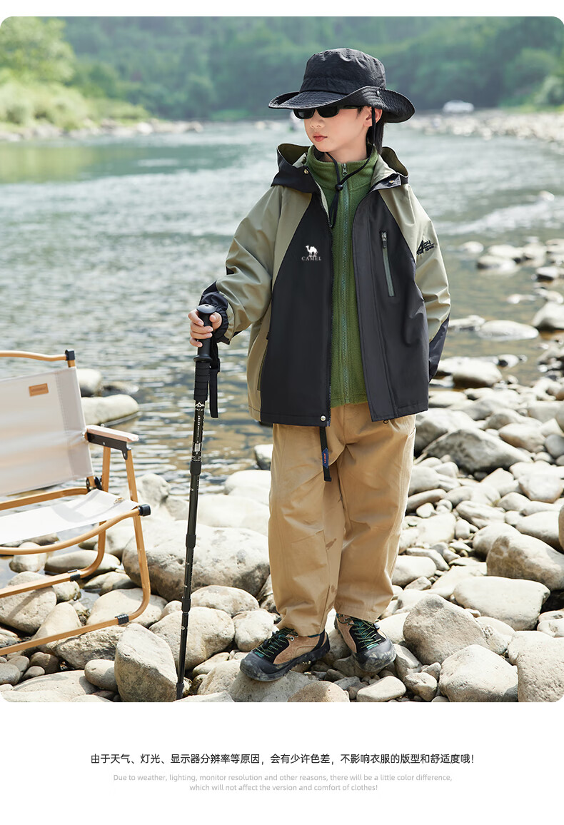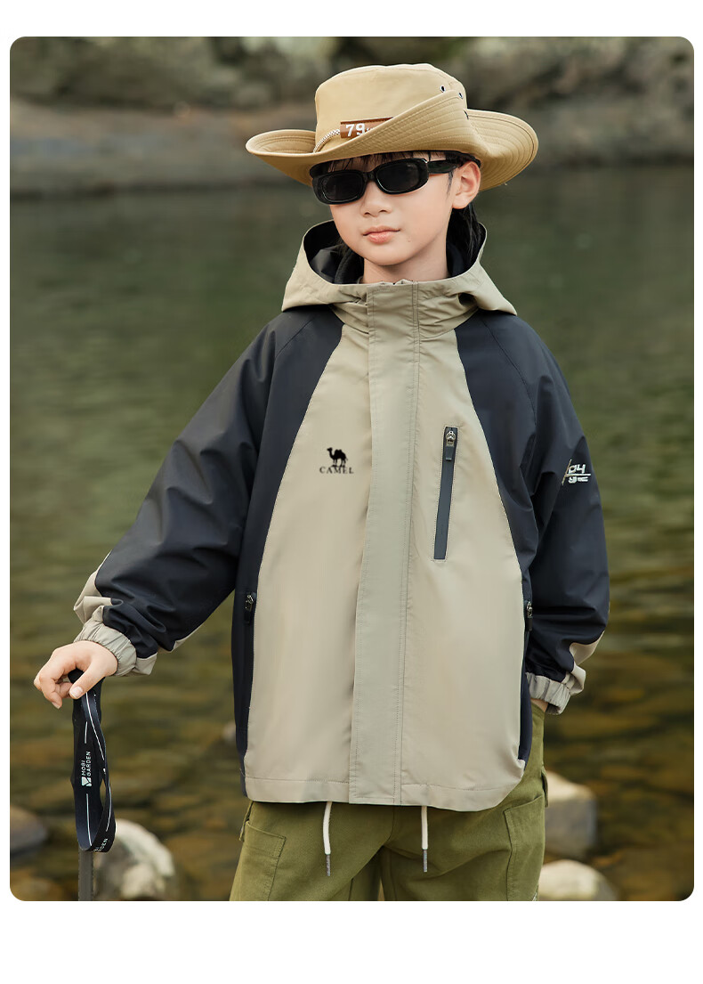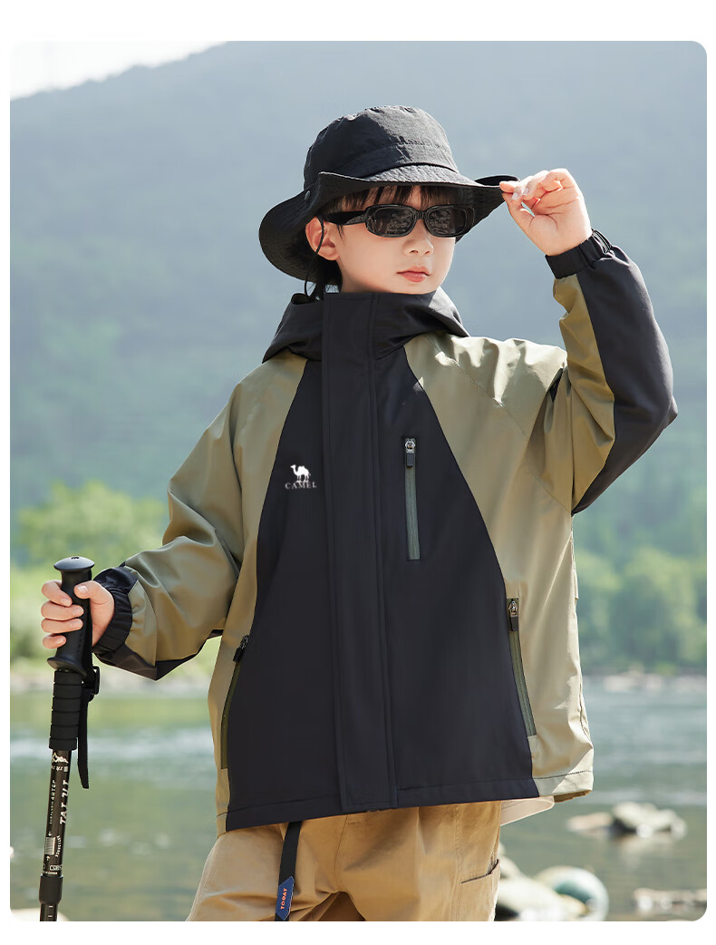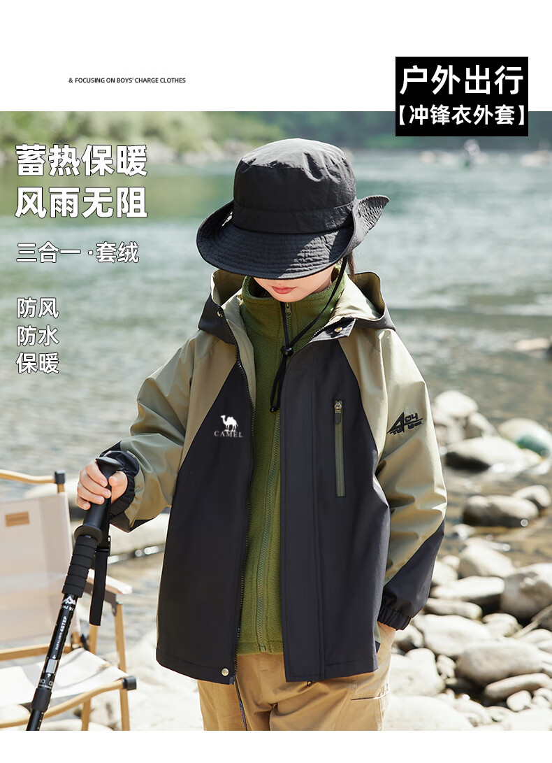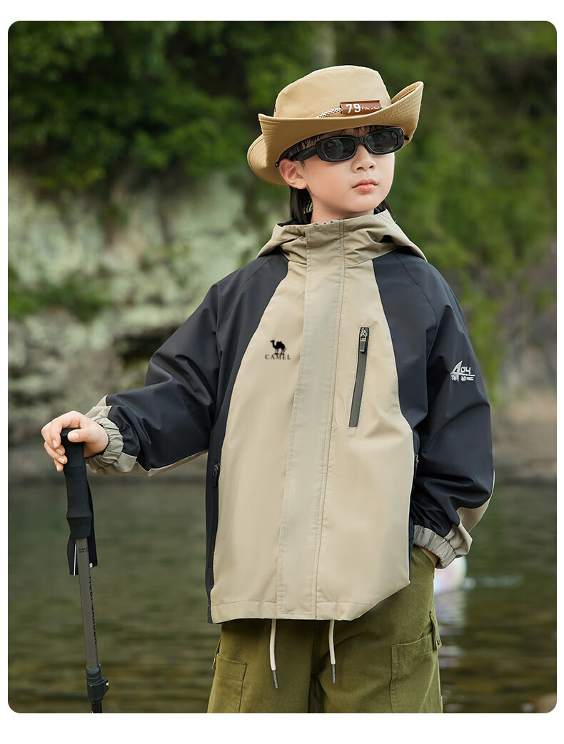 骆驼(camkids)童装儿童冲锋外套男童春秋装2025新款男孩大童三合一户外衣服 黑色23459【三合一】内胆可拆卸 120 cm