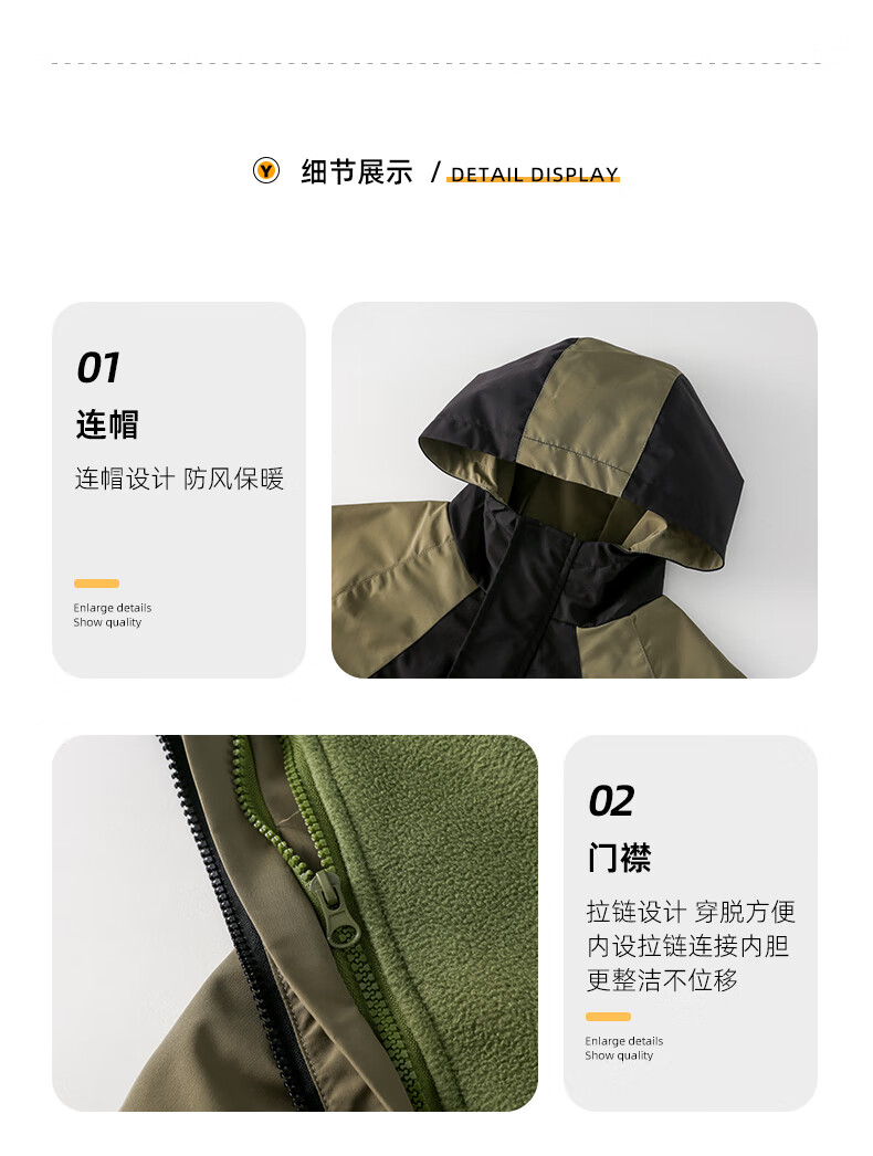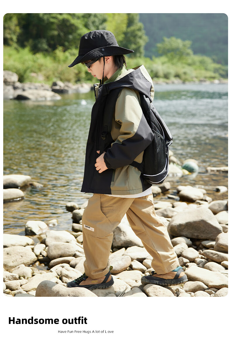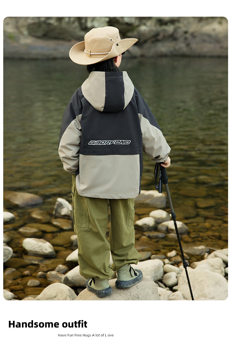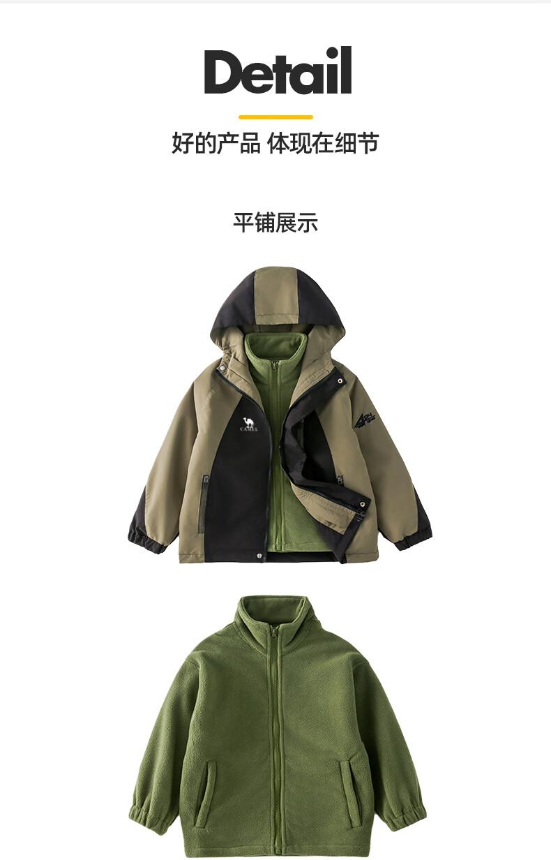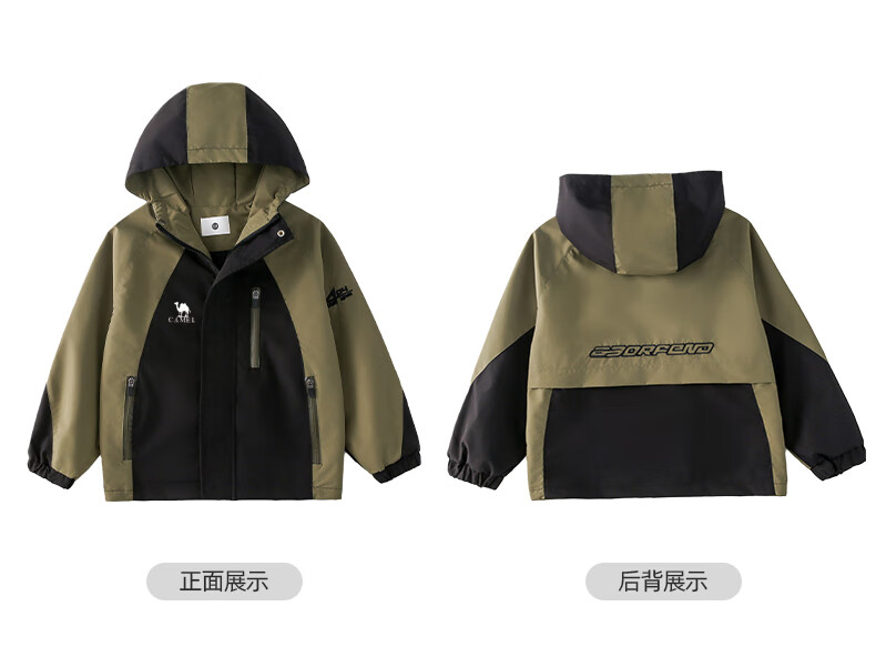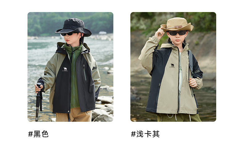 骆驼(camkids)童装儿童冲锋外套男童春秋装2025新款男孩大童三合一户外衣服 黑色23459【三合一】内胆可拆卸 120 cm