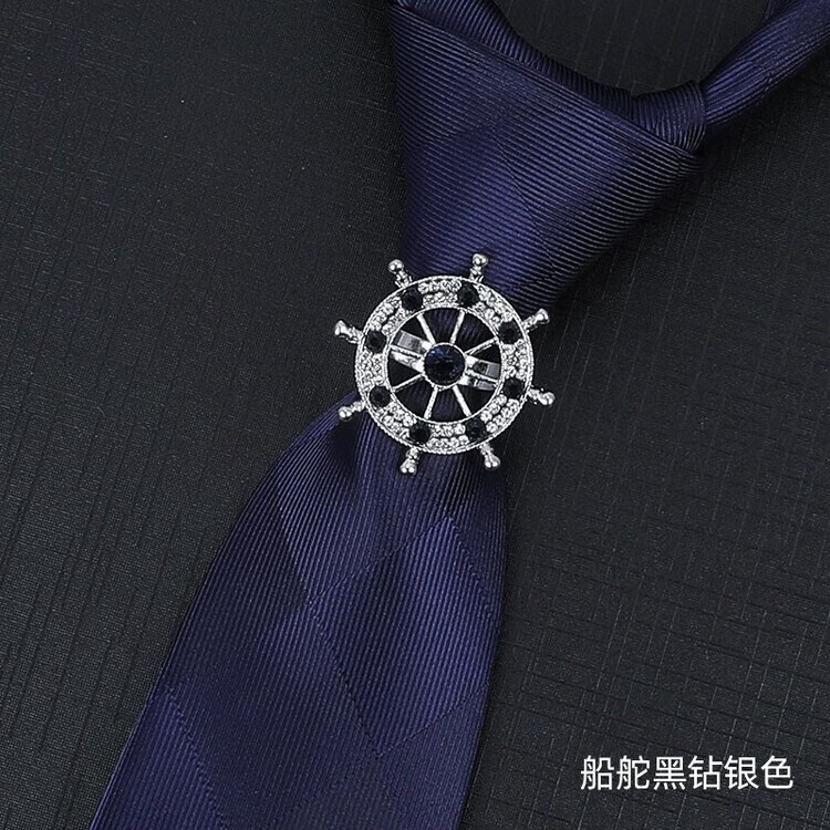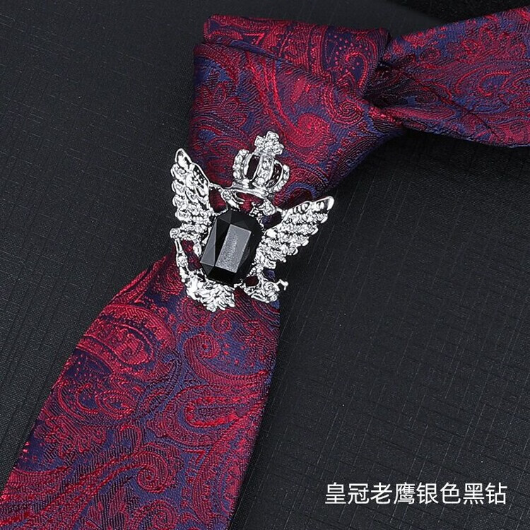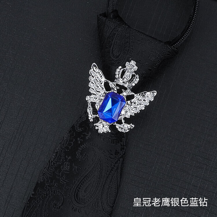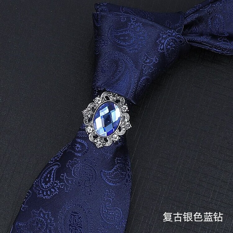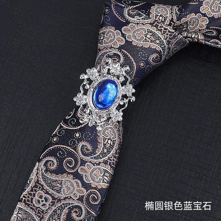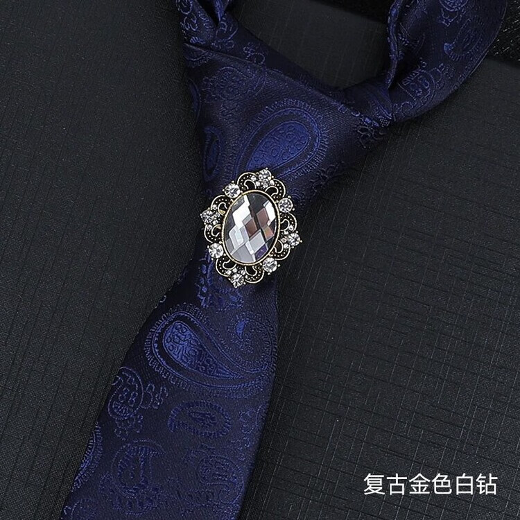 Huansen Clip de col en strass pour hommes haut de gamme, costume rétro, cerceau de cravate décontracté, chemise d'affaires, boucle de cravate ovale en or champagne, cerceau de cravate avec pierres précieuses + noix de cajou rouges et bleues faites à la main