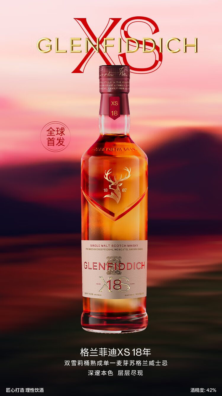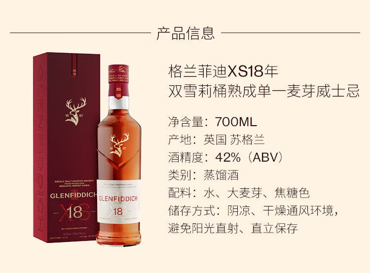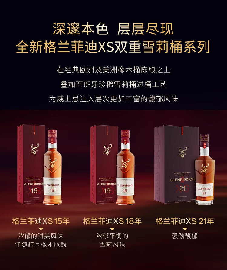 GLENFIDDICH XS 18 Years Double Sherry Barrel Mature Single Malt Scotch Whiskey 700ml XS Double Sherry Series 18 Years