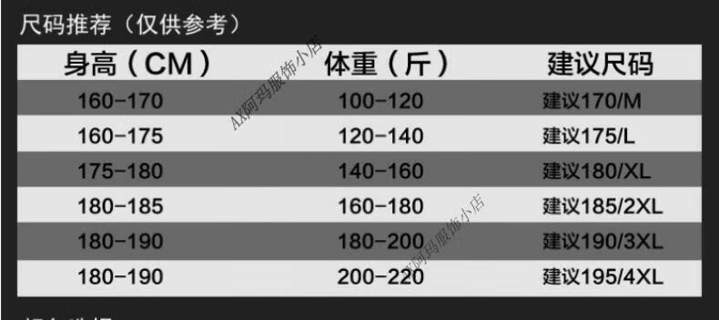 China (cm) 165 / 88-90 170 / 96-98 175 / 108-110 180 / 118-122 185 / 126-130