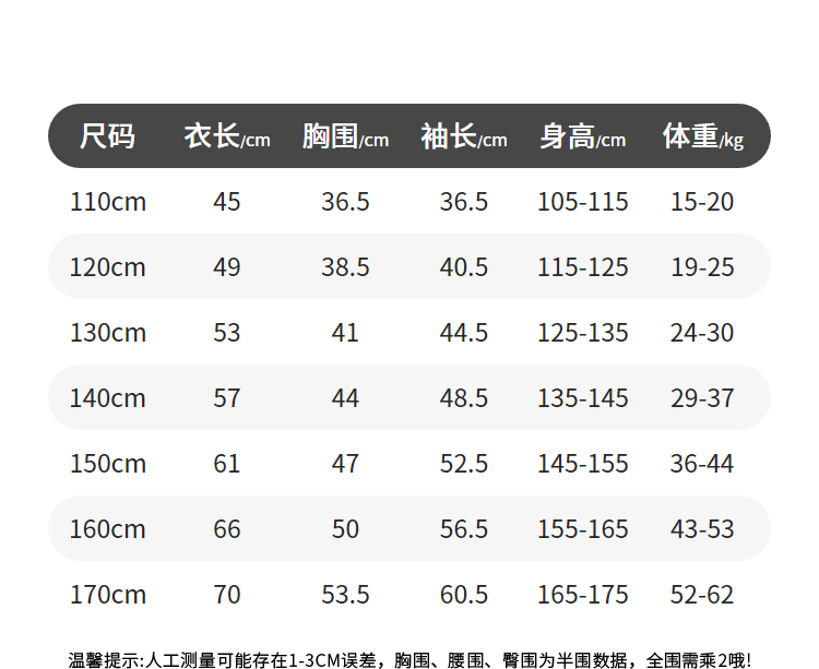 China (cm) 160-165/84-86 165-170 / 88-90 167-172 / 92-96 168-173 / 98-102 170-176 / 106-110