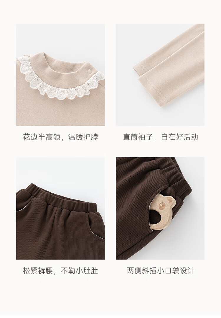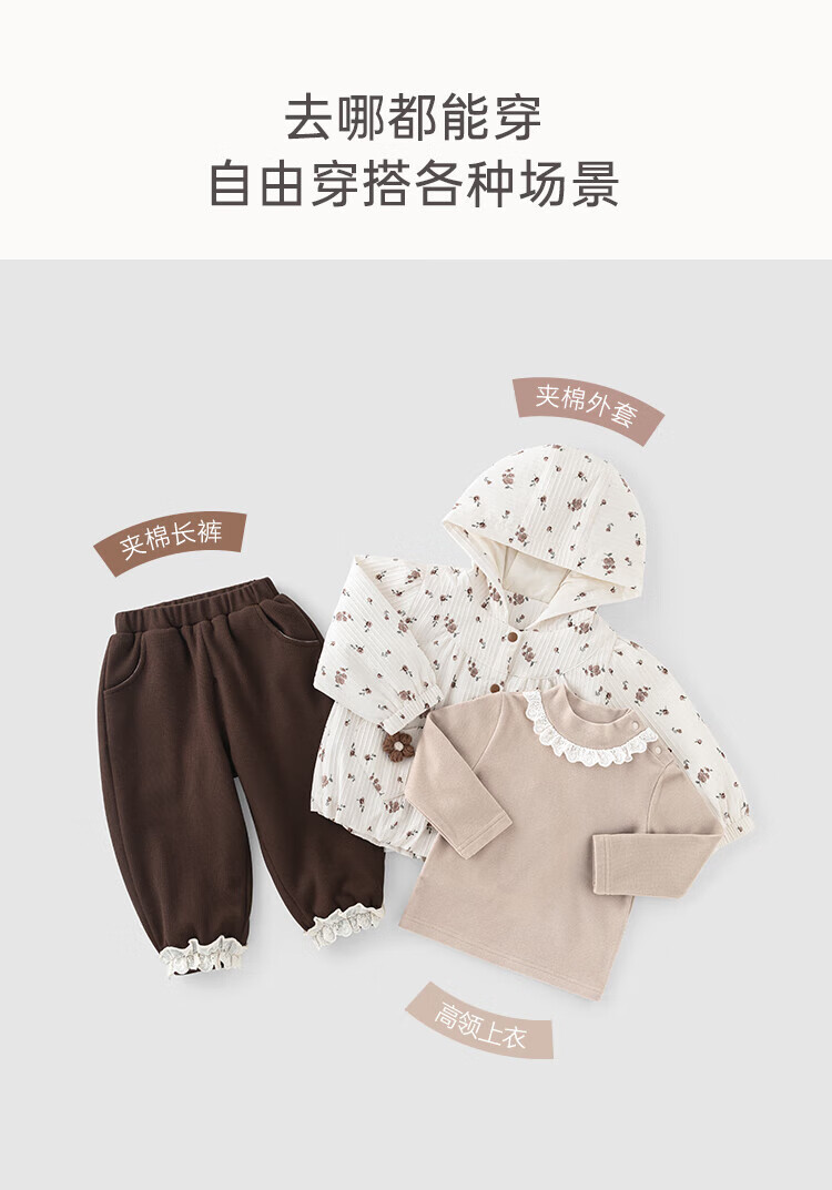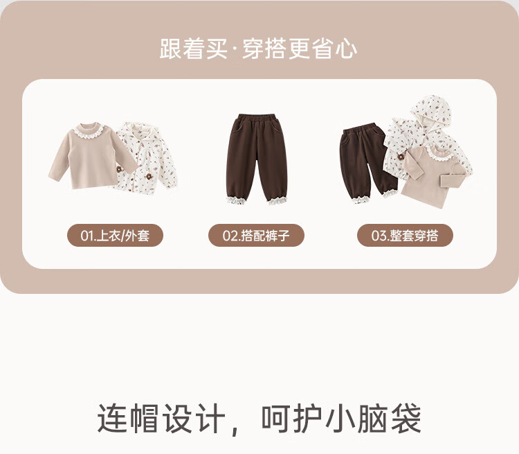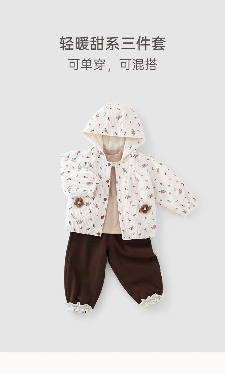 乖奇熊【女童甜美三件套】春秋女宝宝衣服裤子外出休闲套装婴幼夹棉外套 杏色白色咖色 110