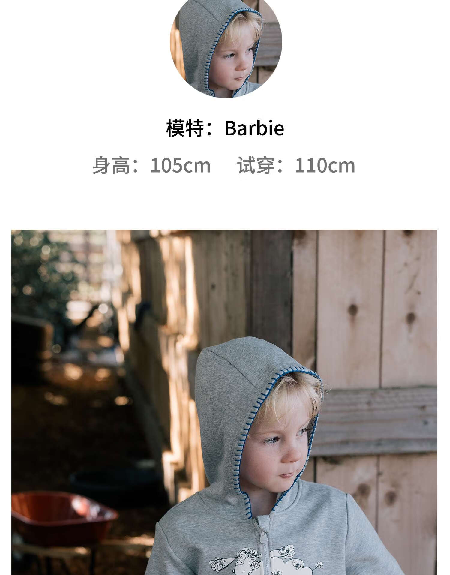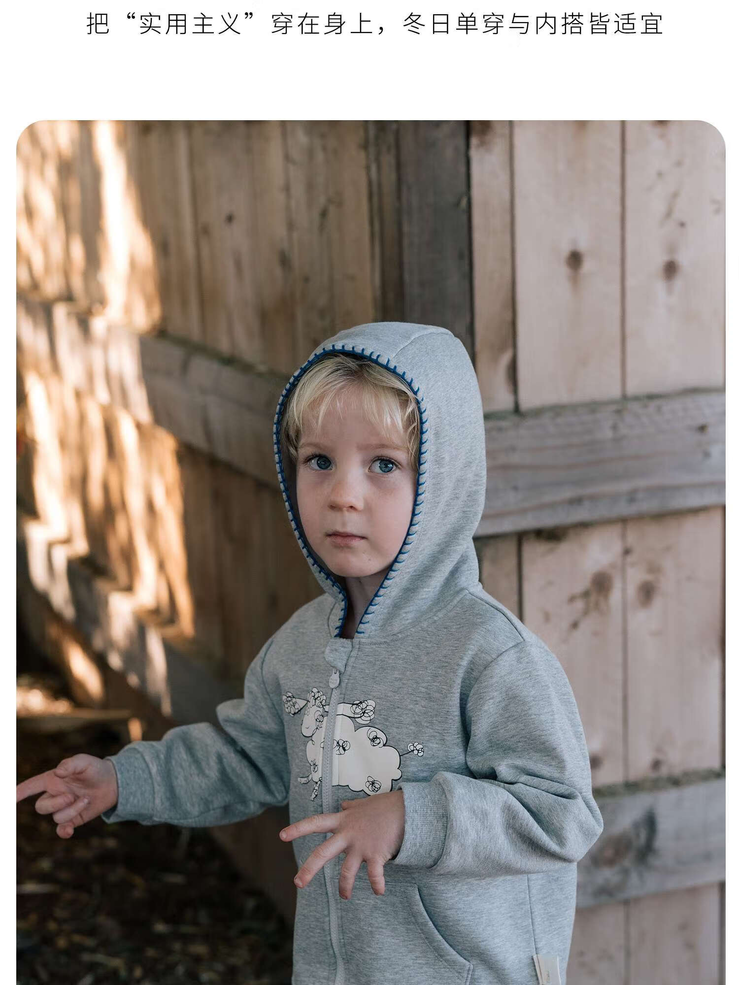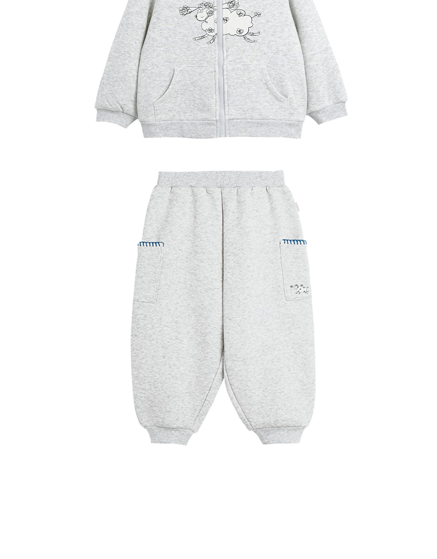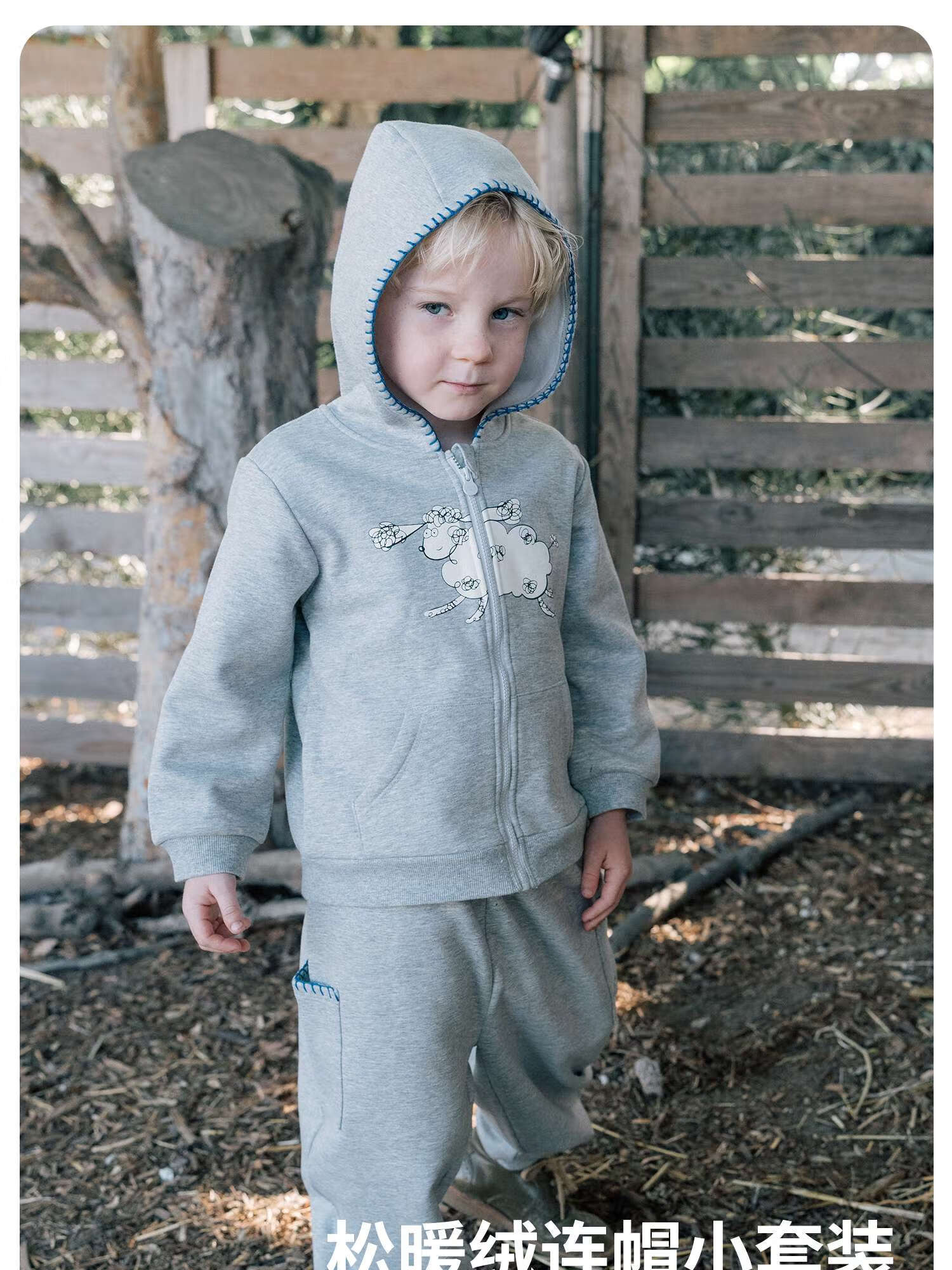white wheat儿童2025冬季新款保暖套装男女童卡通宝宝连帽上衣裤子 灰色卫衣 90