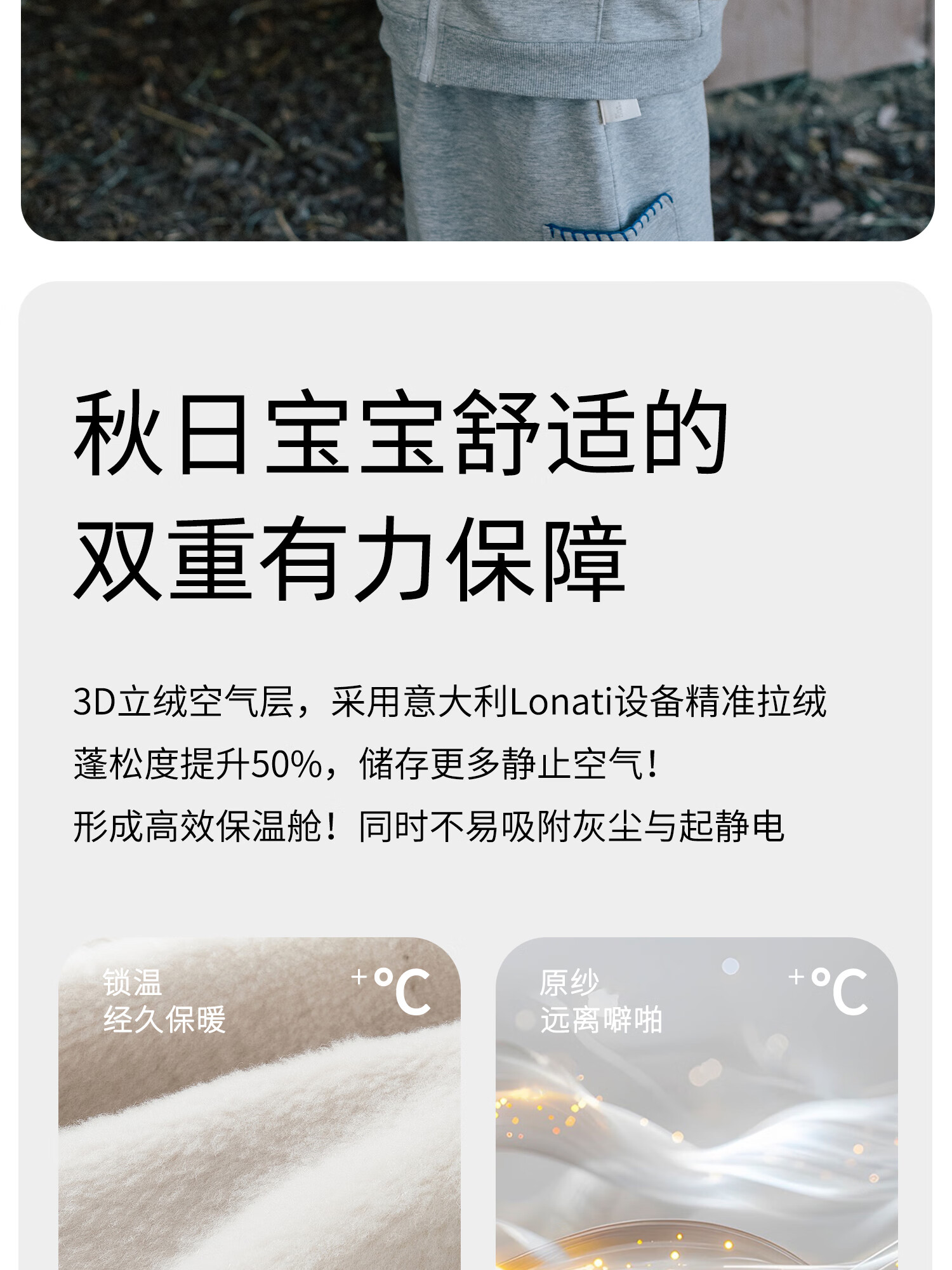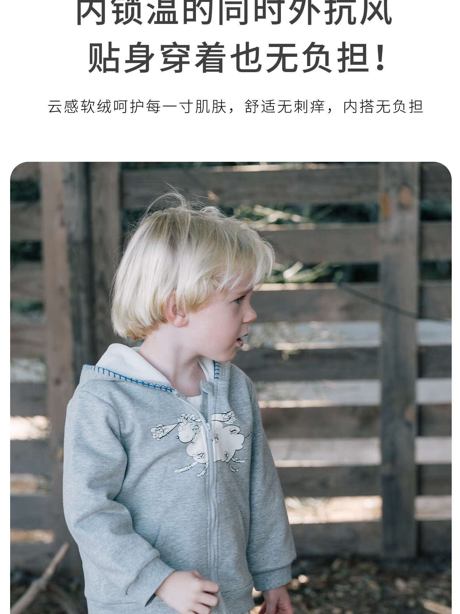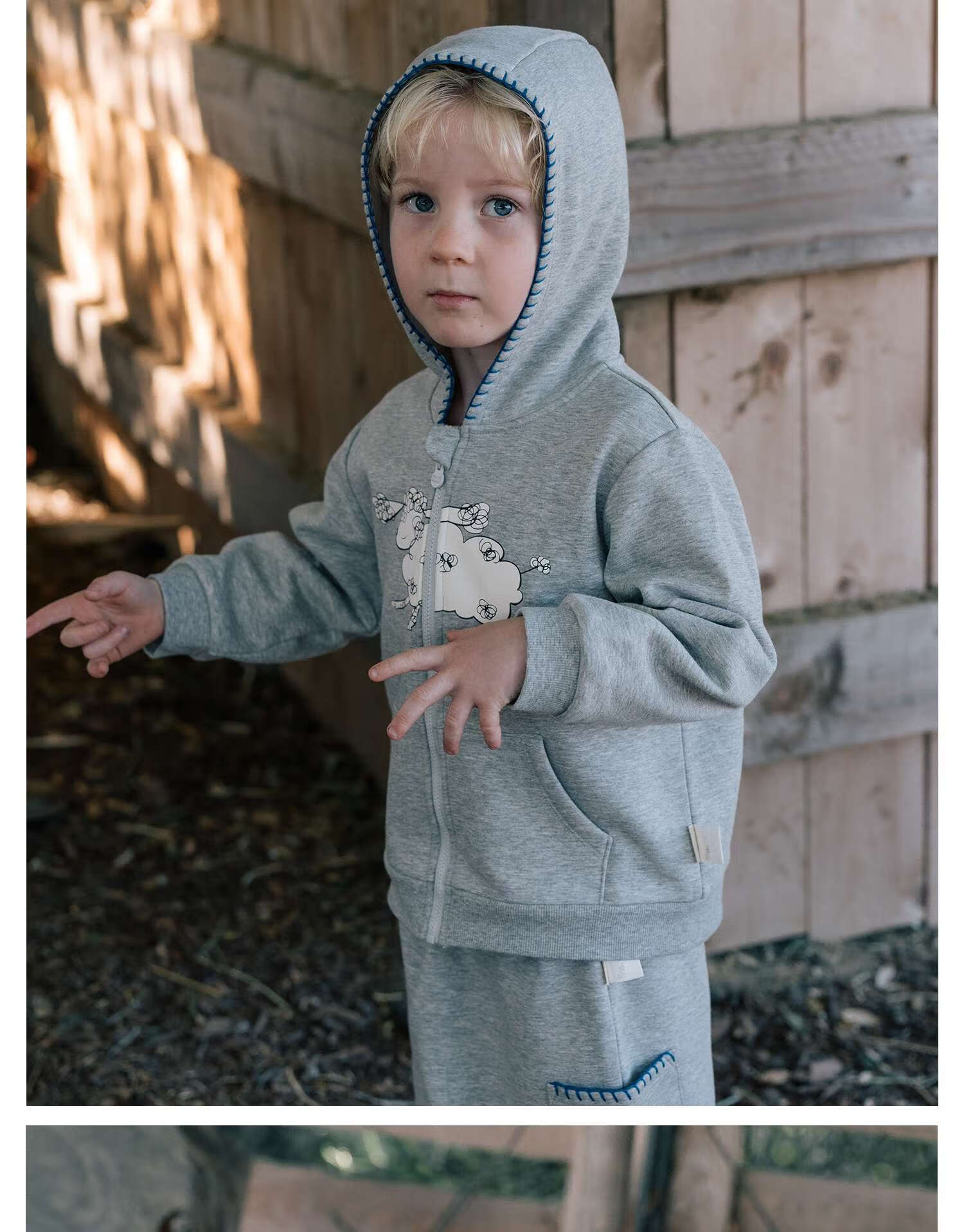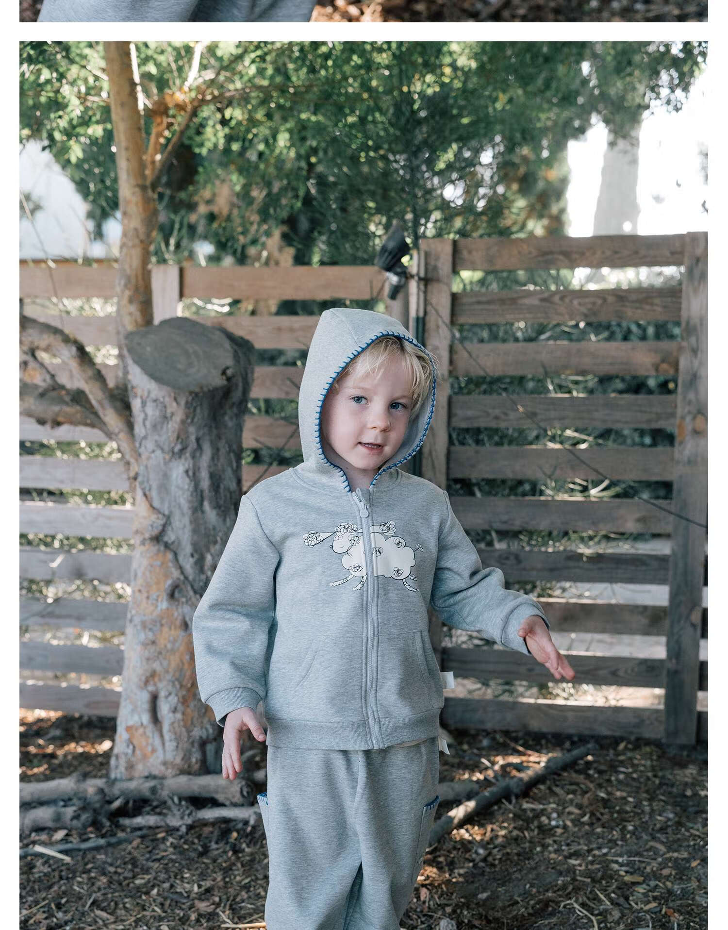 white wheat儿童2025冬季新款保暖套装男女童卡通宝宝连帽上衣裤子 灰色卫衣 90