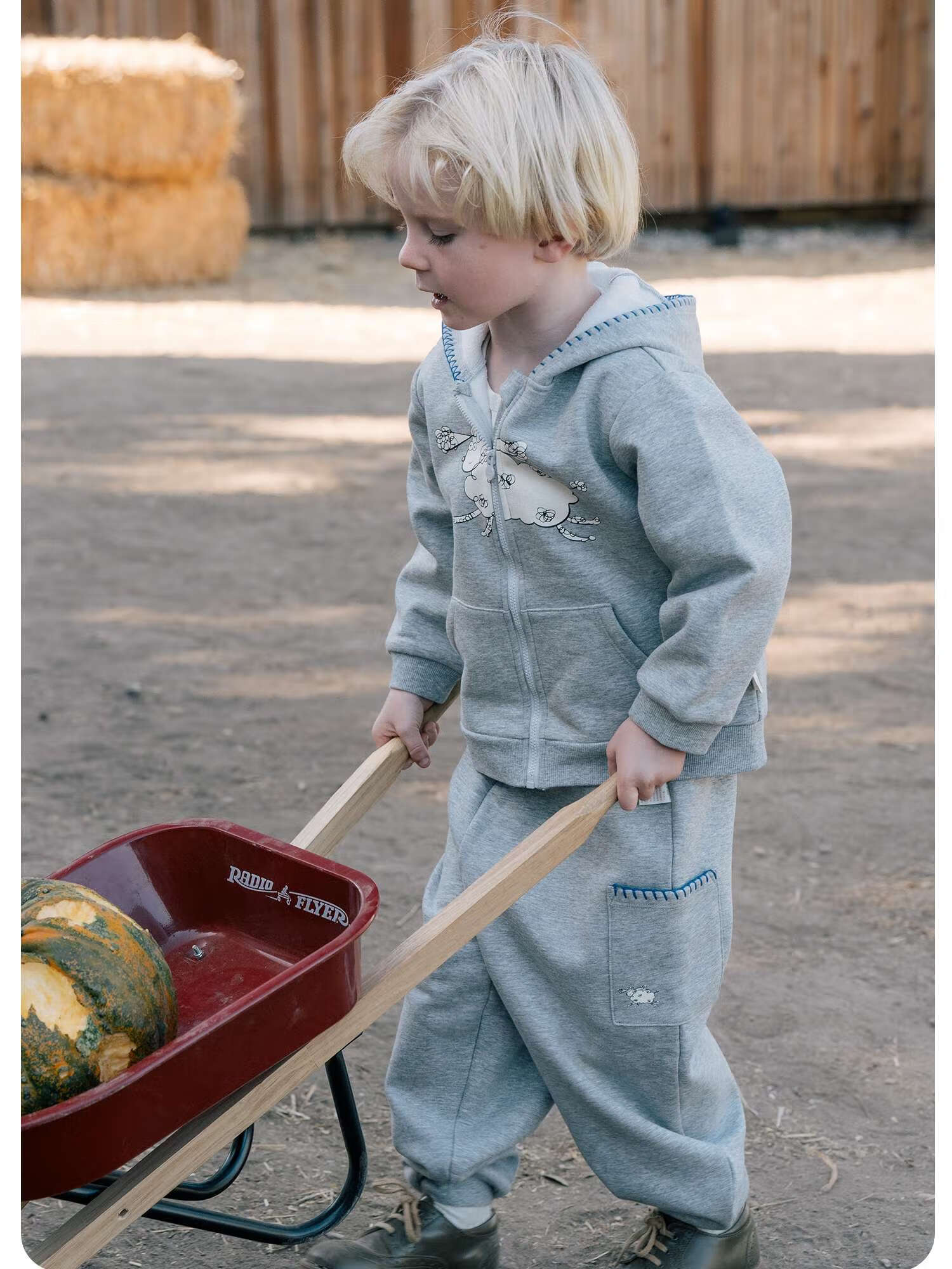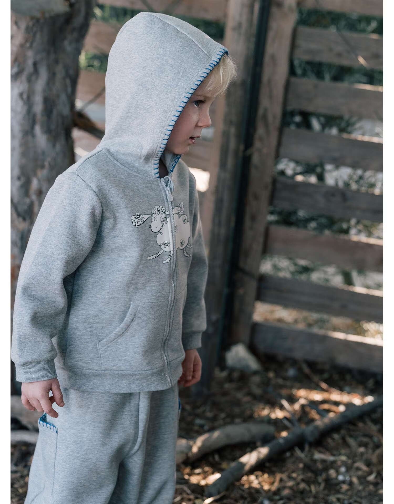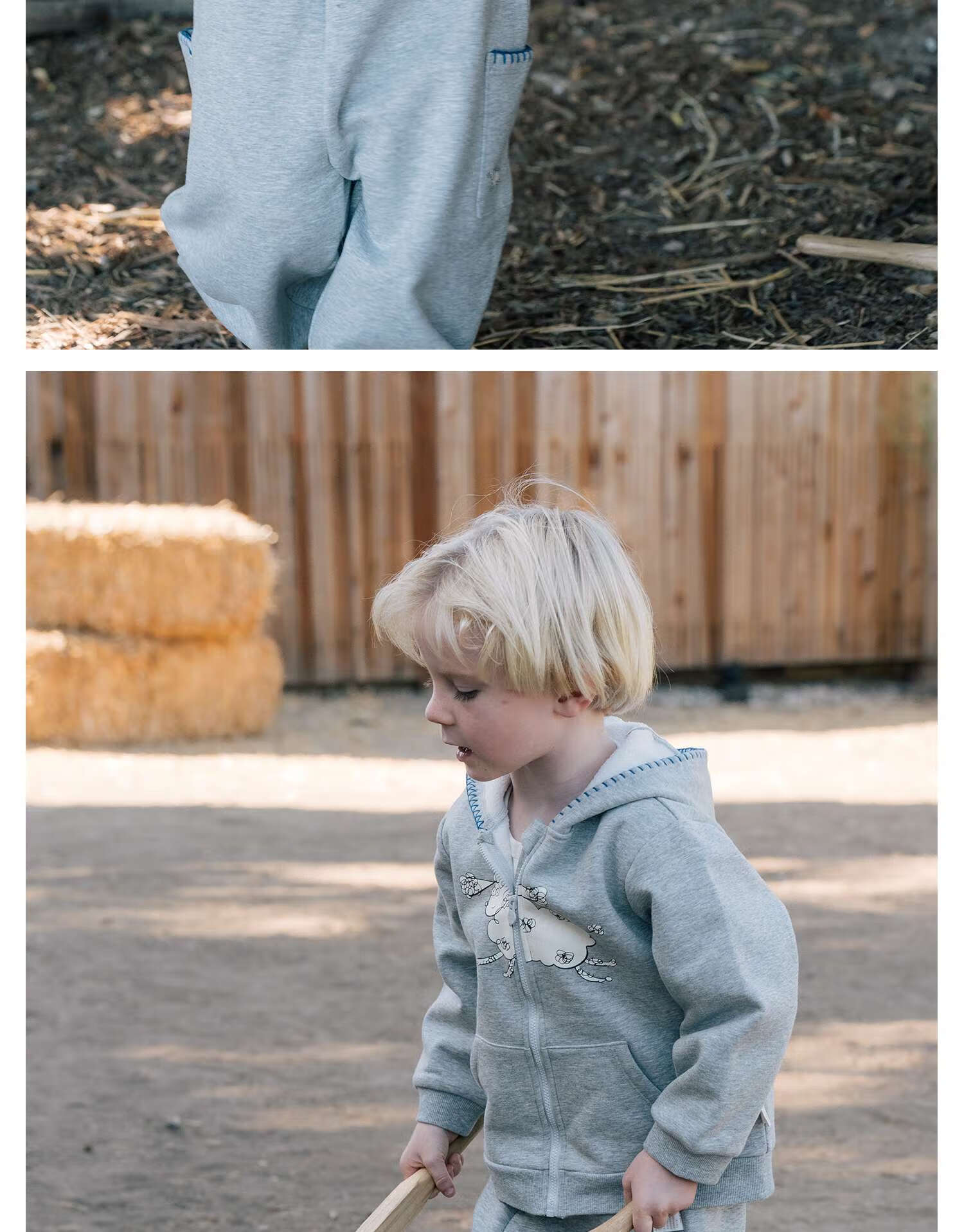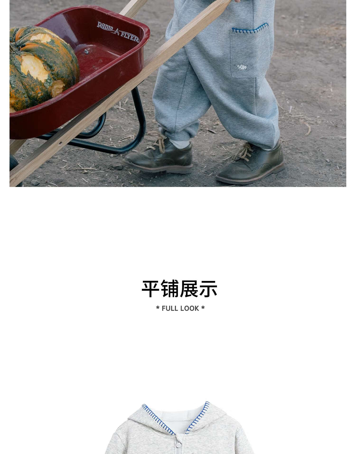 white wheat儿童2025冬季新款保暖套装男女童卡通宝宝连帽上衣裤子 灰色卫衣 90