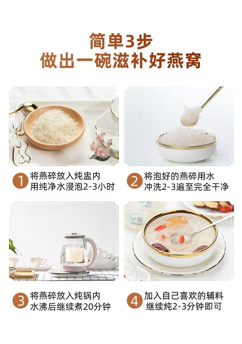印度尼西亚天然进口燕窝燕碎天然孕妇级丰富干盏滋补品 印度尼西亚进口燕碎 溯源燕碎 500g【超值全家享】