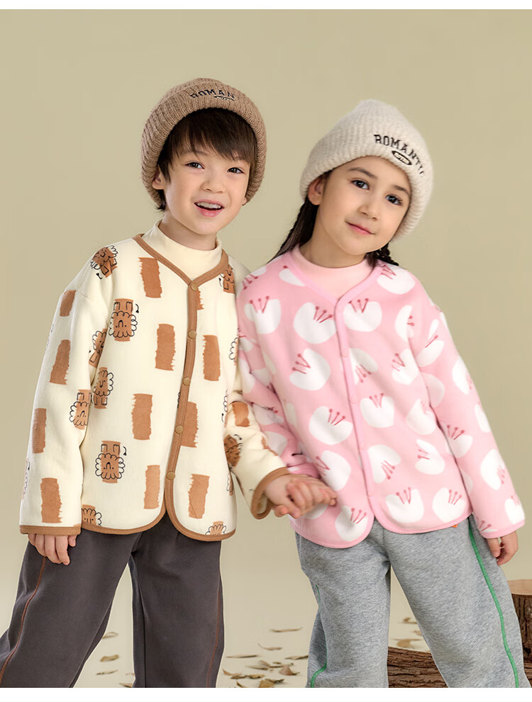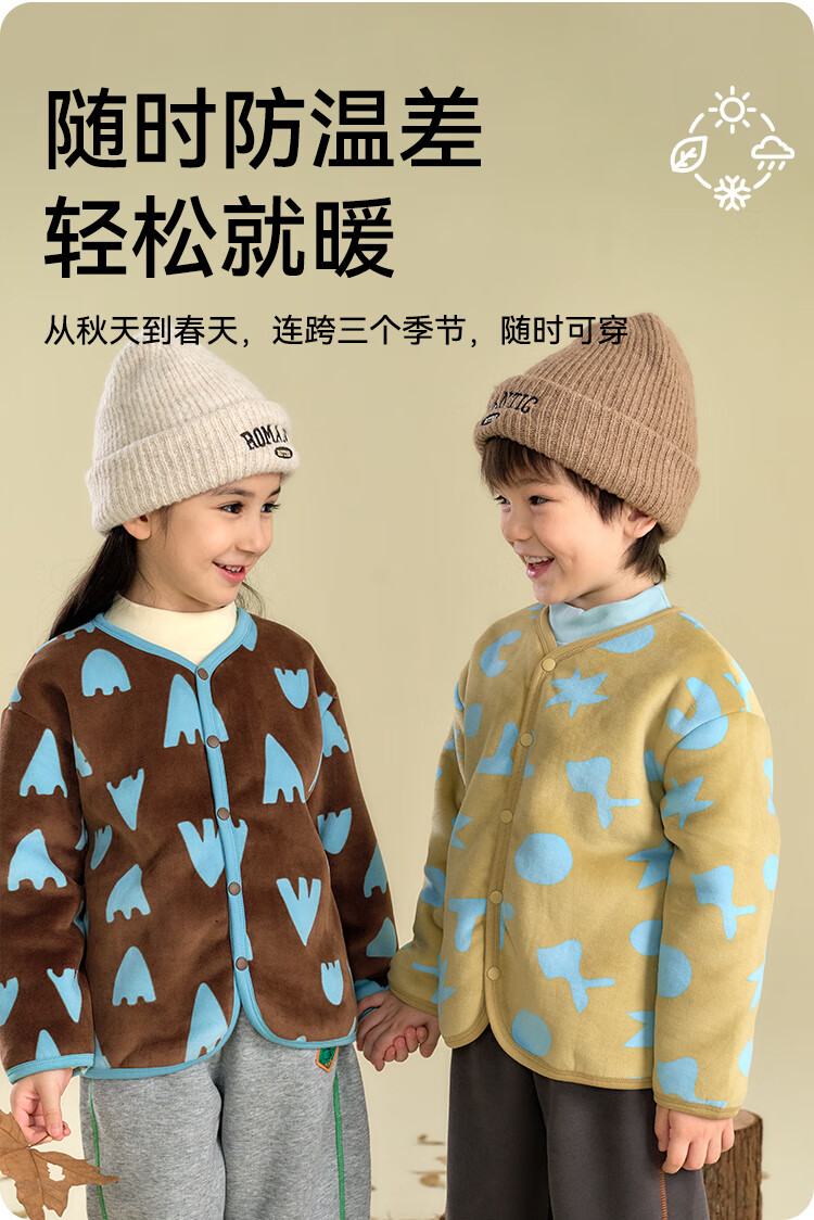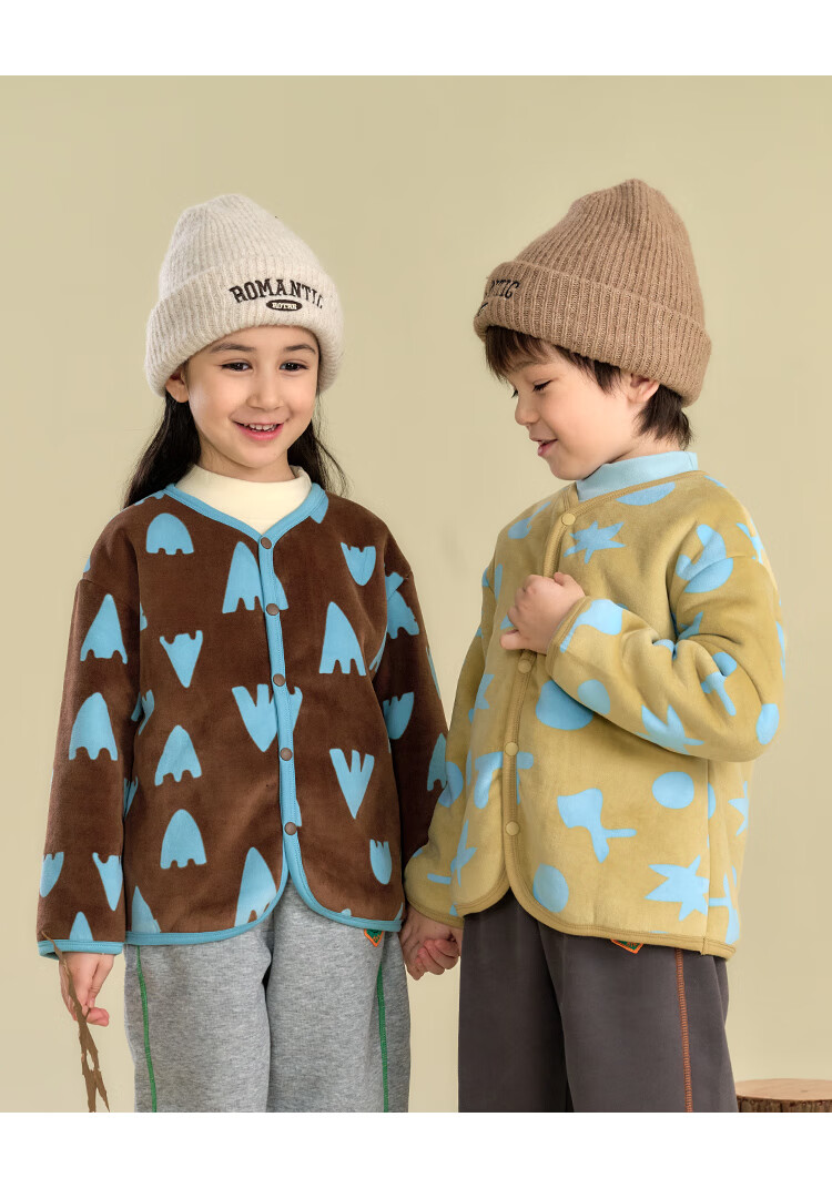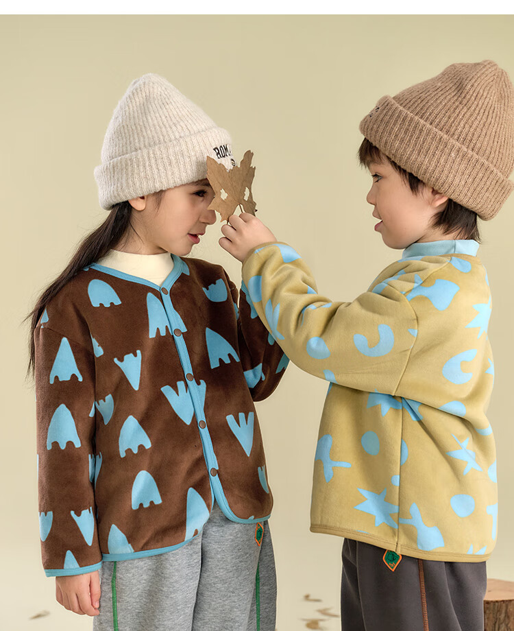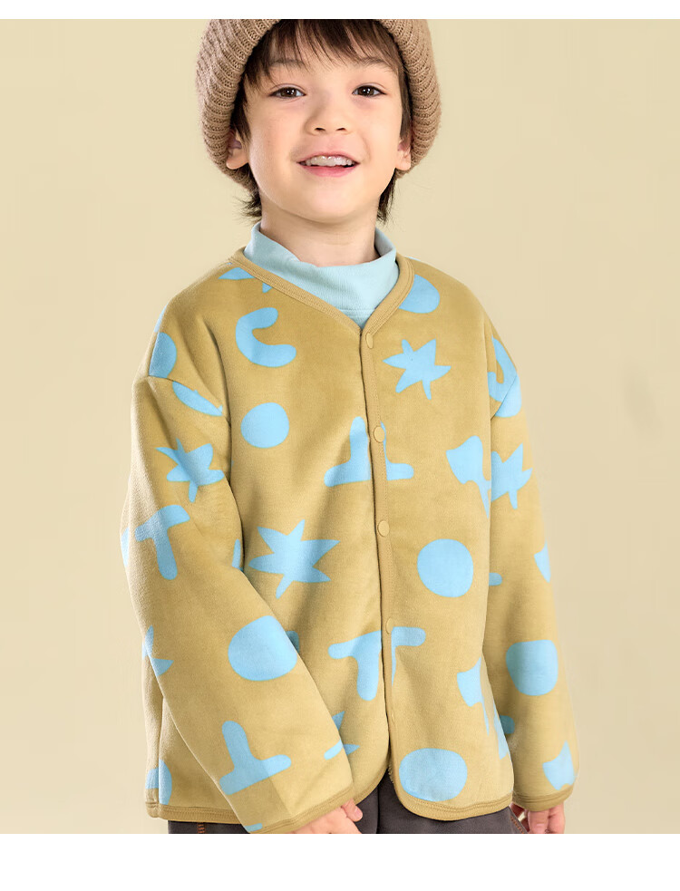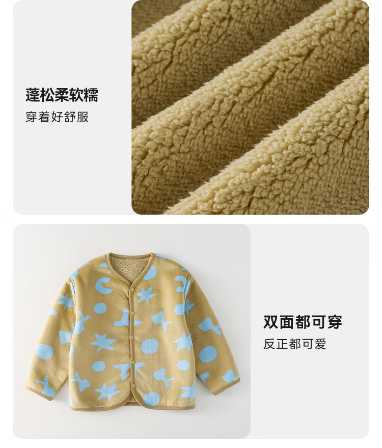 棉花堂【不易起球】童装儿童双面穿外套秋冬开衫男童女童连帽上衣xl 趣味几何 100