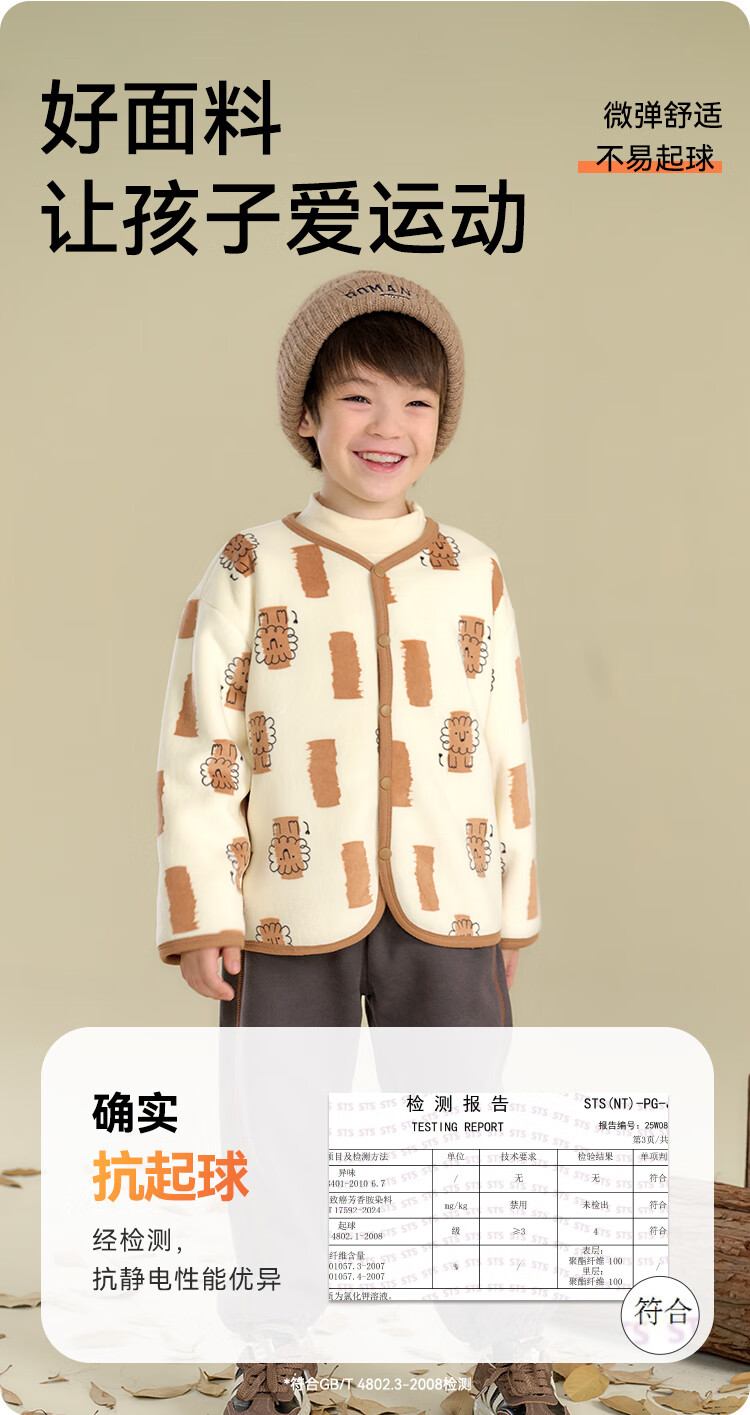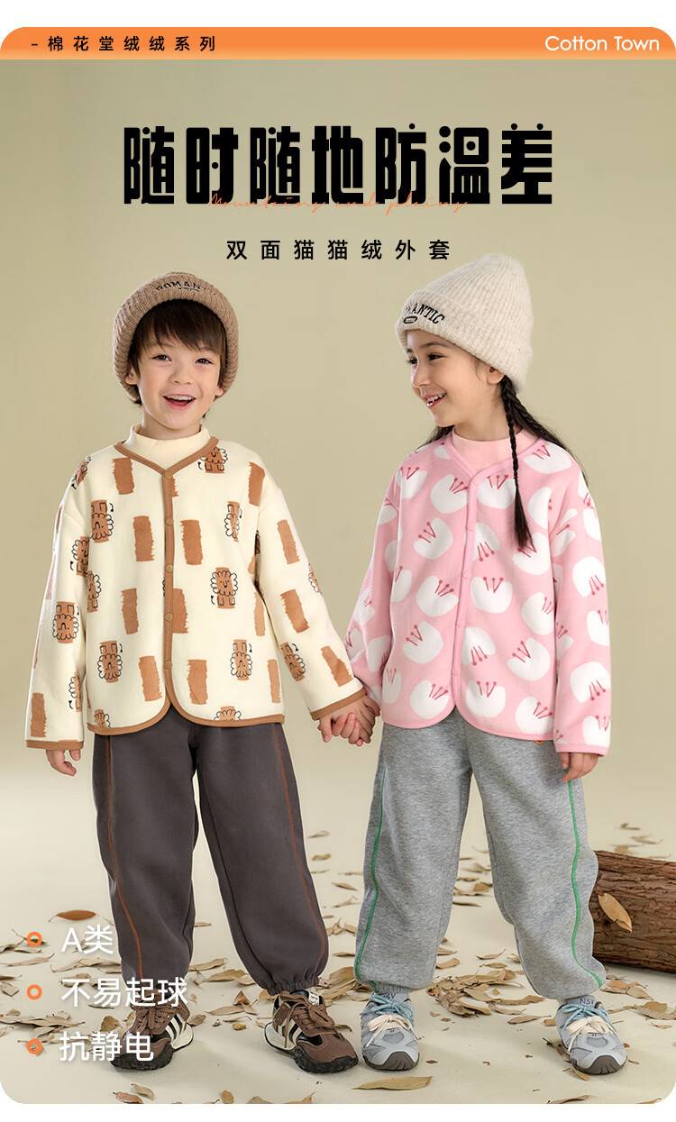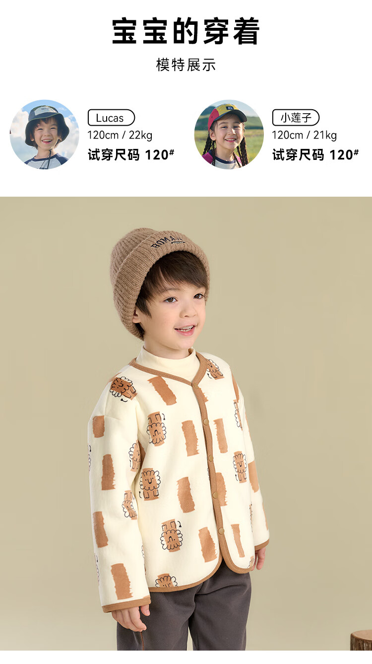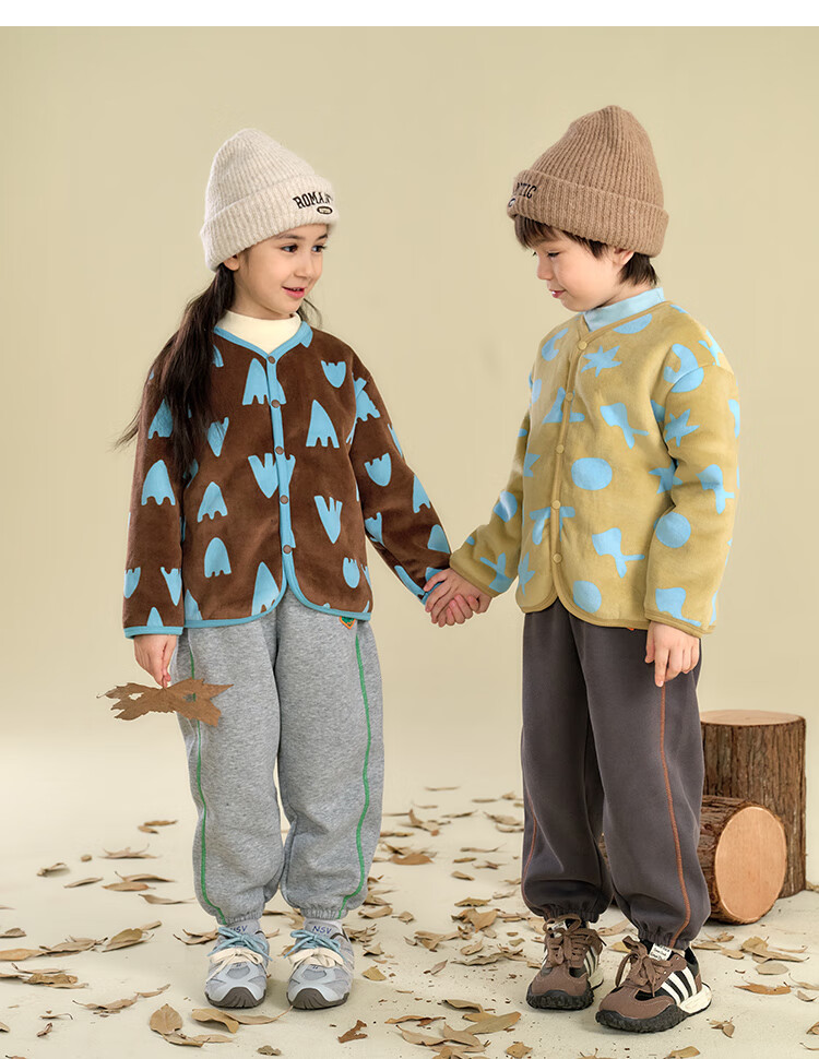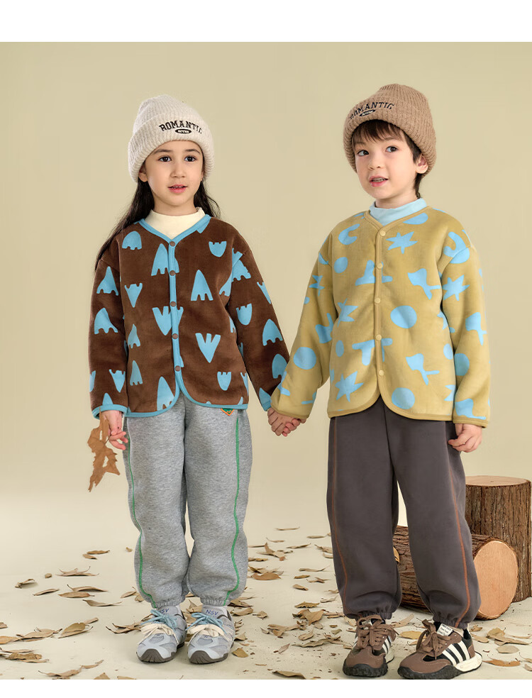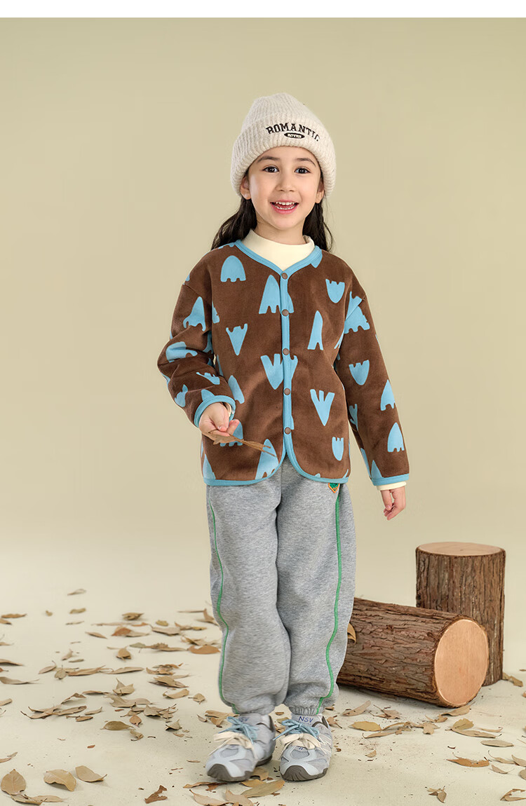 棉花堂【不易起球】童装儿童双面穿外套秋冬开衫男童女童连帽上衣xl 趣味几何 100