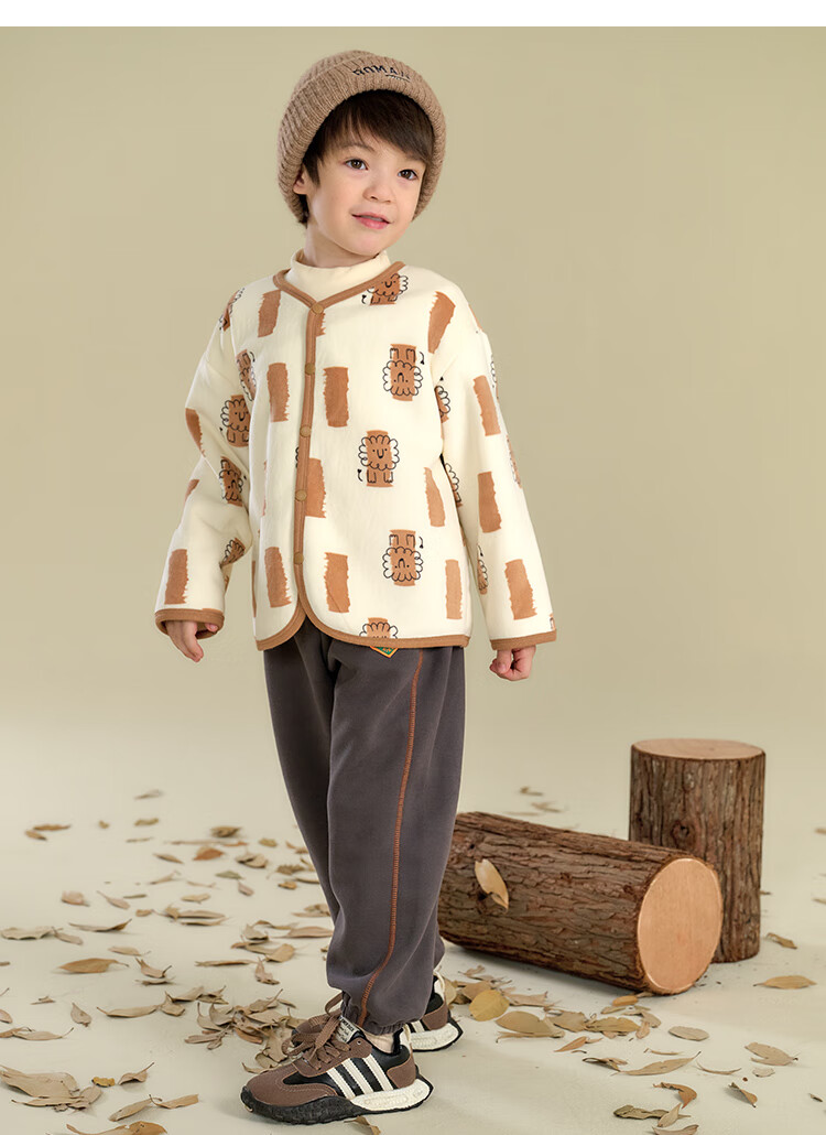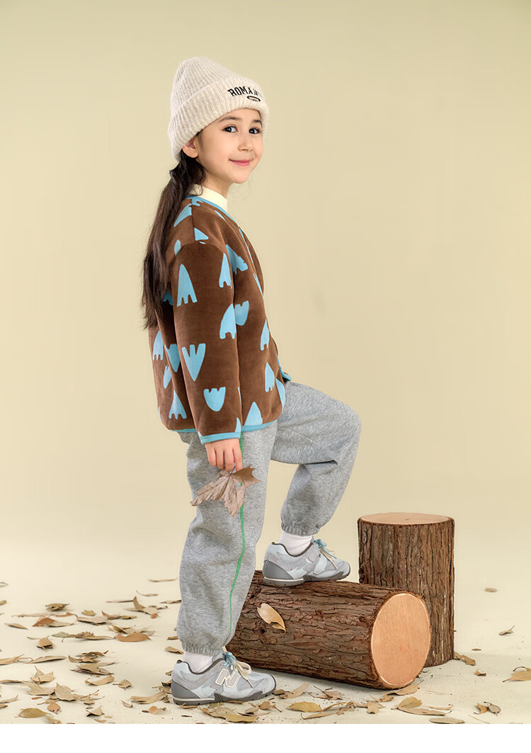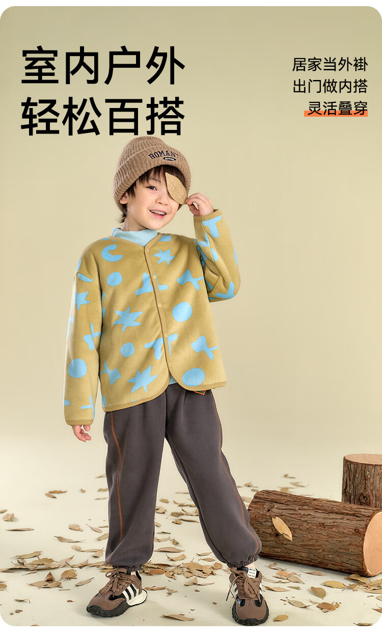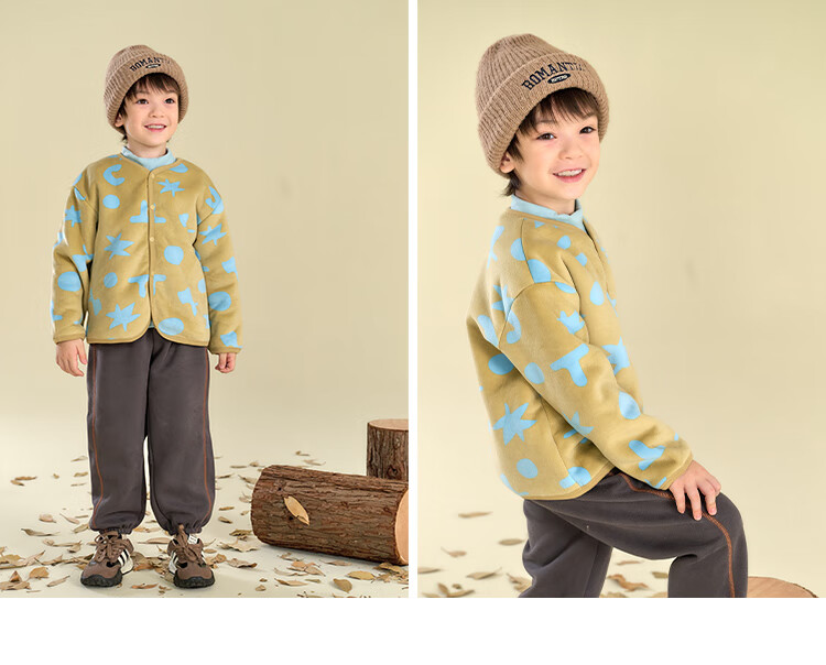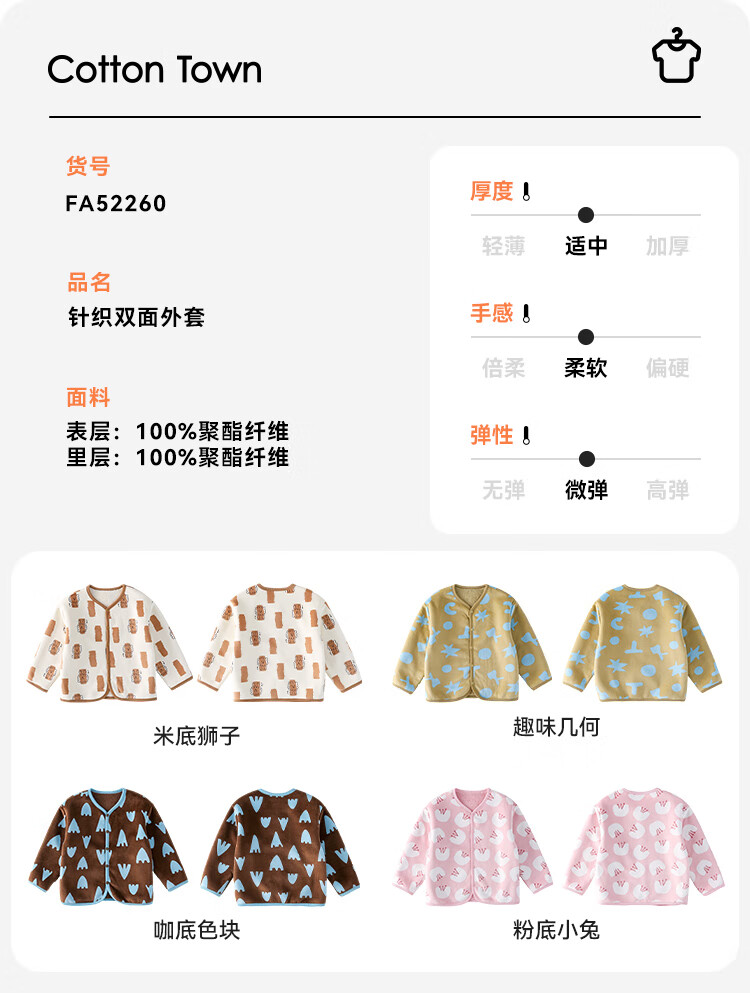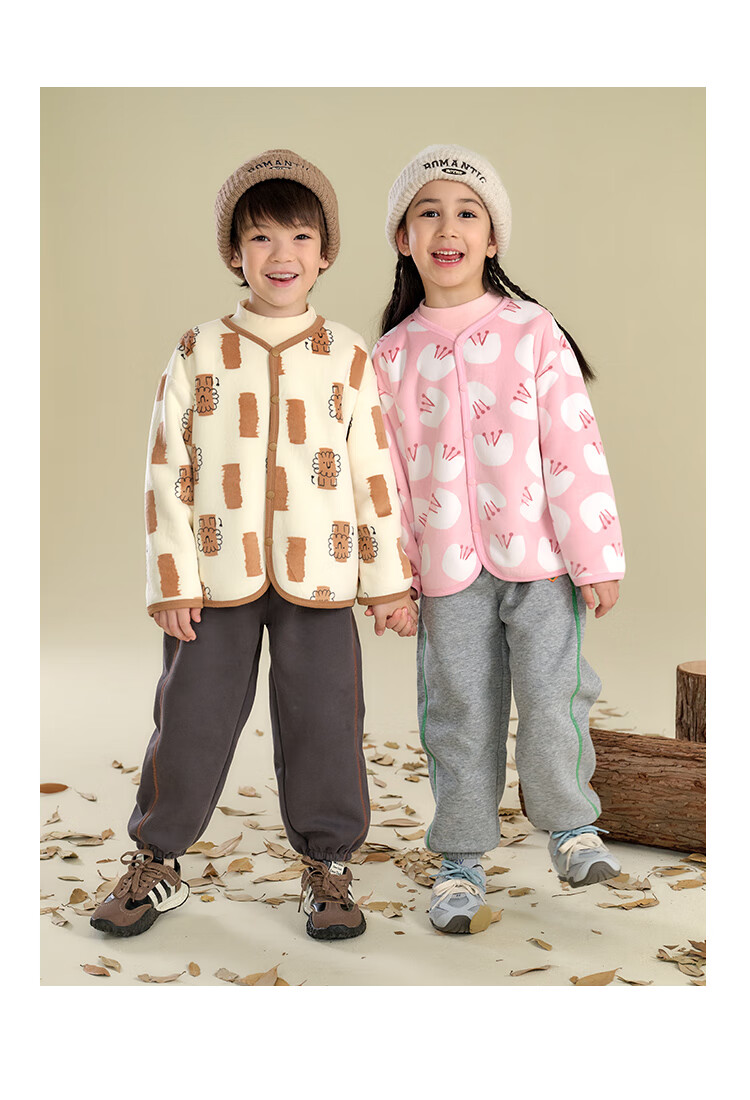 棉花堂【不易起球】童装儿童双面穿外套秋冬开衫男童女童连帽上衣xl 趣味几何 100