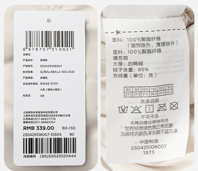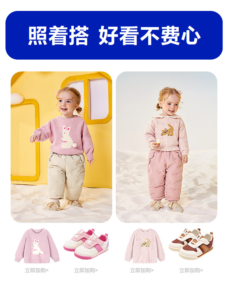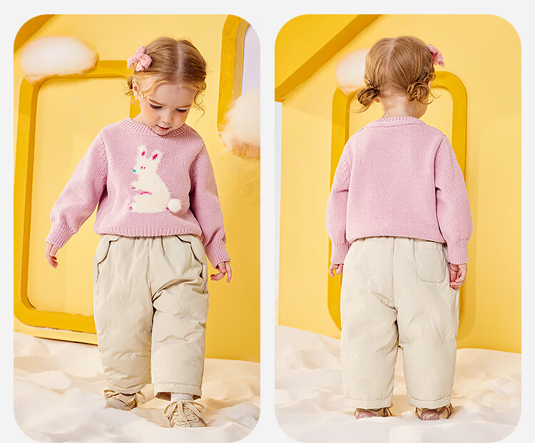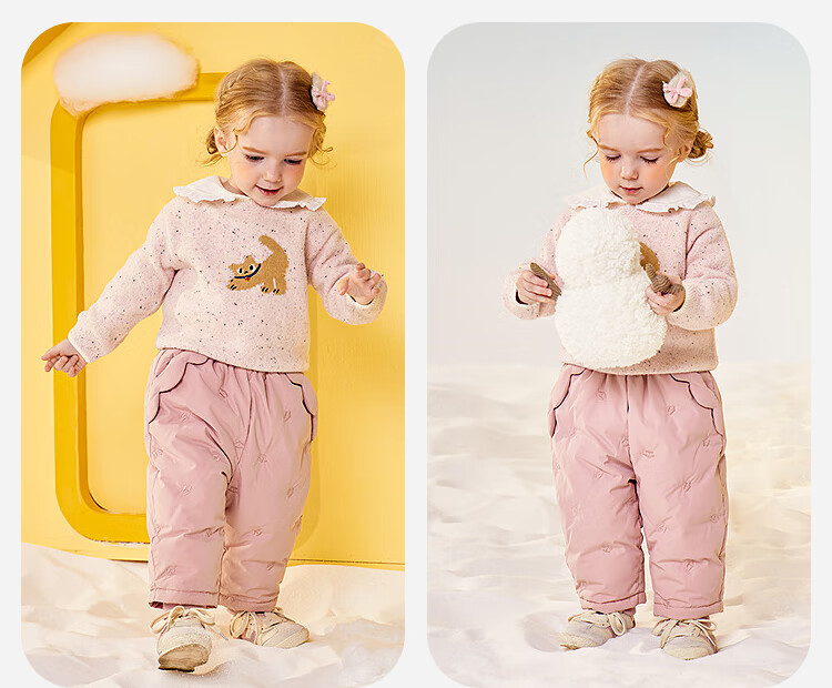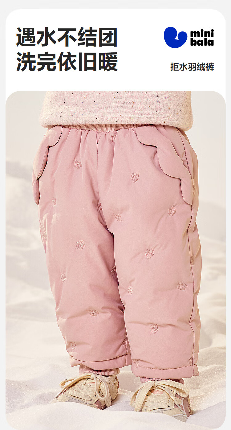 迷你巴拉(minibala)【迷你真心绒】迷你巴拉巴拉男女童宝宝裤子2025冬新品拒水羽绒裤 橡皮粉61228 90