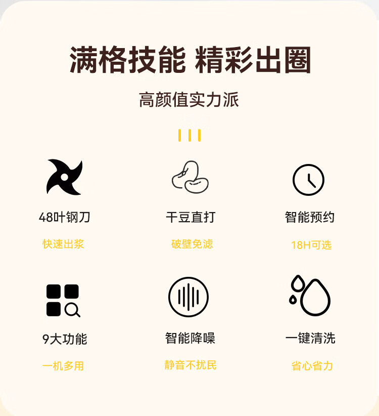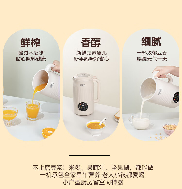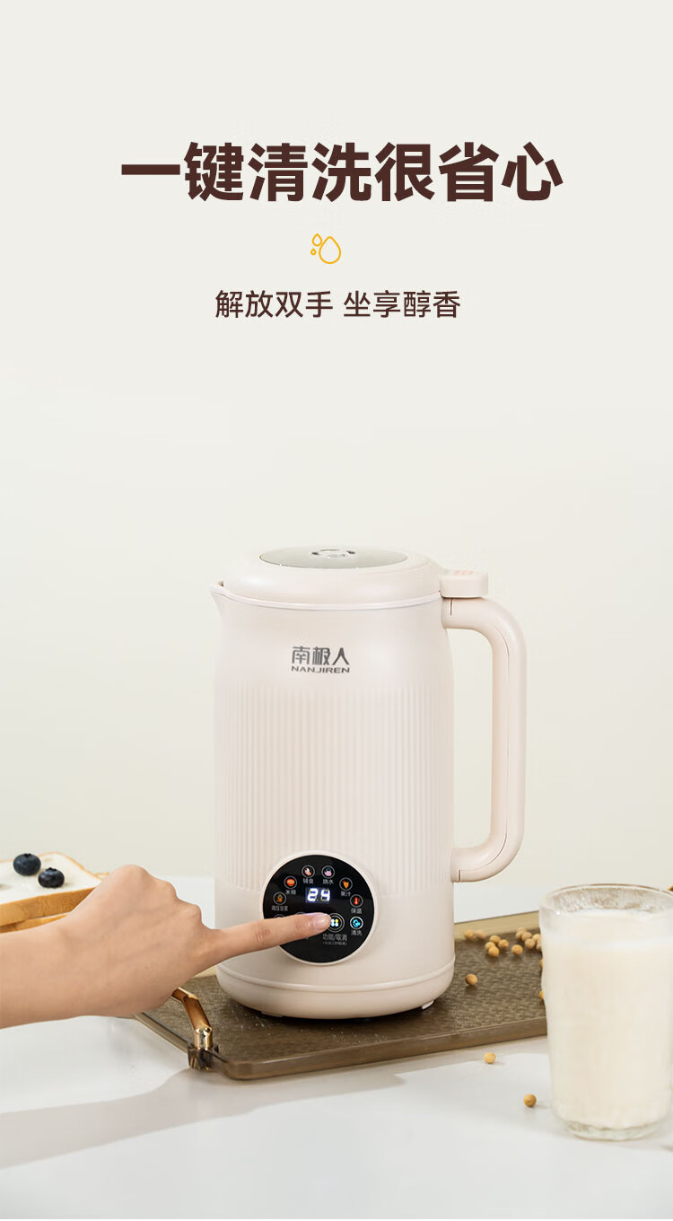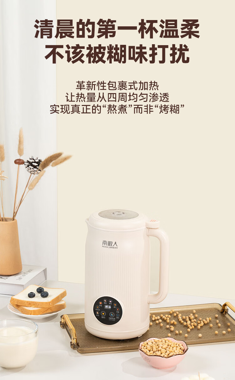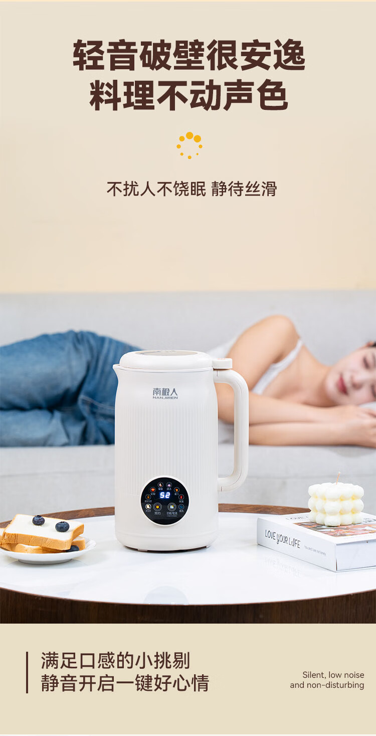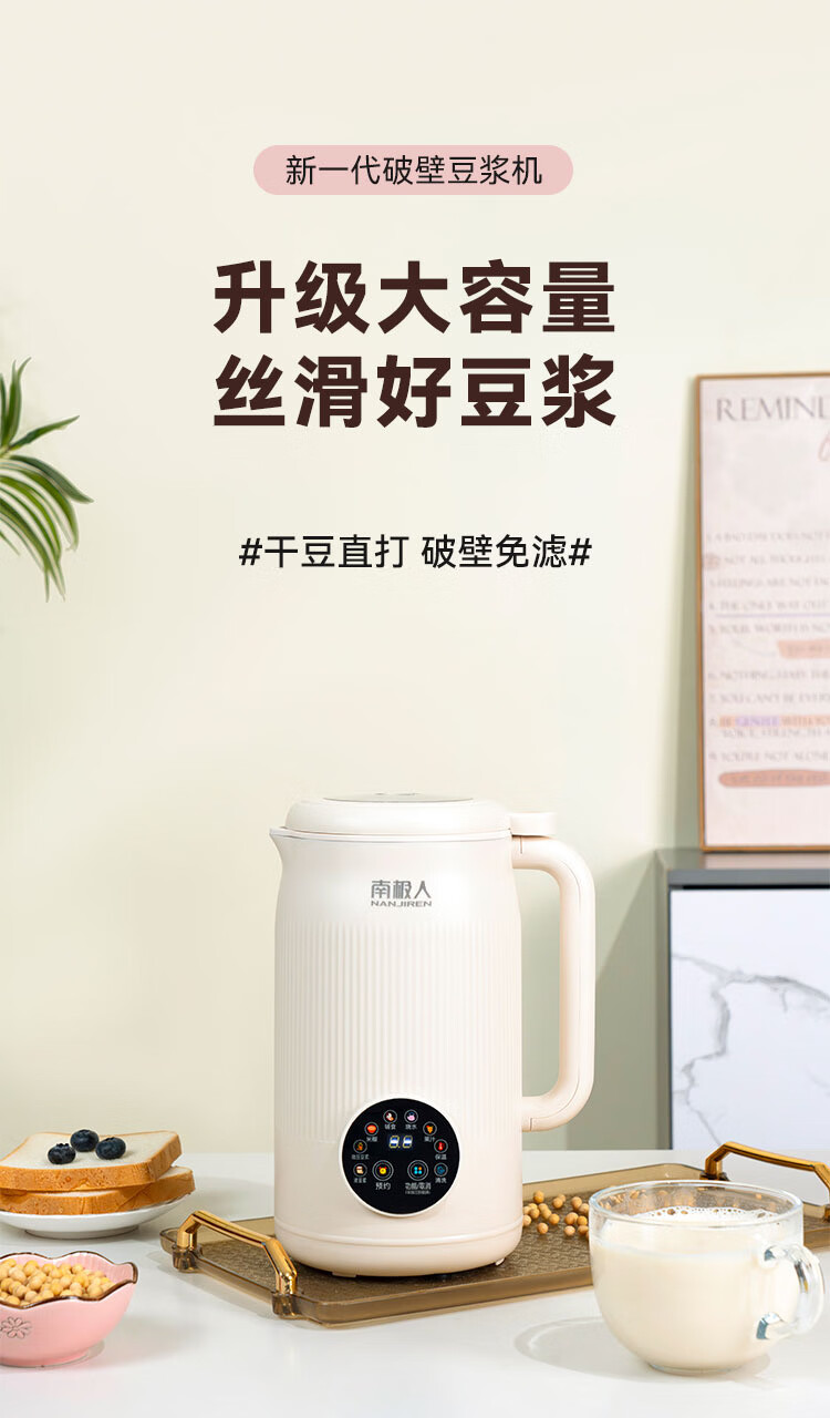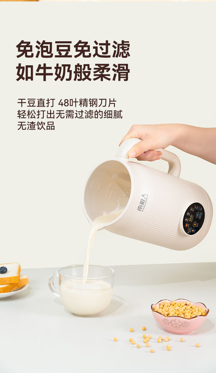 Nanjiren Sojamilchmaschine, wandbrechend, Haushalt, vollautomatisch, große Kapazität, multifunktionales Kochen, Entsaften, intelligenter Termin, kein Kochen, kein Einweichen, Filtern, verbessertes Anti-Pasten-Material, leicht zu reinigen, 48-Blatt-Messer Sojamilchmaschine 1L