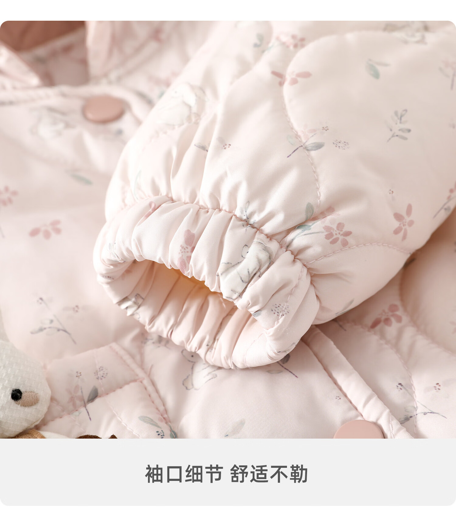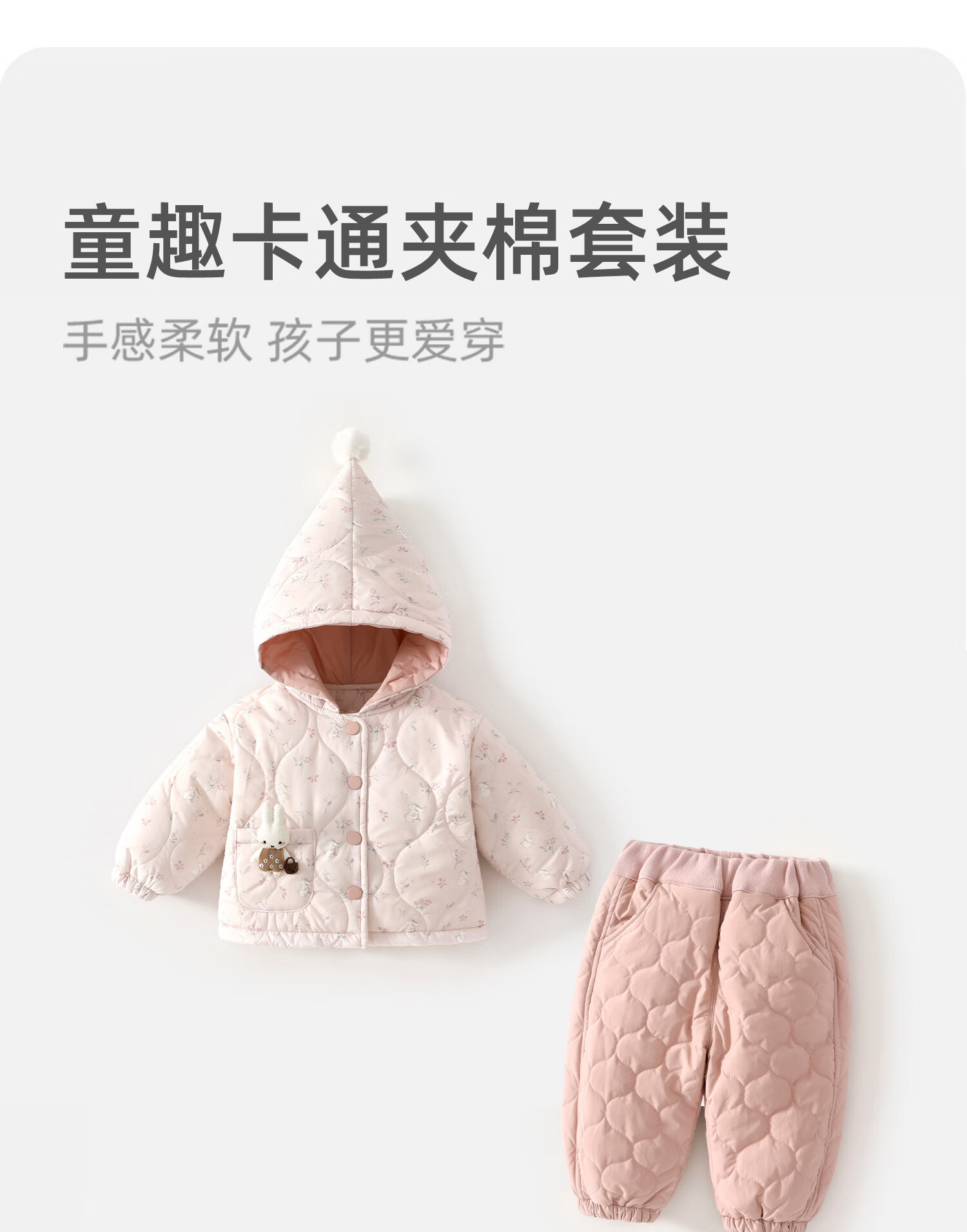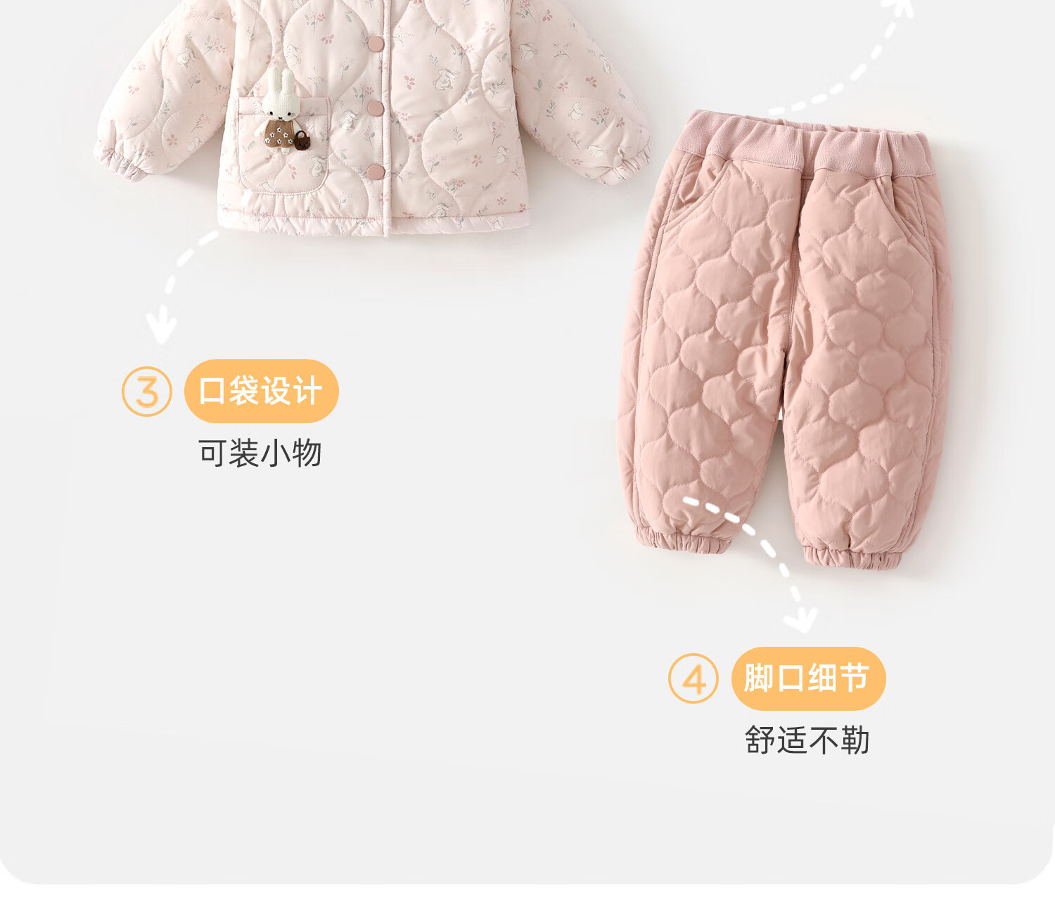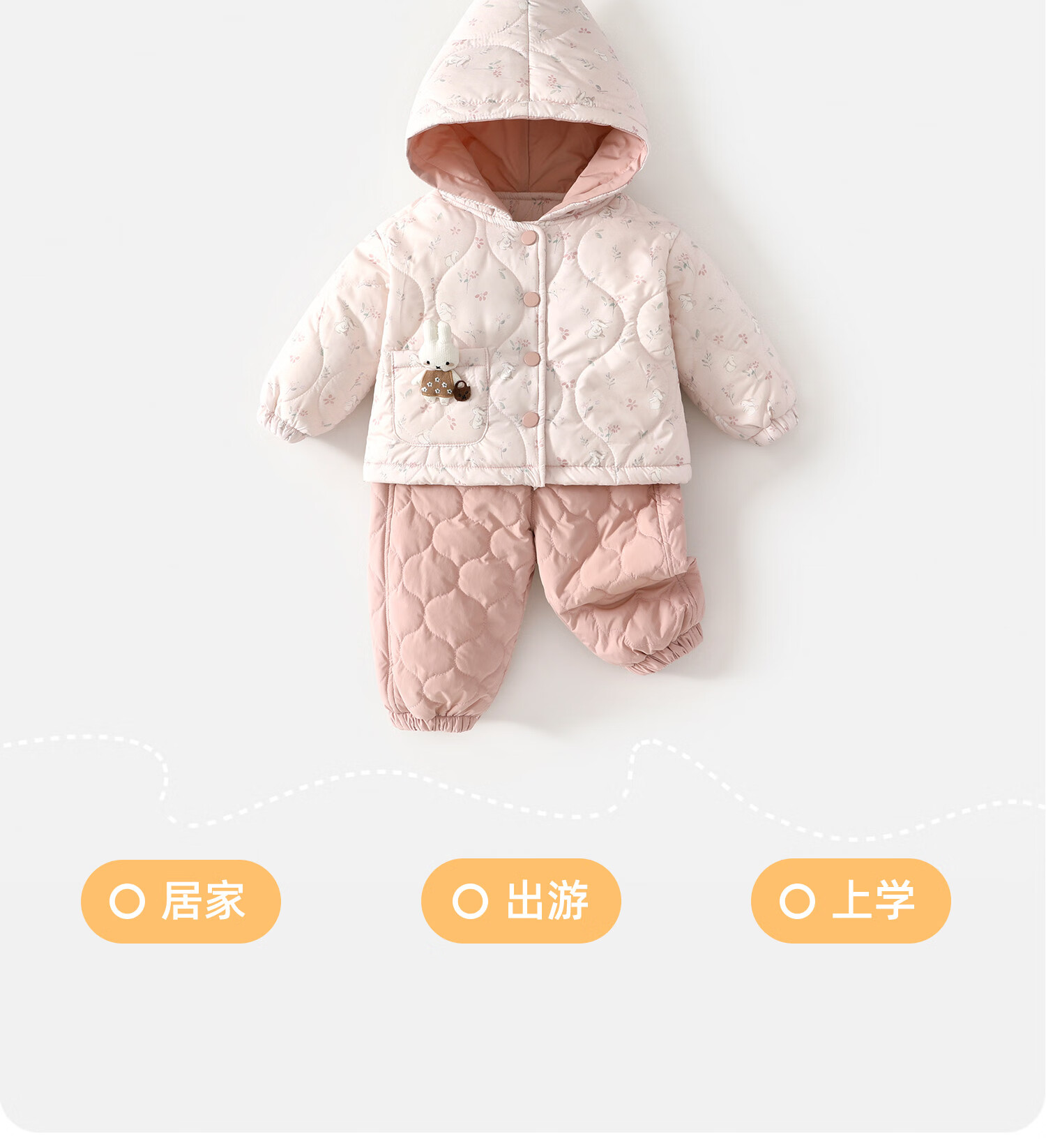 班喜迪女童套装秋冬装2025新款儿童外套裤子婴儿加绒夹棉衣服冬季小童装 粉色 80
