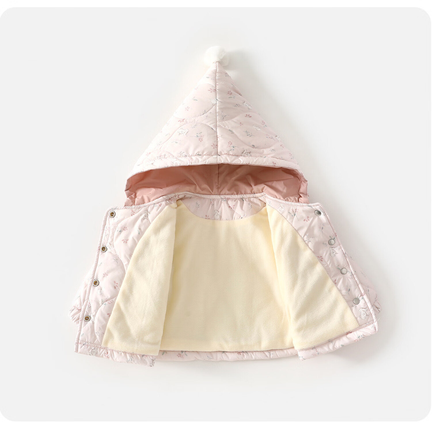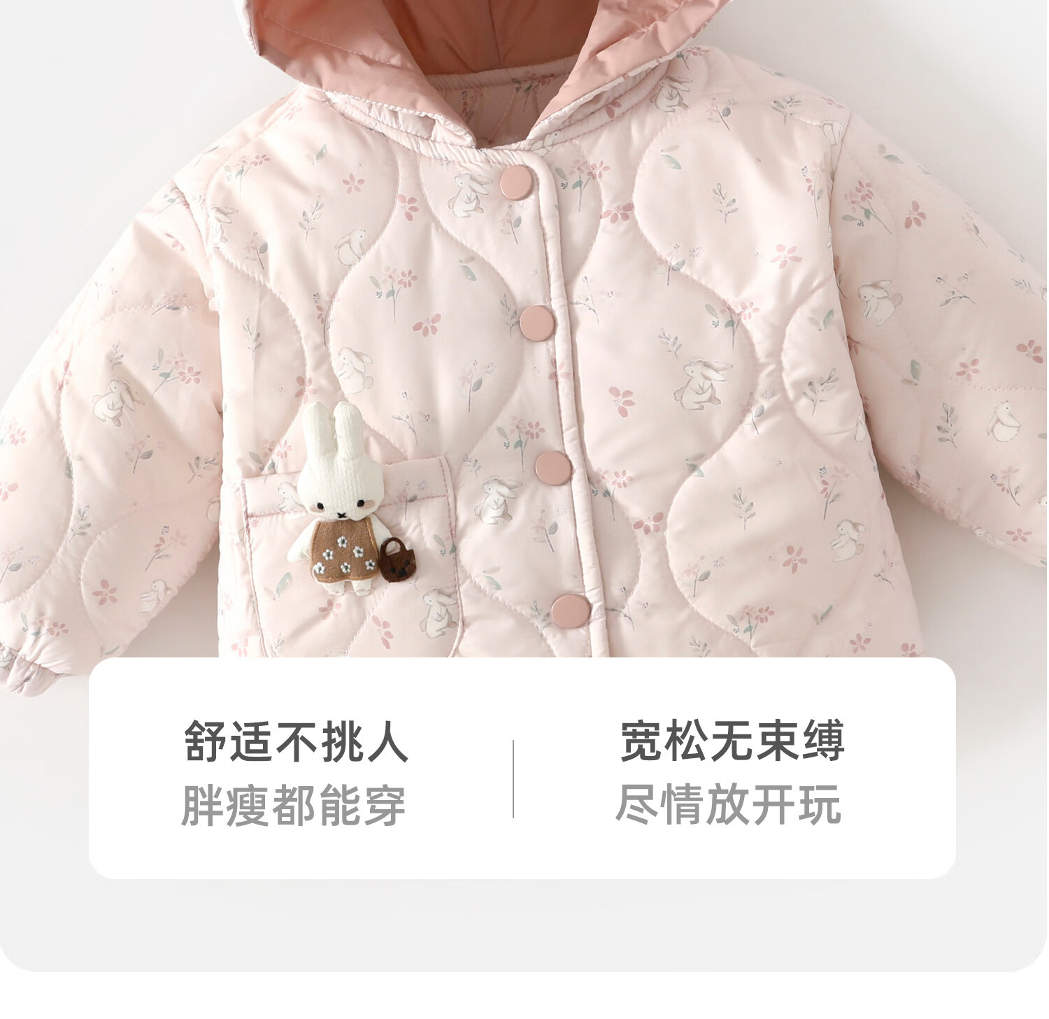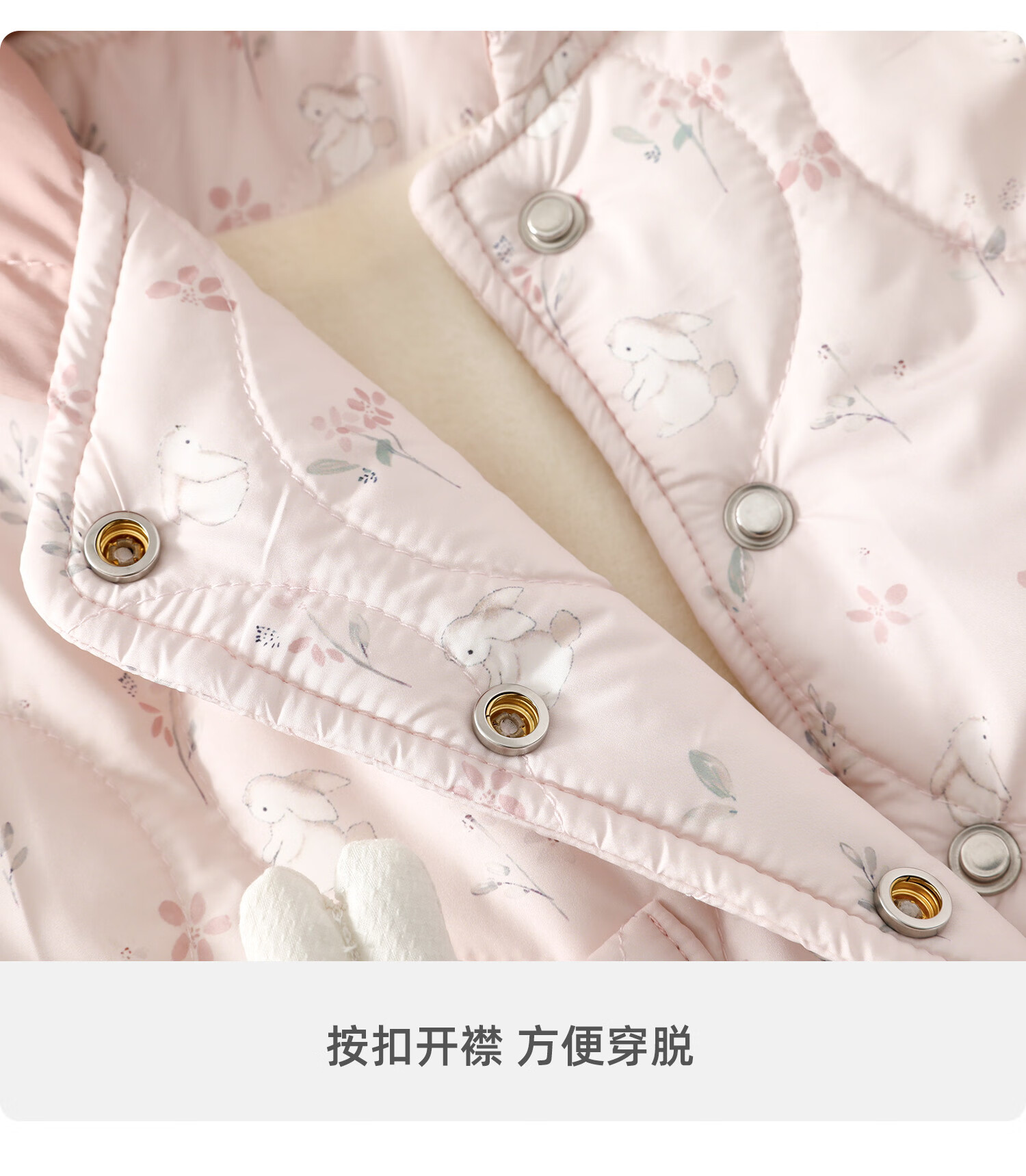 班喜迪女童套装秋冬装2025新款儿童外套裤子婴儿加绒夹棉衣服冬季小童装 粉色 80