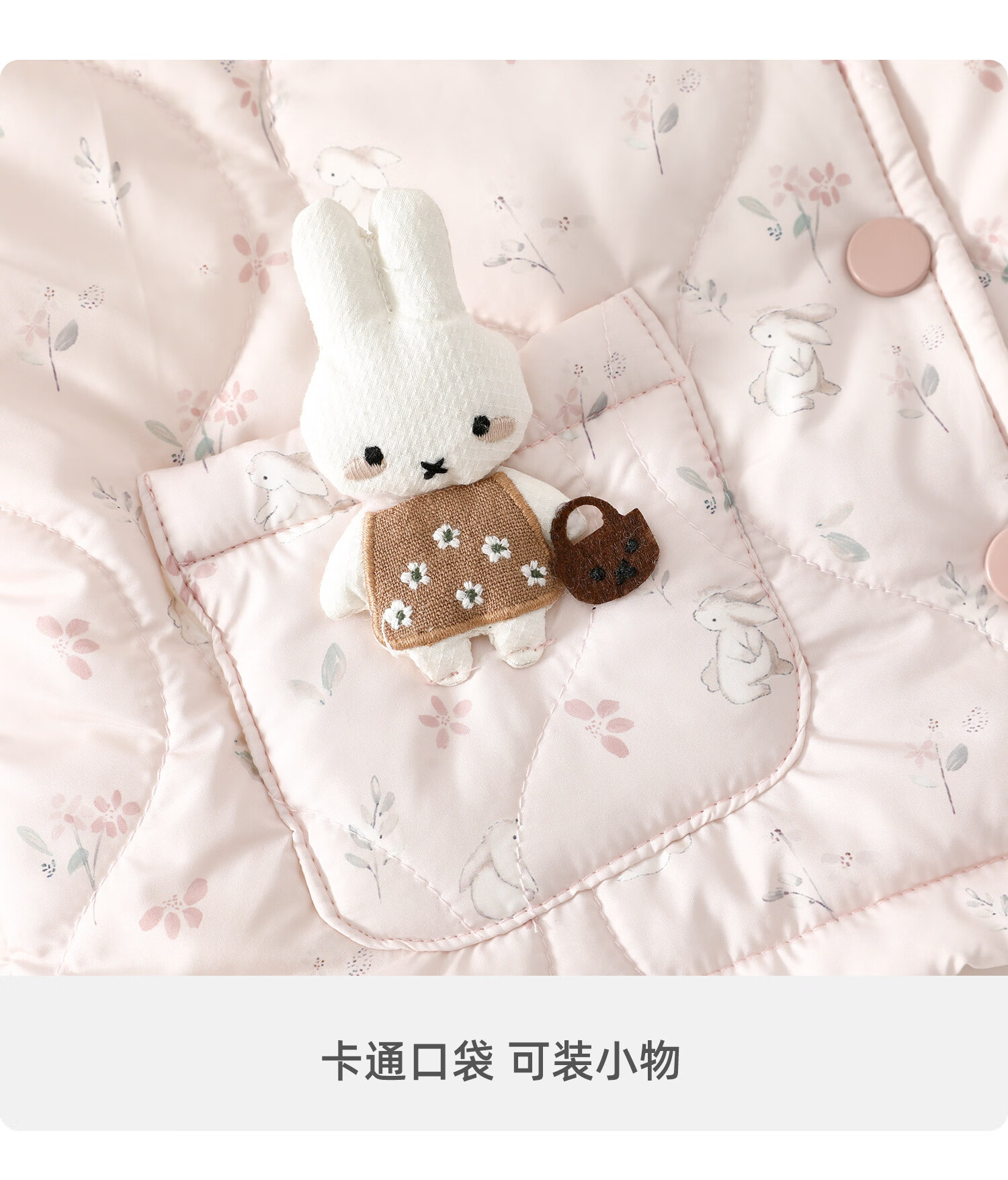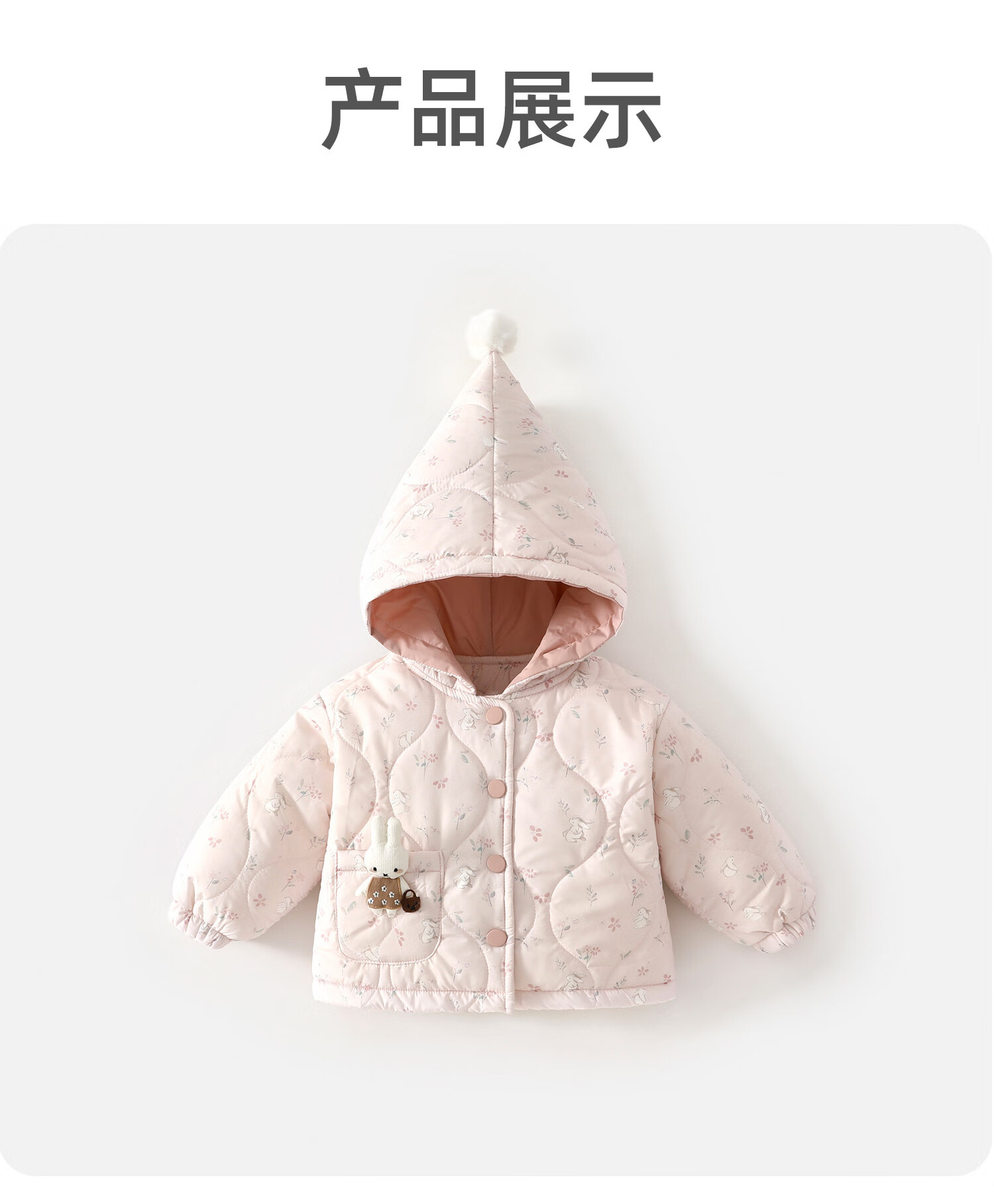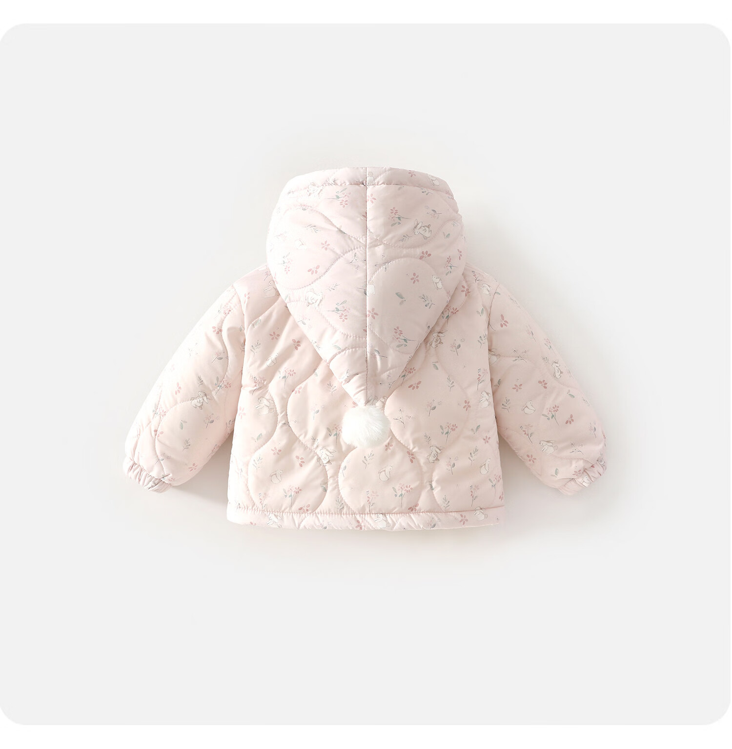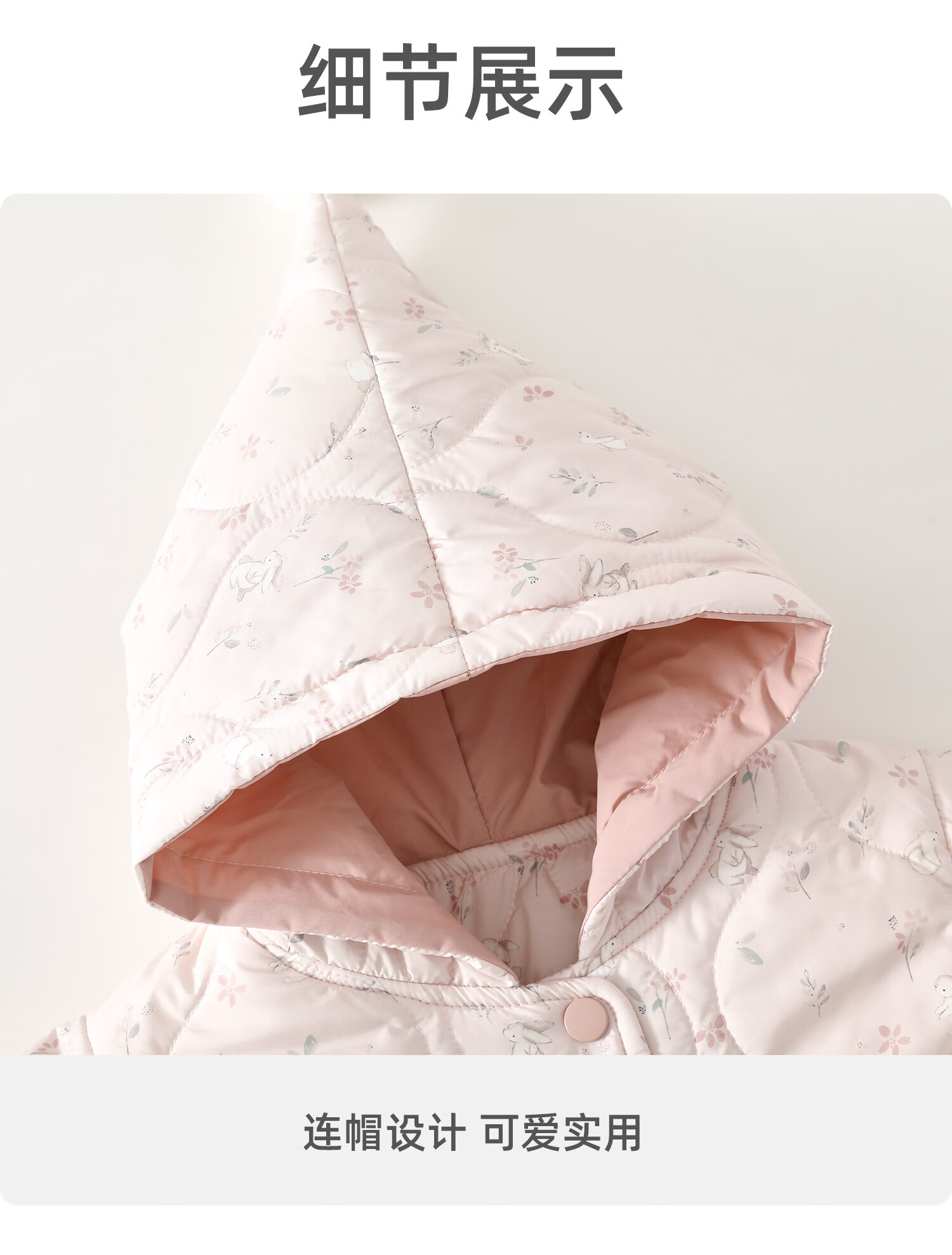 班喜迪女童套装秋冬装2025新款儿童外套裤子婴儿加绒夹棉衣服冬季小童装 粉色 80