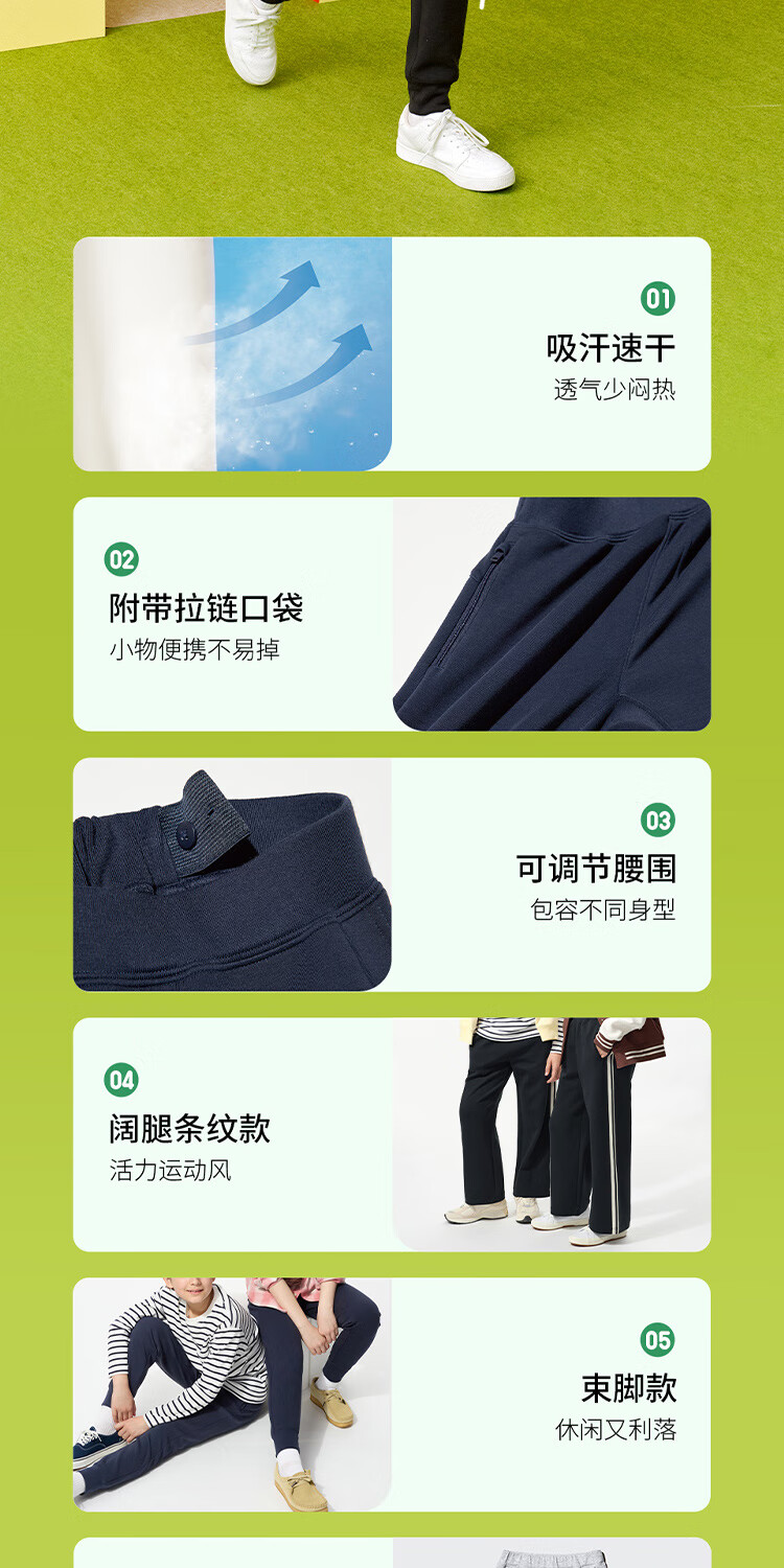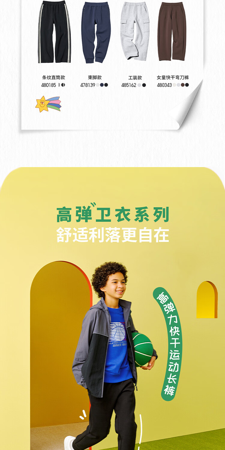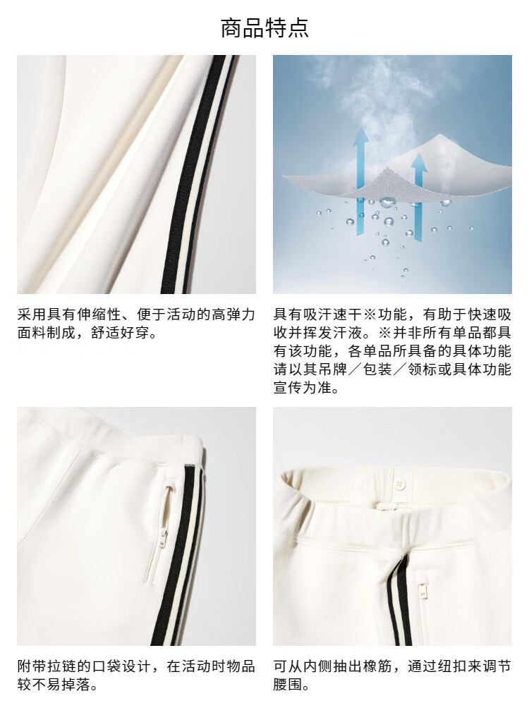 优衣库童装男童女童高弹力快干运动直筒裤阔腿裤子480185 01 乳白色 120