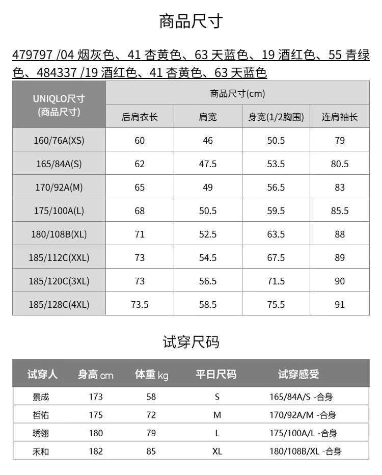 China (cm) 160-165/84-86 165-170 / 88-90 167-172 / 92-96 168-173 / 98-102 170-176 / 106-110