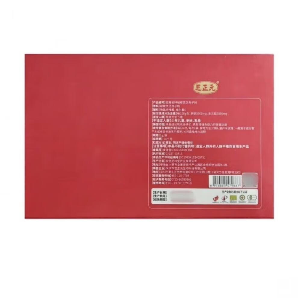芝正元灵芝孢子粉 有机破壁赤灵芝孢子粉1g/袋*60 芝正元破壁灵芝孢子粉一盒60袋