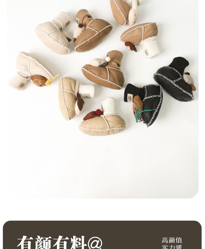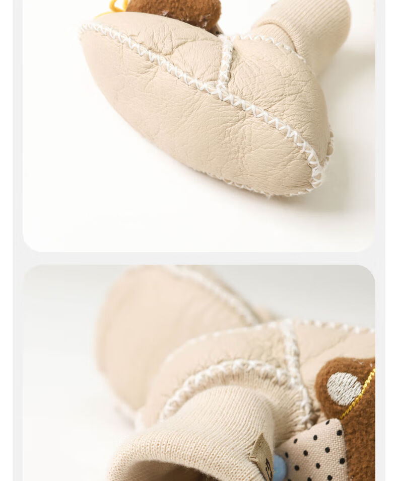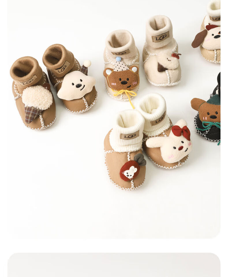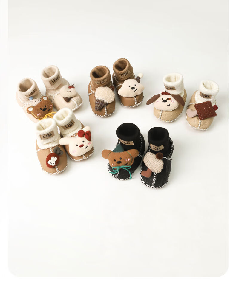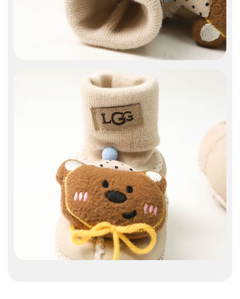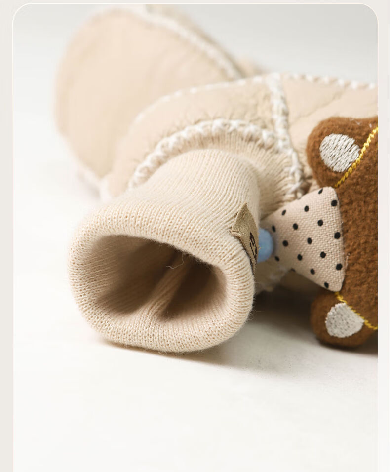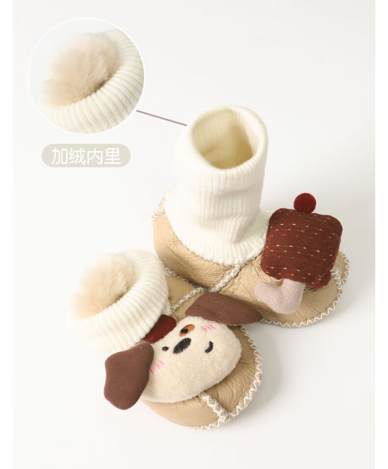 婴儿鞋子冬季宝宝加厚步前鞋新生儿外出防滑鞋袜女宝卡通保暖棉鞋 黄毛线结咖小熊 12