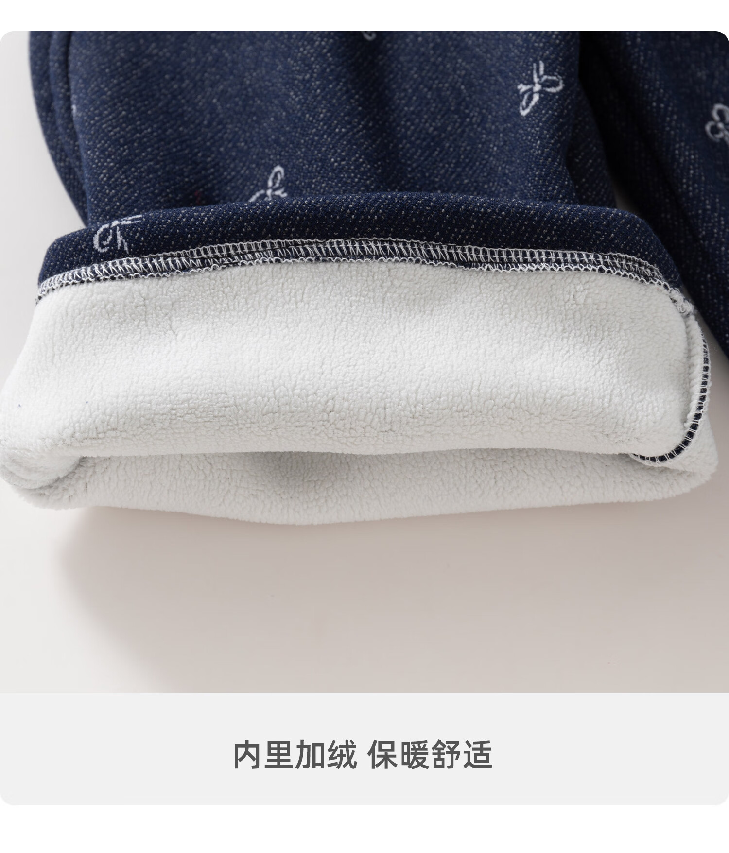 Banxidi Girls' Pants Autumn and Winter 2025 New Style Baby Plush Casual Pants Winter Clothes Children's Straight Jeans Blue 90