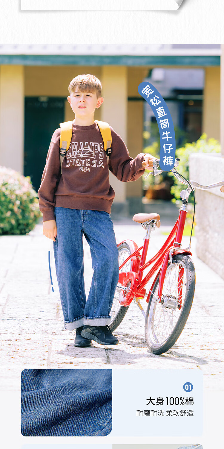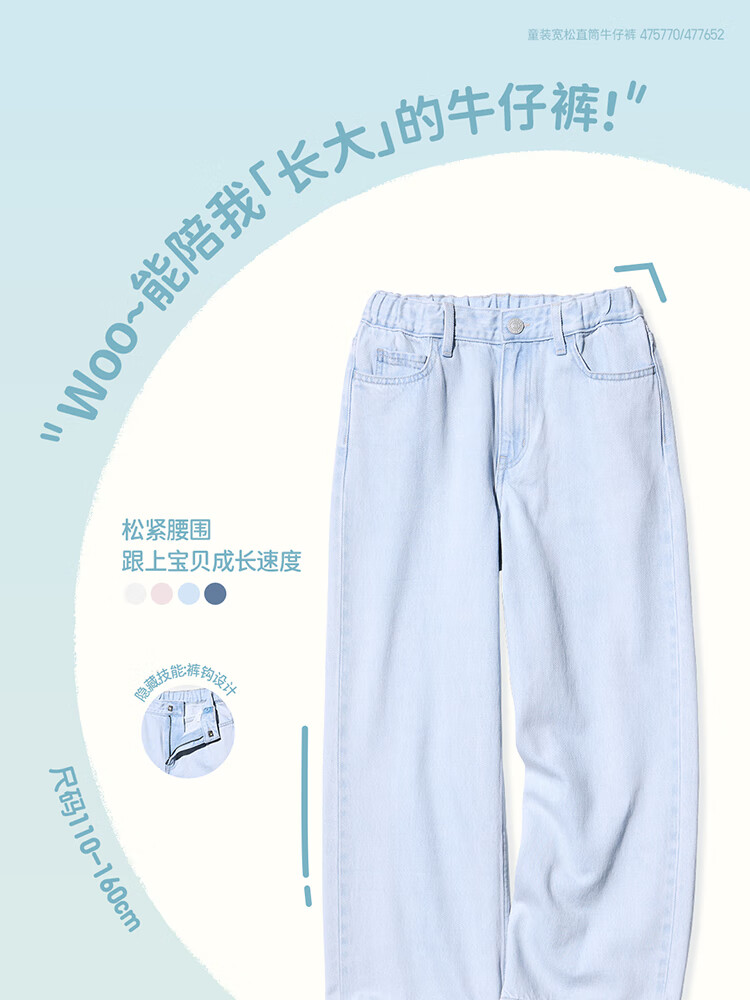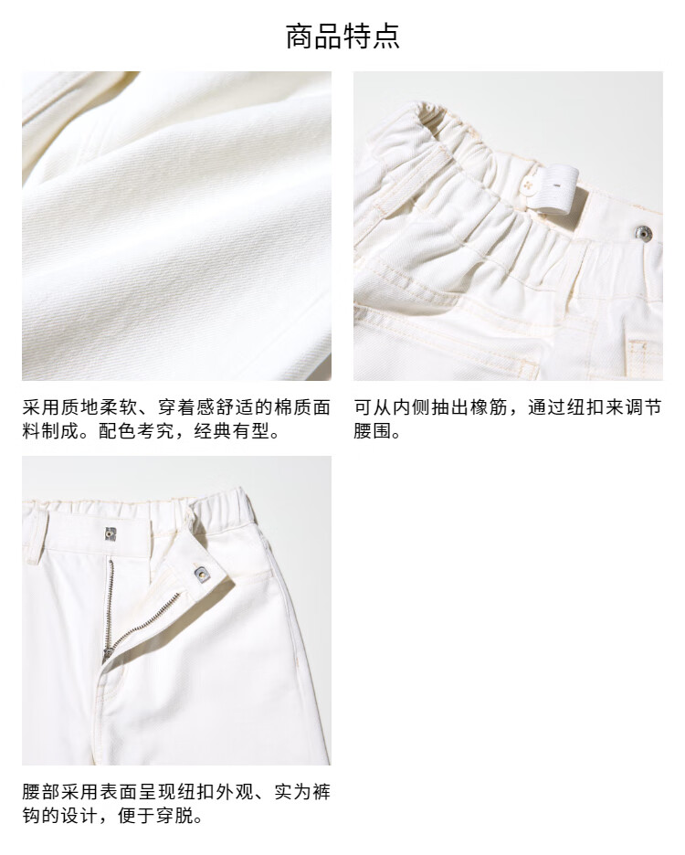 优衣库童装男童女童宽松直筒长裤拉链款477652 01 乳白色 130