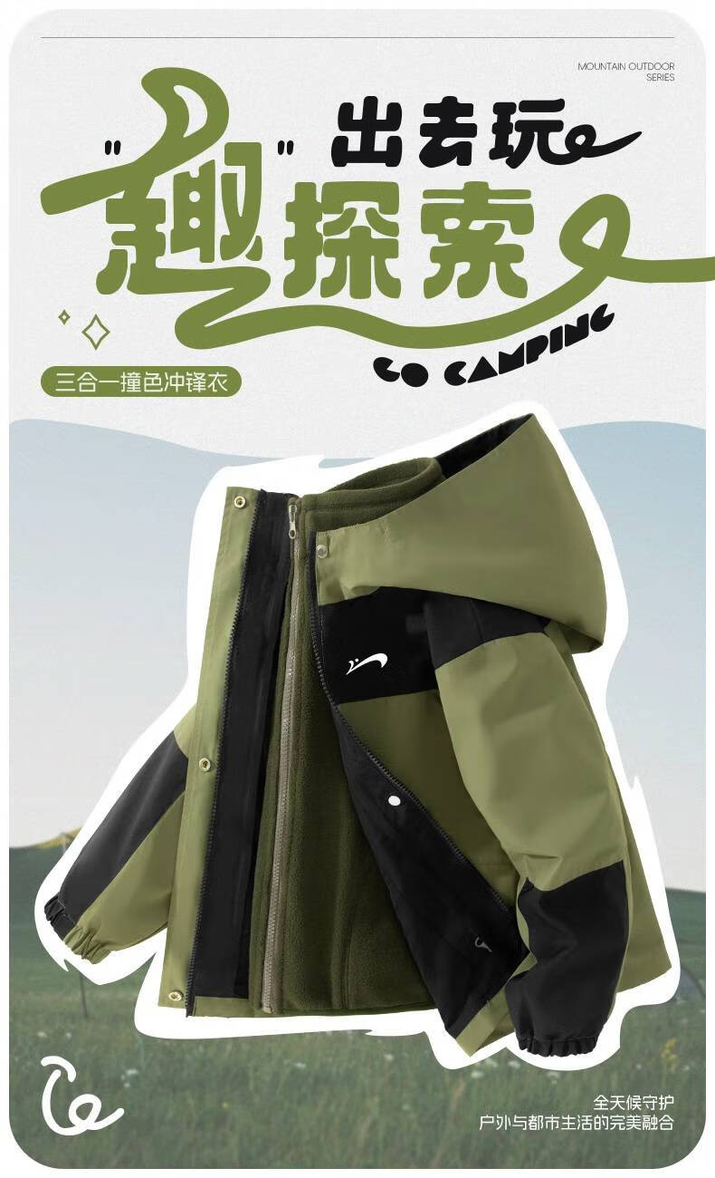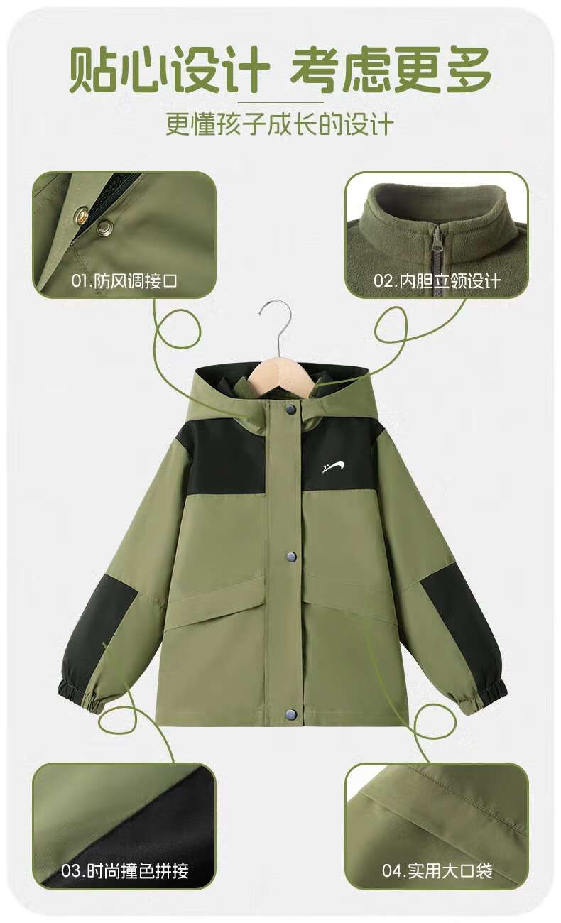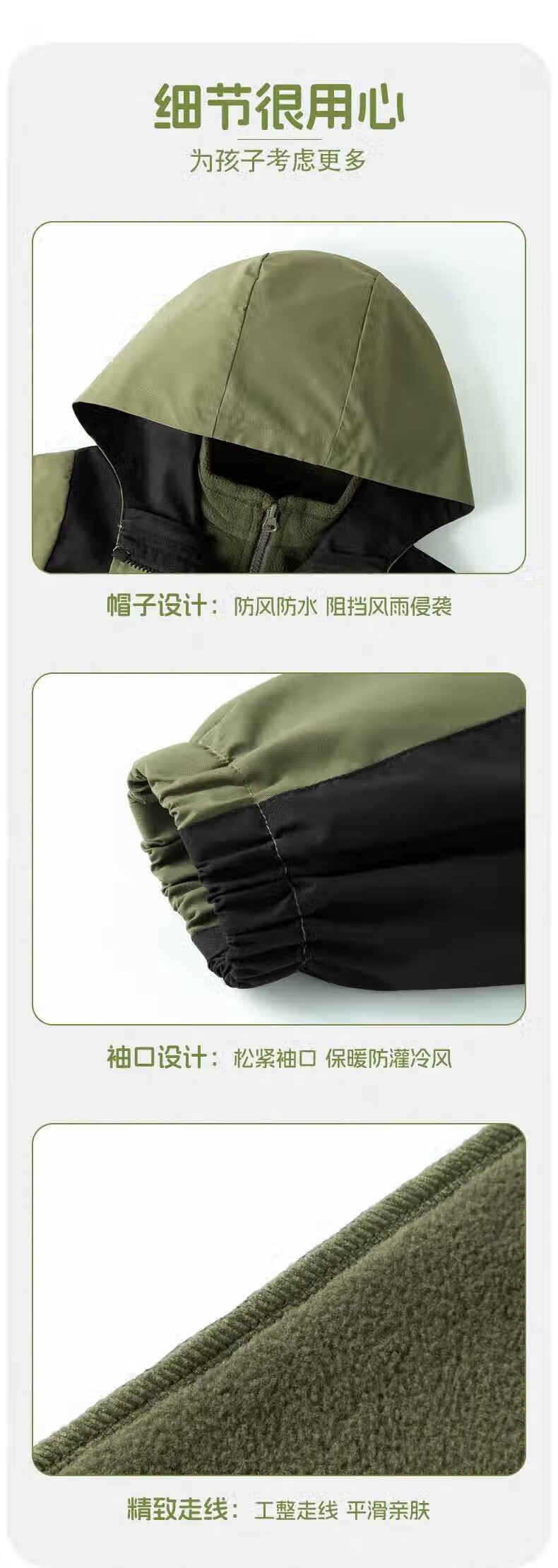 Guirenniao Vêtements pour enfants Veste Charge pour hommes, femmes et grands enfants Doublure amovible 3 en 1 pour garçons Automne et hiver Vêtements imperméables Doublure polaire en une seule pièce Noir 140