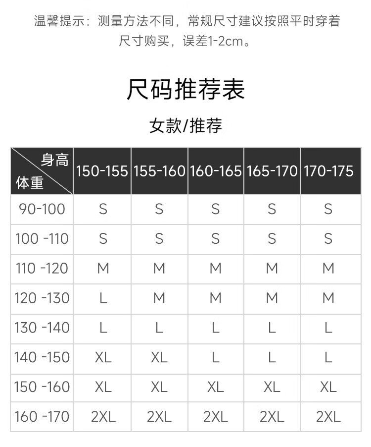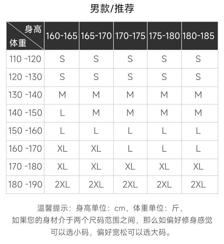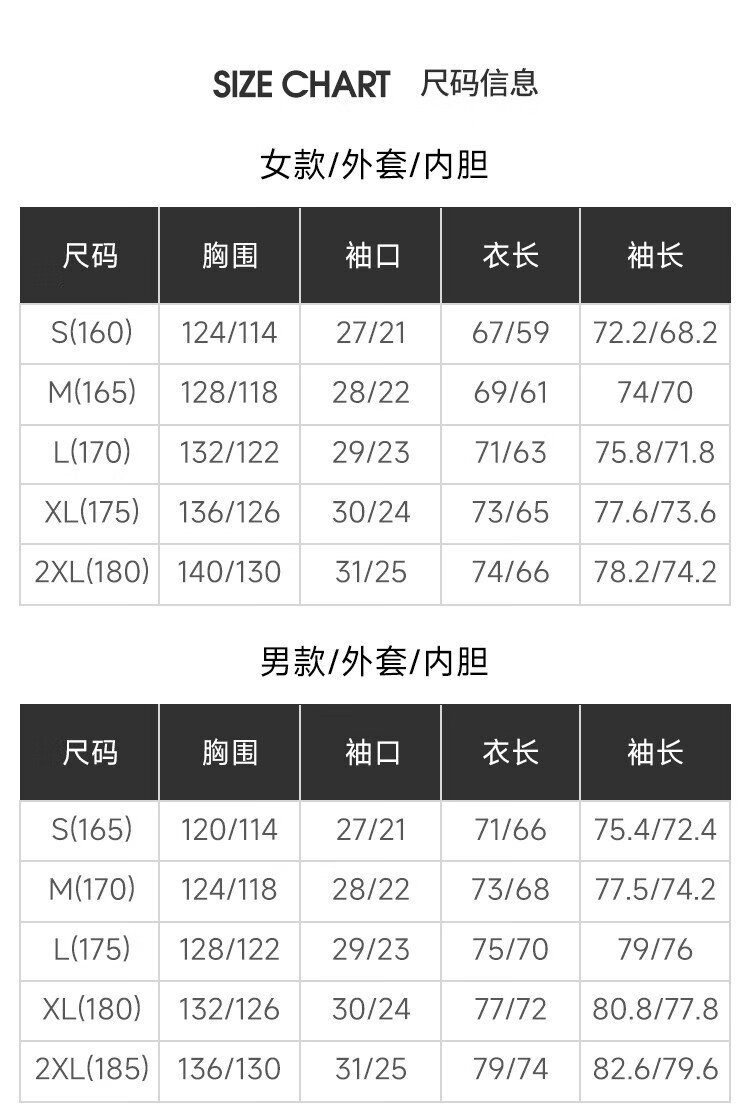 China (cm) 160-165/84-86 165-170 / 88-90 167-172 / 92-96 168-173 / 98-102 170-176 / 106-110