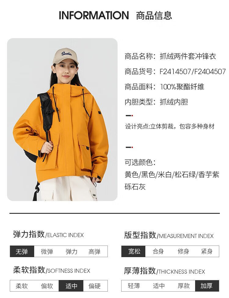 思凯乐(SCALER)户外运动抓绒内胆冲锋衣女三合一防风保暖外套厚 鼠尾草【抓绒三合一】拍小一码 M