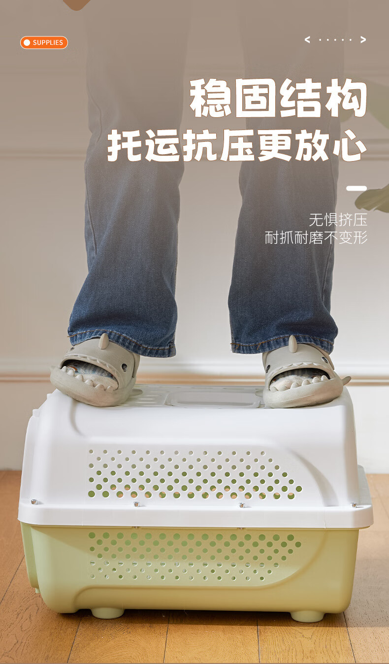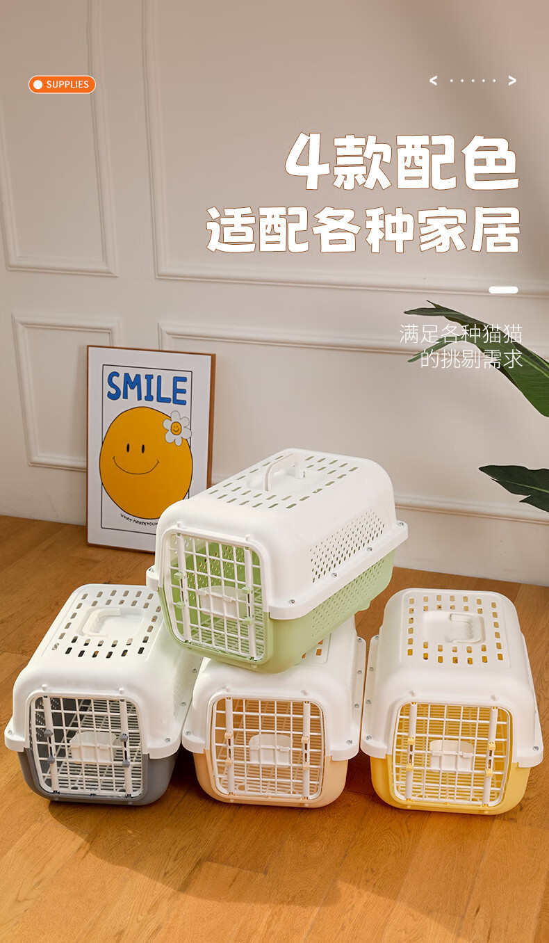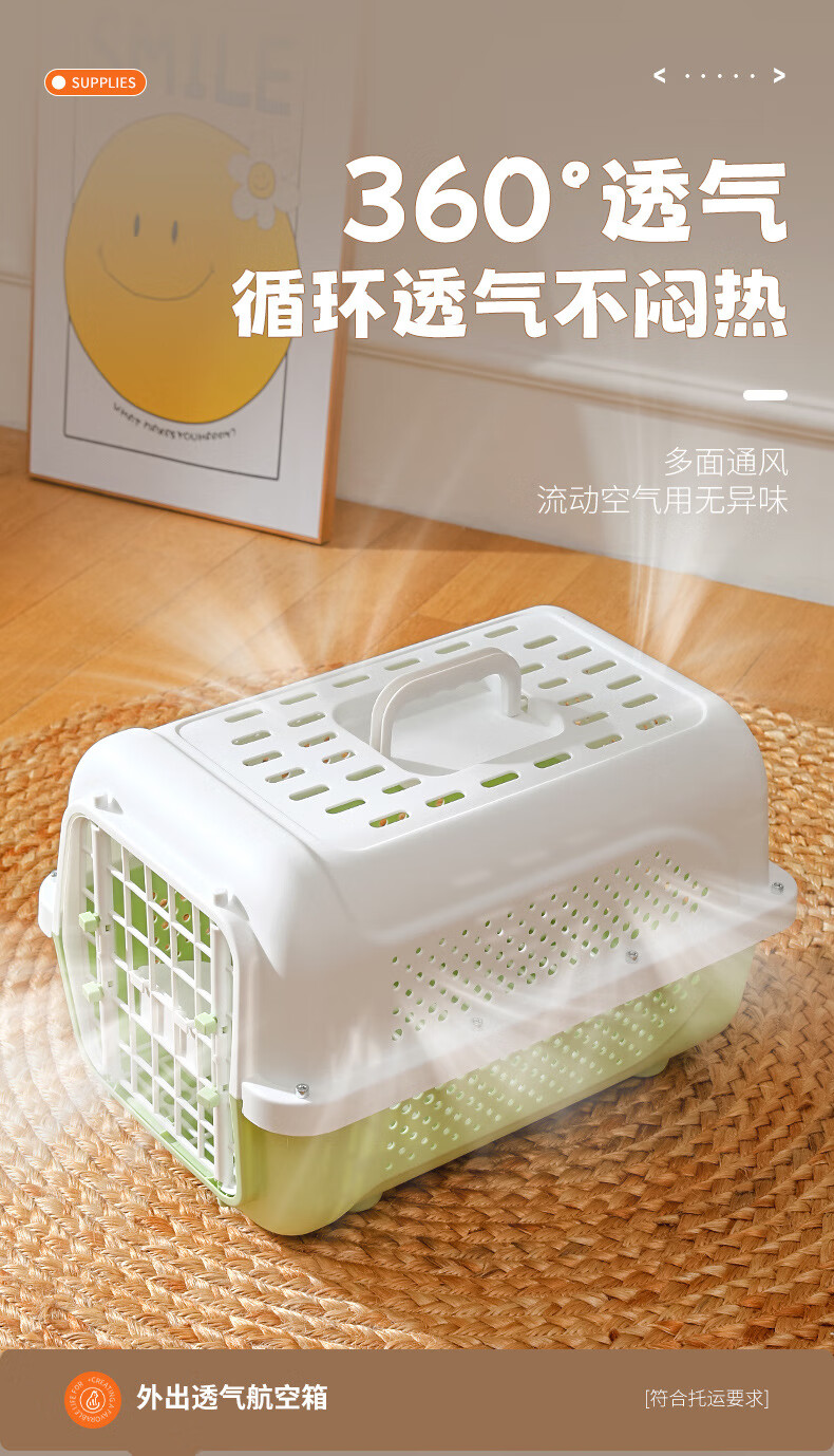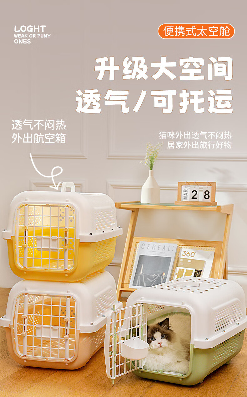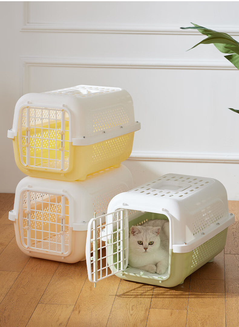 跨境航空箱猫咪狗狗车载笼便携外出狗笼太空箱托运箱宠物箱批发 高级灰(底板+挂碗) 宠物航空箱